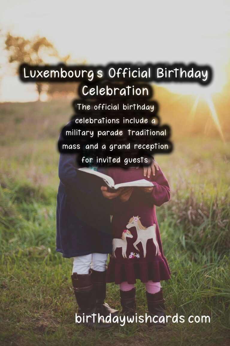 The official birthday celebrations for the Grand Ducal Family are a grand affair in Luxembourg. The festivities include a military parade, a traditional mass at the Notre-Dame Cathedral, and a grand reception for invited guests. The celebrations also feature street parades, concerts, and fireworks, making it a joyous occasion for everyone to come together and celebrate their royal heritage. The Grand Ducal Family of Luxembourg holds a special place in the hearts of Luxembourgers. Their official birthday is celebrated in November, even though the family’s actual birthday is in April. The Grand Ducal Family can trace its origins back to the 10th century when Count Siegfried founded the County of Luxembourg. Present-day Luxembourg is ruled by Grand Duke Henri and his wife, Grand Duchess Maria Teresa. The official birthday celebrations include a military parade, traditional mass, and a grand reception for invited guests. The Grand Ducal Family’s official birthday is a national holiday in Luxembourg and a cause for celebration among its citizens.