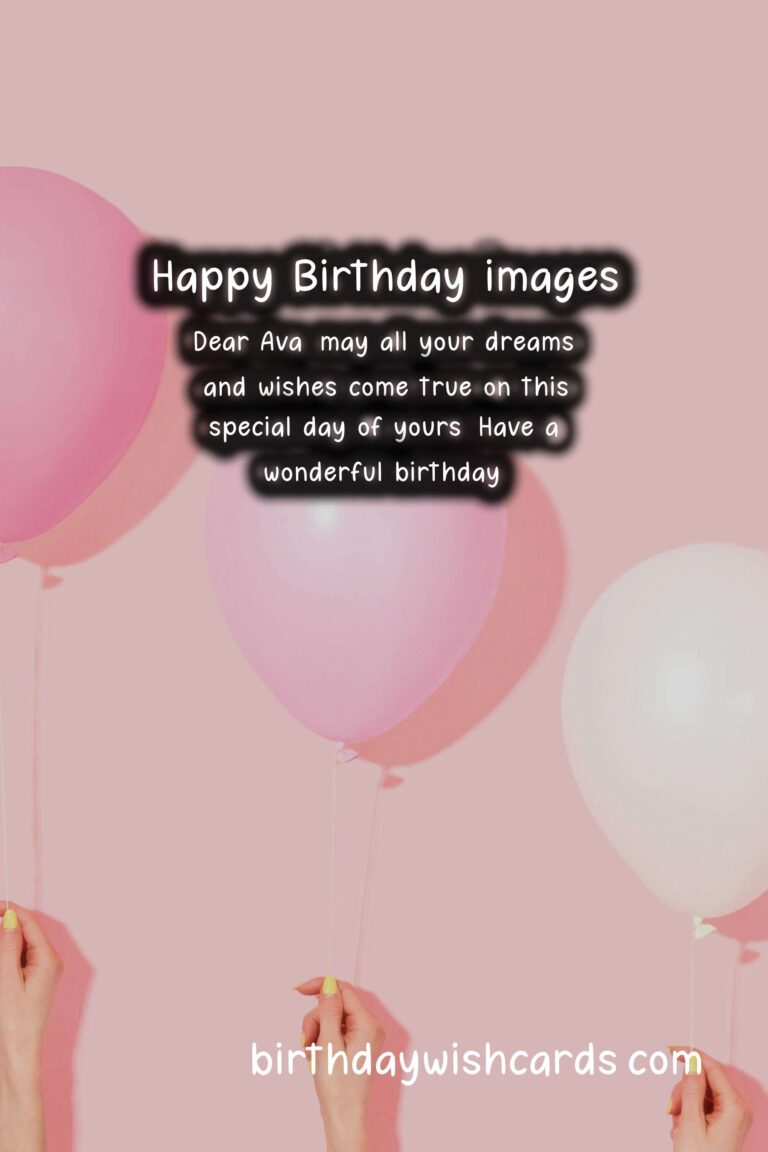 Birthdays are special occasions that remind us of how far we have come and how much we have achieved. It is a time to reflect on our past and make plans for the future. Today, we are celebrating the birthday of Ava, a wonderful person and a dear friend to many. Let us shower her with our love, good wishes, and beautiful images to make her day even more special.As we all know, birthdays are incomplete without wishes. So, we have collected a few heartwarming and thoughtful messages to make Ava feel loved and appreciated on her special day. We hope these wishes bring a smile to her face and warmth to her heart. Ava, on this day, I wish you all the happiness and success in the world. Happy birthday! Wishing you a day full of joy, laughter, and love. Happy birthday, Ava! Dear Ava, may all your dreams and wishes come true on this special day of yours. Have a wonderful birthday! Happy birthday, Ava! May this new year of your life be filled with blessings, good health, and prosperity. Happy birthday to an amazing friend who always brings light and positivity into our lives. You deserve all the love and happiness today and always. Cheers to another year of being the wonderful and inspiring person that you are. Happy birthday, Ava! Sending you lots of hugs and kisses on your birthday. Have a beautiful day, Ava! Wishing you a birthday as lovely and fabulous as you are, Ava. Happy birthday, Ava! May every moment of this day be as special as you are to us. Happy birthday to a true gem of a person. You are one in a million, Ava. Blow out your candles and make a wish, Ava! Your friends and family are here to support and cheer for you. Happy birthday! Dear Ava, on this day, I want to thank you for always being there for me. You are a blessing in my life. Have a fantastic birthday. Happy birthday, Ava! May you have a wonderful year filled with love, laughter, and all your heart’s desires. Here’s to creating more cherished memories and having unforgettable experiences together. Have a memorable birthday, Ava. Wishing you a day as special as you are to us, Ava. Happy birthday! On this special day, I want you to know how much you mean to me, Ava. You are an extraordinary person, and I am grateful to have you in my life. Happy birthday! Happy birthday, Ava! You are not just a year older, but also a year wiser and more amazing than before. May all the candles on your cake be as bright and beautiful as each of your days, Ava. Happy birthday! Dear Ava, you have touched so many lives with your kindness, generosity, and grace. Today, we celebrate you. Happy birthday! Wishing you a fantastic birthday, Ava. You deserve all the love and happiness in the world.