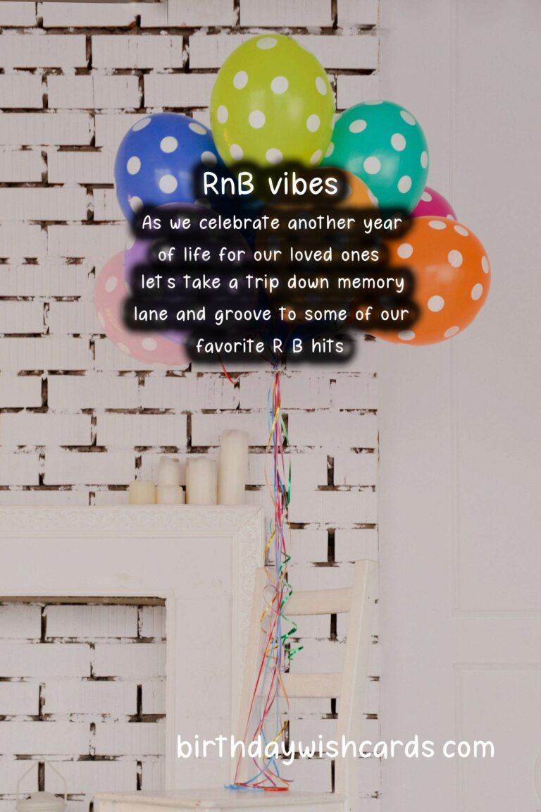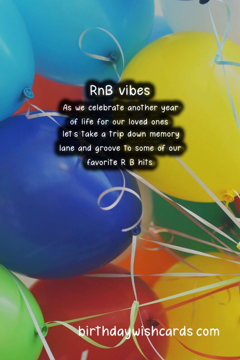 Featured ImageBirthdays are always a special and joyous occasion filled with love, laughter, and celebration. And what better way to express your birthday wishes than through the smooth and soulful sounds of R&B music? So put on your dancing shoes, grab a drink, and get ready to vibe to some soulful grooves and vocals as we send out some heartfelt birthday messages! R&B music is known for its smooth and sultry vibes, making it the perfect genre to set the mood for a birthday celebration. As we celebrate another year of life for our loved ones, let’s take a trip down memory lane and groove to some of our favorite R&B hits. Sending R&B birthday wishes not only shows your love and appreciation for the birthday person, but also adds a touch of creativity and thoughtfulness to your message. From old school classics to new-age jams, there’s an R&B birthday song for everyone. So why not spice up your birthday wishes and make them more memorable by adding some R&B flare? Whether you’re looking for a funny message or a heartfelt sentiment, R&B music has got you covered. Here are some R&B birthday wishes to help you spread love and good vibes on this special day: R&B Birthday Wishes: Vibing to Soulful Grooves and VocalsR&B Birthday Wishes: Vibing to Soulful Grooves and VocalsR&B Birthday Wishes: Vibing to Soulful Grooves and VocalsR&B Birthday Wishes: Vibing to Soulful Grooves and VocalsR&B Birthday Wishes: Vibing to Soulful Grooves and VocalsR&B Birthday Wishes: Vibing to Soulful Grooves and VocalsR&B Birthday Wishes: Vibing to Soulful Grooves and VocalsR&B Birthday Wishes: Vibing to Soulful Grooves and VocalsR&B Birthday Wishes: Vibing to Soulful Grooves and Vocals