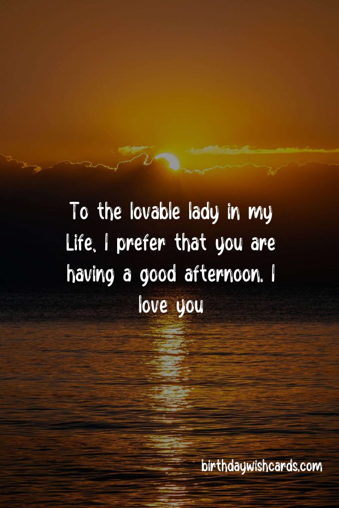 - To the most lovable woman in my life, I hope your afternoon is wonderful. I love you endlessly.