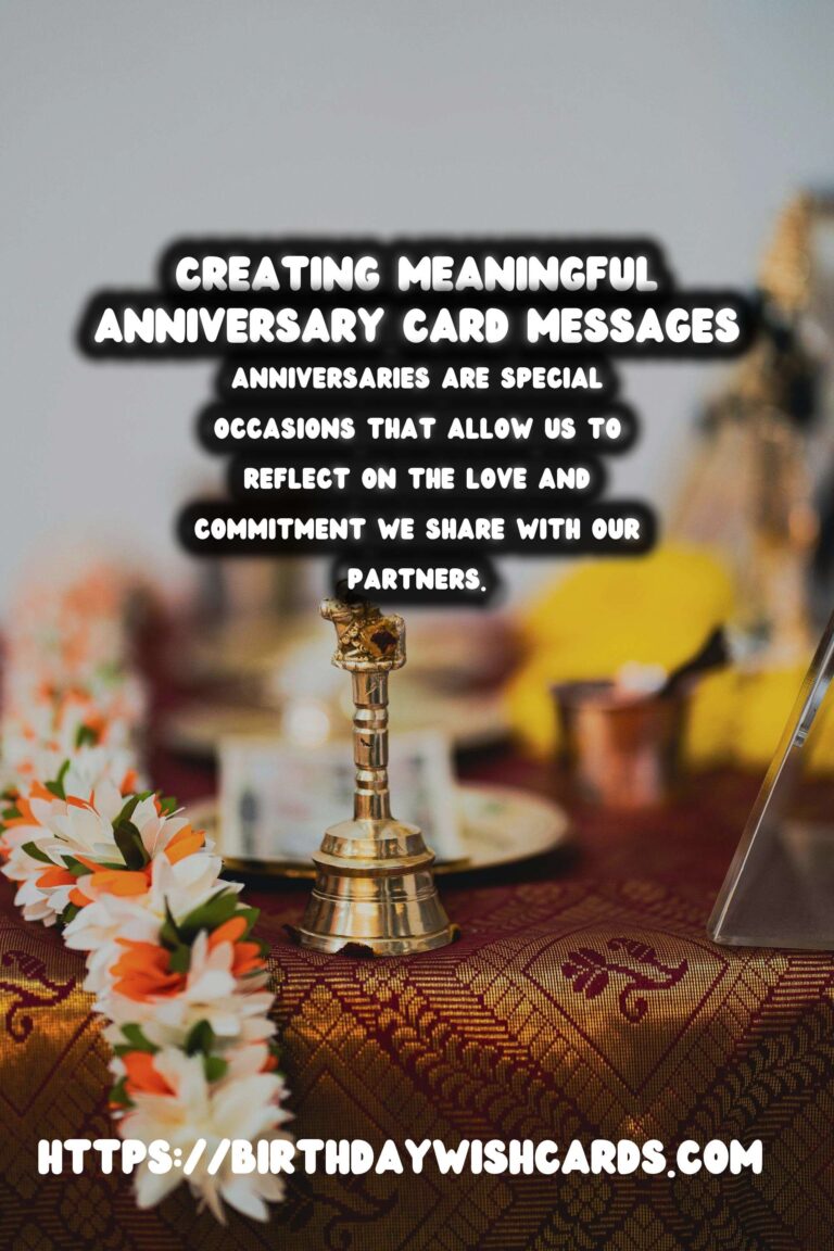 Creating an anniversary card message that reflects your feelings doesn’t have to be stressful. Take your time to plan and personalize your message, and remember that it’s the thought that counts the most. Celebrate the love you share and make this anniversary one to remember.