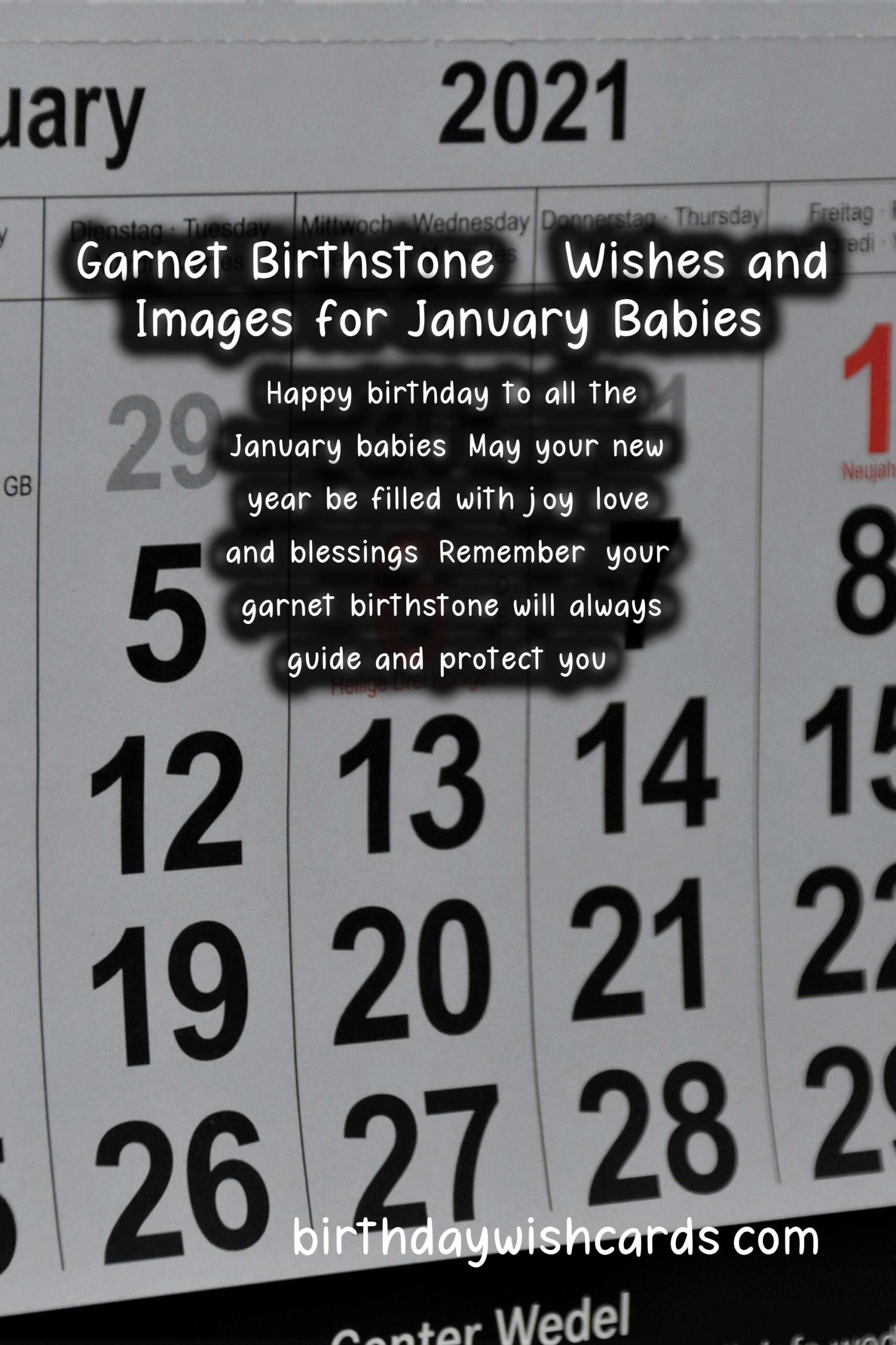 2. A New Year’s Birthstone: Include an image of a calendar with the date of January 1st highlighted and surrounded by sparkling garnets to represent the birthstone of the month.