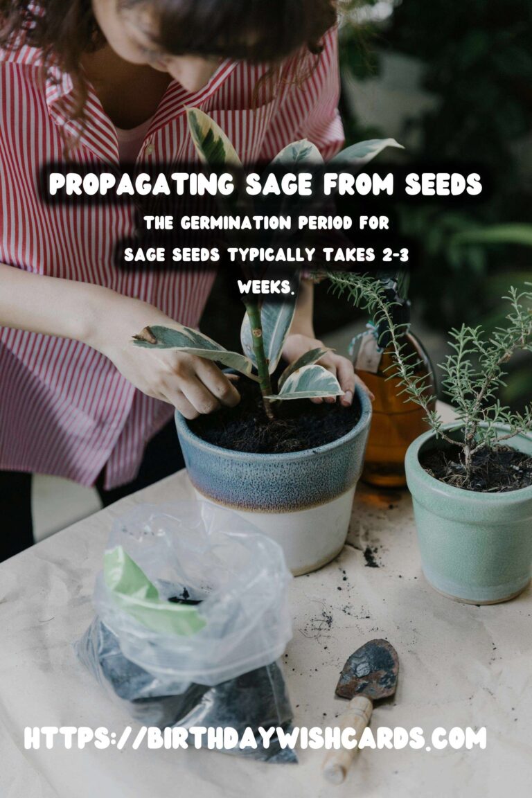 The germination period for sage seeds typically takes 2-3 weeks. During this time, maintain consistent moisture in the soil by misting it lightly. Ensure the seeds receive ample sunlight to encourage healthy growth.