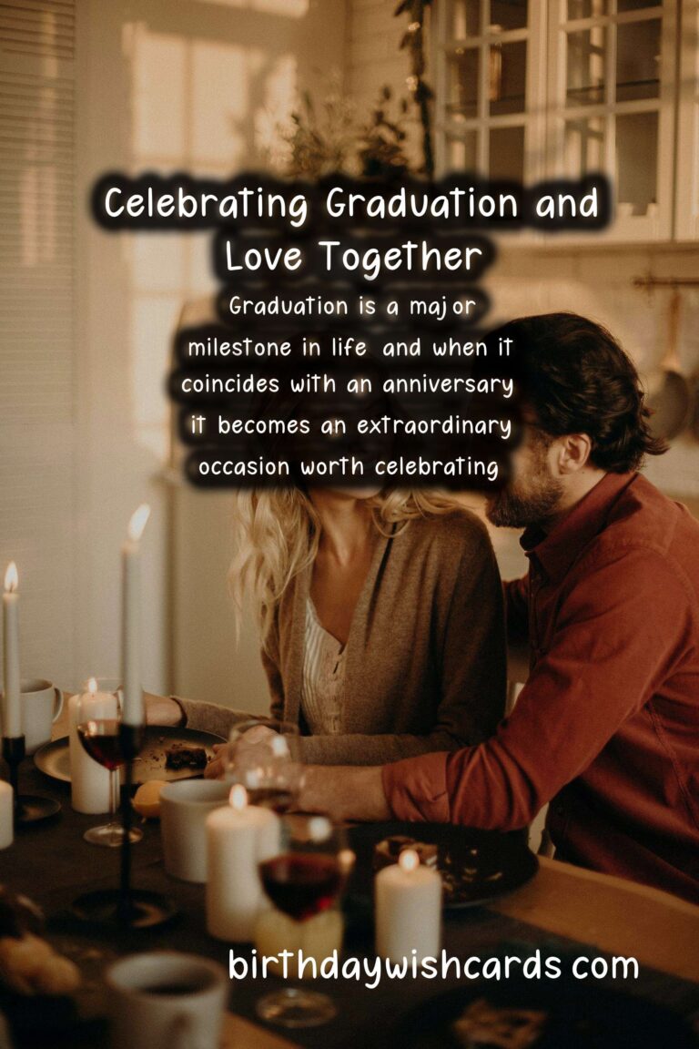 As you celebrate the significant milestones of both graduation and your relationship, these anniversary wishes will surely bring joy and warmth to your day. Whether you choose to share romantic sentiments, inspiring words, funny quips, or poetic expressions, make sure to convey your love and pride. Congratulations on your achievements, and may your journey together be filled with endless love and success!