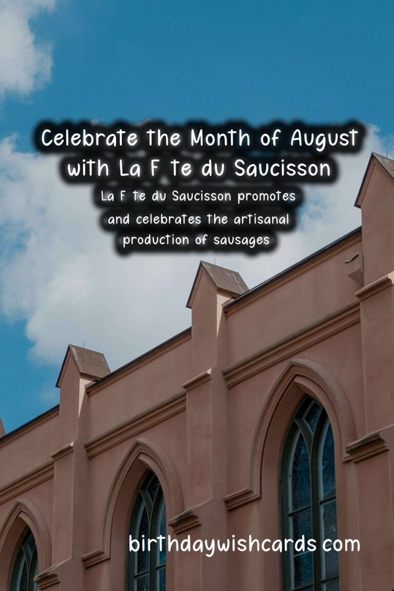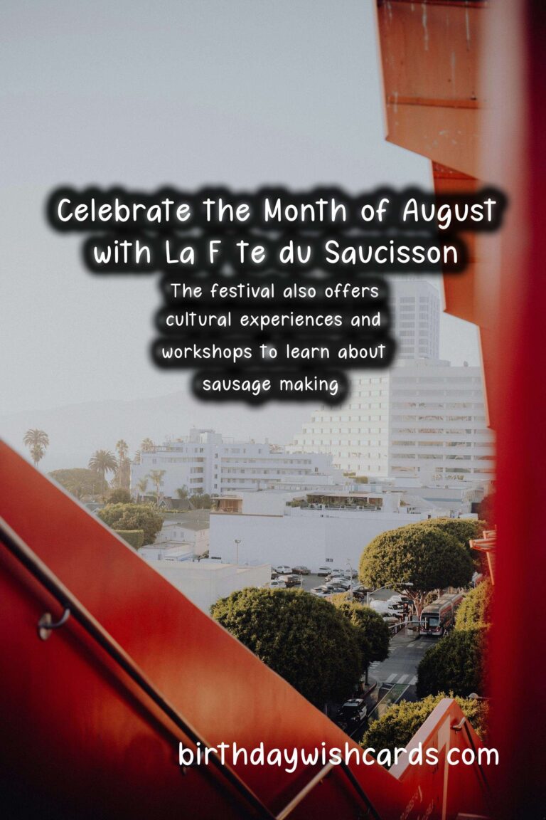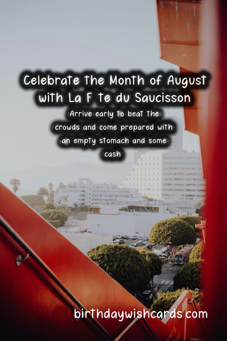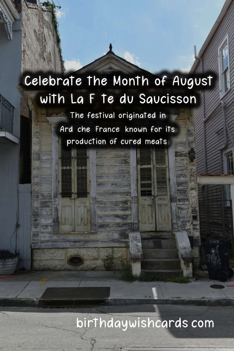 If you’re planning to attend La Fête du Saucisson, make sure to come prepared with an empty stomach and a strong appetite for sausages. Don’t forget to also bring some cash to purchase your favorite sausages and other products from the local vendors. And be sure to arrive early, as the festival can get quite crowded.So mark your calendars for La Fête du Saucisson and get ready to celebrate this tasty treat in the month of August. Don’t miss out on this unique cultural experience that will leave both your taste buds and your soul satisfied. La Fête du Saucisson is a popular sausage festival held in the month of August. The festival originated in Ardèche, France, known for its production of cured meats. La Fête du Saucisson promotes and celebrates the artisanal production of sausages. Visitors can enjoy various activities such as tastings, workshops, and live music. Local vendors sell a variety of sausages, as well as other regional products. The festival also offers cultural experiences and workshops to learn about sausage making. Attending La Fête du Saucisson is a fun and unique way to experience French culture. This festival is a great opportunity to taste and learn about different types of sausages. Arrive early to beat the crowds and come prepared with an empty stomach and some cash. Don’t miss out on La Fête du Saucisson in August, a celebration of all things sausages! Celebrate August with La Fête du SaucissonCelebrate August with La Fête du SaucissonCelebrate August with La Fête du SaucissonCelebrate August with La Fête du SaucissonCelebrate August with La Fête du SaucissonCelebrate August with La Fête du SaucissonCelebrate August with La Fête du SaucissonCelebrate August with La Fête du Saucisson