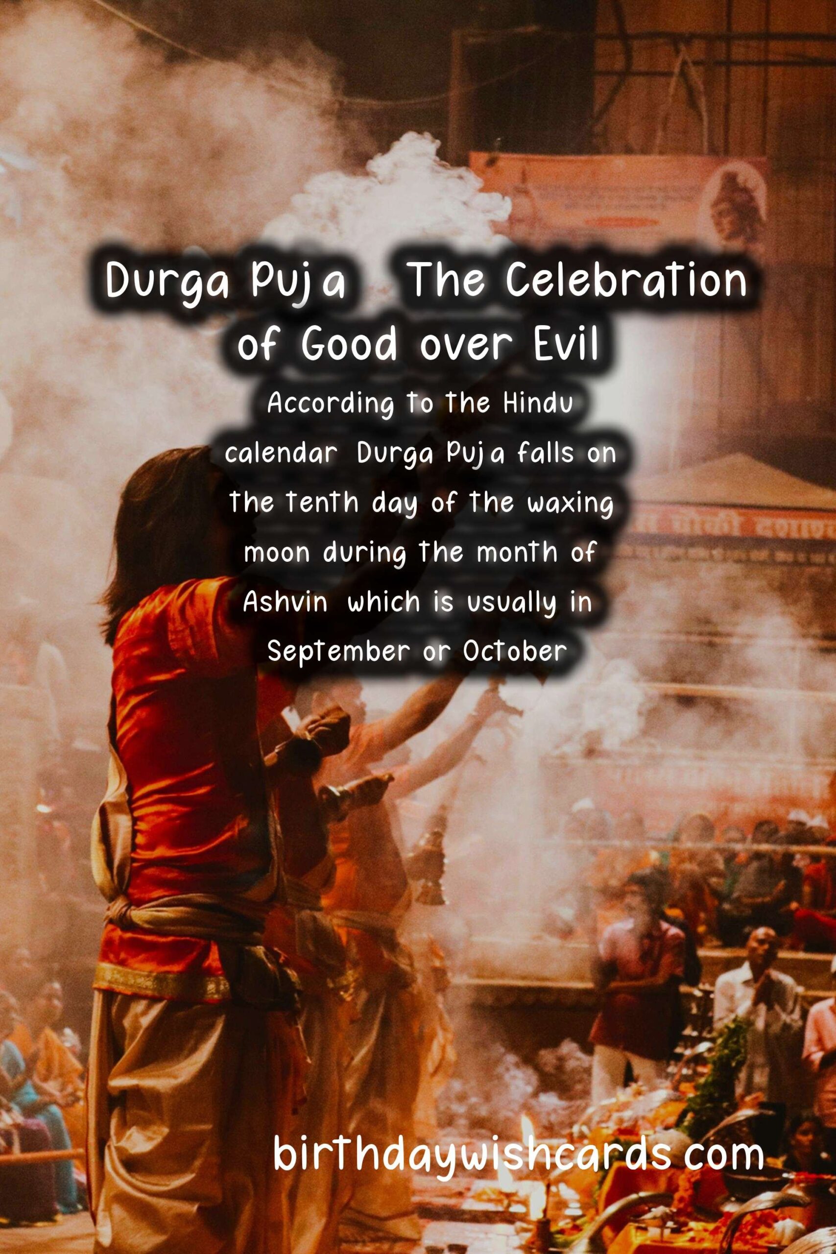 Durga Puja is one of the most widely celebrated festivals in India, especially in the eastern states of West Bengal, Bihar, and Odisha. It is a ten-day festival that is celebrated with great enthusiasm and fervor by Hindus all over the world. This festival celebrates the victory of Goddess Durga over the demon Mahishasura, symbolizing the triumph of good over evil. The dates of Durga Puja vary according to the Hindu calendar, but it generally falls in the month of September or October.As per the Hindu mythology, Goddess Durga is believed to be an embodiment of divine feminine power and is worshipped as the ultimate symbol of strength and bravery. She is also known as the mother goddess who protects her devotees from all kinds of evils and blesses them with prosperity, happiness, and success. The festival of Durga Puja is not just a religious celebration, but it is also a cultural extravaganza that brings people of all backgrounds and communities together to celebrate the victory of good over evil. The dates of Durga Puja are determined by the lunar calendar and vary each year. According to the Hindu calendar, Durga Puja falls on the tenth day of the waxing moon during the month of Ashvin, which is usually in September or October. The festival of Durga Puja lasts for ten days, with the last four days being the most important. The first day is known as Mahalaya, which marks the beginning of the festival and the invocation of Goddess Durga. The next five days are known as Shashthi, Maha Saptami, Maha Ashtami, Maha Navami, and Vijaya Dashami, respectively. On the tenth day, the idol of Goddess Durga is immersed in the river, signifying her return to her divine abode. During these ten days, people decorate their houses and pandals (temporary structures) with colorful lights, flowers, and intricate artwork. Traditional rituals and prayers are performed daily to seek the blessings of Goddess Durga. The festival is also marked by cultural programs, including traditional folk dances, music, and dramas. The highlight of Durga Puja is the grand puja (worship) of the idol of Goddess Durga that is performed on Maha Ashtami and Maha Navami. This is followed by offering food (bhog) to the goddess, which is then distributed among the devotees as prasad (blessed food). The atmosphere during Durga Puja is vibrant and full of joy, with people dressed in new clothes, visiting different pandals, and indulging in delicious sweets. The festival of Durga Puja is not just limited to India but is celebrated with equal zeal and enthusiasm across the world by the Hindu diaspora. In recent years, Durga Puja has also gained popularity among non-Hindus, with people from different faiths coming together to celebrate the festival and learn about the culture and traditions associated with it.
