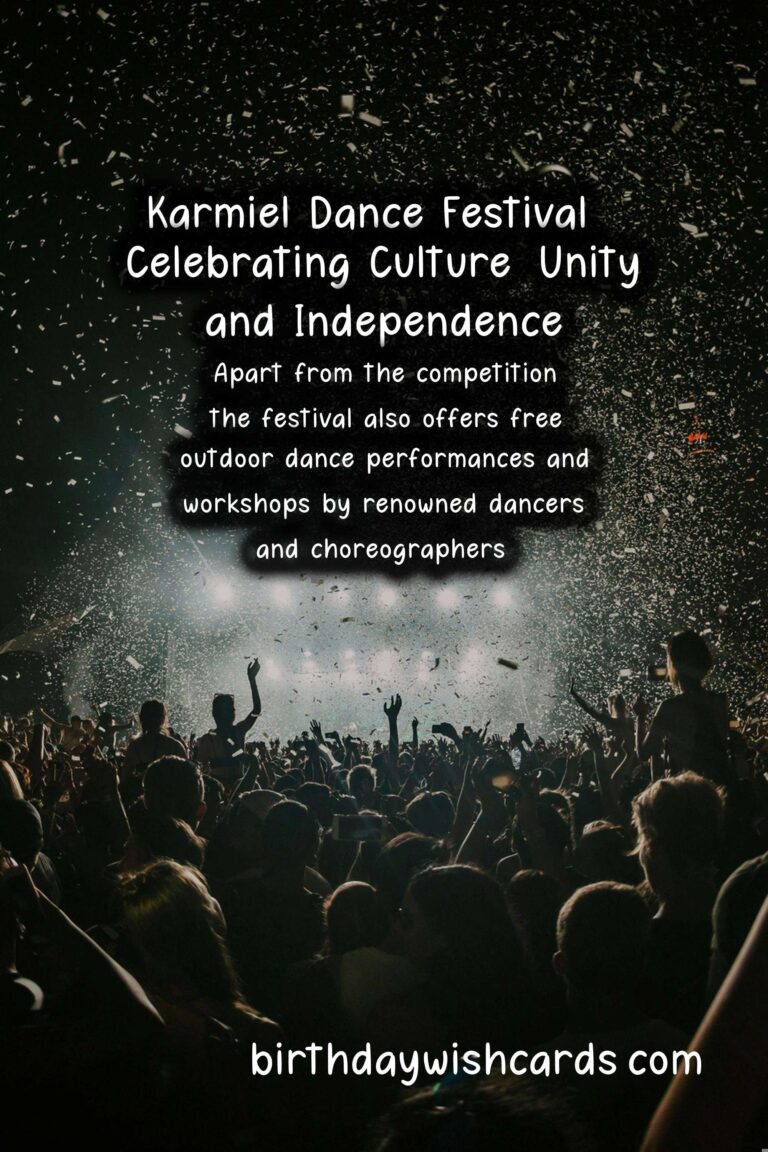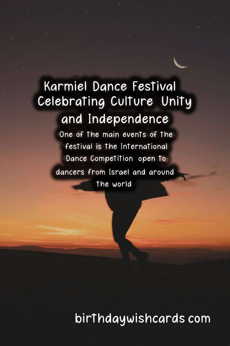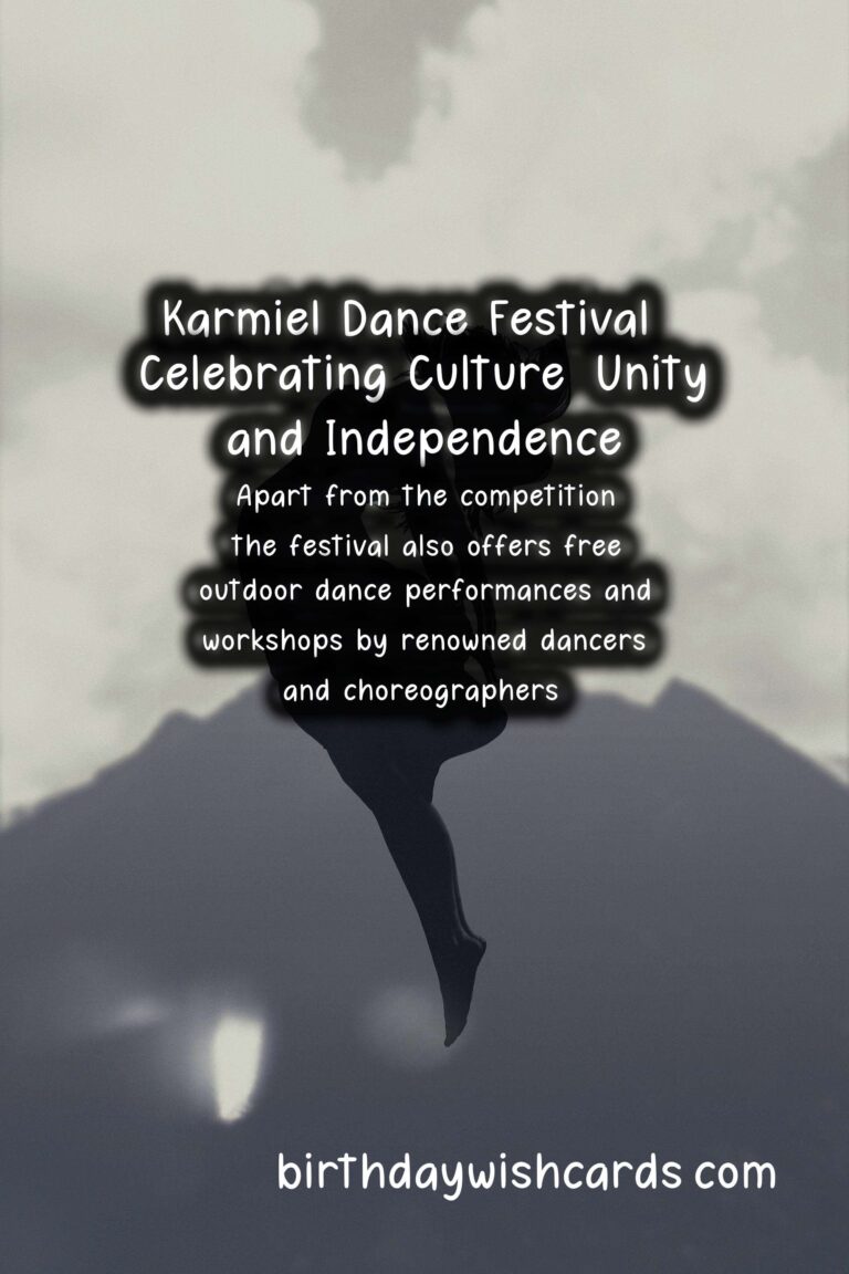 Are you looking for a fun and exciting way to celebrate July Independence Day? Look no further than Karmiel Dance Festival. This festival, held in the beautiful city of Karmiel in Northern Israel, is a must-attend event for all dance lovers. Not only does it celebrate the country’s independence, but it also showcases the diverse and vibrant culture of Israel through dance. For over thirty years, Karmiel Dance Festival has been an annual tradition that draws in thousands of visitors from all over the world. It is a celebration of the country’s independence and a tribute to the rich history, culture, and traditions of Israel. The festival usually takes place from July 4th to 6th and offers a spectacular lineup of performances, workshops, and activities for all ages. The main event of the festival is the International Dance Competition, where dance groups from Israel and around the world compete in various categories such as modern dance, folk dance, ballet, and more. This competition attracts top-class dancers and choreographers, making it not only a celebration but also a platform to showcase talent. The competition is judged by a panel of experts and is open to everyone who wishes to participate. Apart from the competition, the festival also offers free outdoor dance performances and workshops by renowned dancers and choreographers. This gives visitors the opportunity to learn about different styles of dance, including Israeli folk dance, which is a significant part of the country’s culture. There are also music concerts, art exhibitions, and food stalls that offer a taste of Israeli cuisine. Attending the Karmiel Dance Festival also gives you the chance to explore the beautiful city of Karmiel itself. Located in the Galilee Mountains, this city is known for its picturesque landscapes, hiking trails, and traditional markets. It is also a melting pot for different cultures and religions, making it an ideal place to celebrate the country’s independence. The festival’s highlight is the Independence Day celebration on November 18th, which showcases traditional Israeli dances and customs. This is followed by a grand fireworks display, which is a sight to behold. The entire city is decorated in blue and white, the colors of the Israeli flag, making it a festive atmosphere. If you are planning to attend Karmiel Dance Festival, make sure to book your tickets in advance. Although the festival is free, tickets for the International Dance Competition and workshops can be purchased online. You can also find a variety of accommodation options in and around Karmiel to suit your budget and preferences. Don’t miss out on this once-in-a-lifetime experience and join thousands of dance lovers in celebrating Israel’s independence at Karmiel Dance Festival. It is a celebration of dance, culture, and unity, and an opportunity to immerse yourself in the rich and diverse traditions of Israel. Karmiel Dance Festival is an annual event held in the beautiful city of Karmiel in Northern Israel. It celebrates the country’s independence and showcases the diverse and vibrant culture of Israel through dance. The festival offers a spectacular lineup of performances, workshops, and activities for all ages. One of the main events of the festival is the International Dance Competition, open to dancers from Israel and around the world. Apart from the competition, the festival also offers free outdoor dance performances and workshops by renowned dancers and choreographers. Attending the Karmiel Dance Festival also gives you the chance to explore the beautiful city of Karmiel itself and its traditional markets. The festival’s highlight is the Independence Day celebration on November 18th, showcasing traditional Israeli dances and customs. Don’t miss out on this once-in-a-lifetime experience and join thousands of dance lovers in celebrating Israel’s independence at Karmiel Dance Festival.
