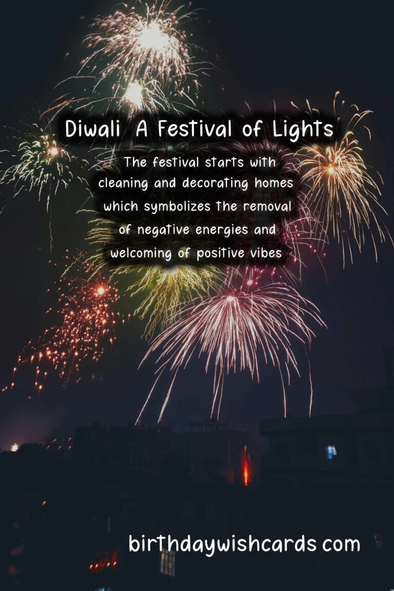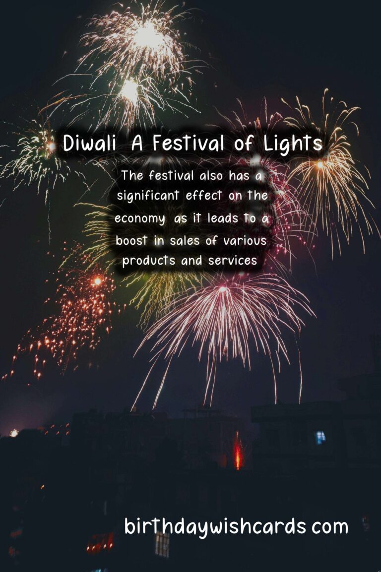 The months of October and November are filled with excitement and joy among the Hindu community as it marks the celebration of Diwali, also known as the Festival of Lights. Diwali is a five-day long celebration that signifies the triumph of good over evil and the victory of light over darkness. The word Diwali is derived from the Sanskrit word ‘Deepavali’, meaning a row of lamps. It is celebrated on the 15th day of the Hindu month of Kartik, which falls in either October or November according to the Gregorian calendar. The festival is celebrated in different parts of India and also in various countries where Hindus have a presence. During Diwali, people decorate their homes with diyas (clay lamps), lights, and rangolis (colored patterns made on the floor). It is believed that these decorations welcome prosperity and happiness into the household. The festival also brings along mouth-watering sweets, delicious food, and sparkling firecrackers that light up the sky. The first day of Diwali is called Dhanteras, which is a time for purchasing new items, especially gold and silver, as it is believed to bring good luck. The second day is called Choti Diwali or Narak Chaturdashi and marks the victory of Lord Krishna over the demon Narakasura. The third day is the main day of Diwali where families come together to worship Goddess Lakshmi, the Hindu goddess of wealth and prosperity. The fourth day is known as Govardhan Puja, which is dedicated to Lord Krishna and the fifth day is Bhai Dooj, a day to celebrate the bond of love between brothers and sisters. Every aspect of Diwali carries a deeper significance and holds a special place in the hearts of people. The festival starts with cleaning and decorating homes, which symbolizes the removal of negative energies and welcoming of positive vibes. The lighting of diyas is a symbol of hope and enlightenment, and it is believed to ward off evil and bring blessings into the home. During Diwali, people dress up in their traditional attire and visit friends and family, exchange gifts and sweets, and indulge in festive delicacies. The colorful rangolis that adorn the entrance of homes are believed to bring good luck and prosperity. Diwali is not just limited to Hindus, but it is also celebrated by people from other religions, showcasing the unity and diversity of India. The festival also has a significant effect on the economy, as it leads to a boost in sales of various products and services. However, in recent years, the harmful effects of firecrackers have caused concern, and many people are opting for eco-friendly ways of celebration. This Diwali, let us come together to spread love, happiness, and positivity, and make it a safe and memorable celebration for everyone. Wishing you all a very Happy Diwali! May the light of Diwali brighten your life with joy, peace, and prosperity.