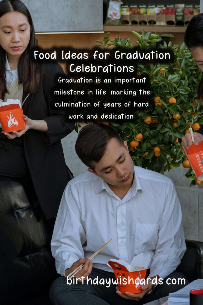 Graduation is a time to celebrate accomplishments and the journey ahead. By incorporating these top 10 foods for graduation into your celebration, you can create a memorable event for both the graduate and the guests. Remember to personalize your food options based on preferences and dietary restrictions to ensure everyone enjoys the festivities!