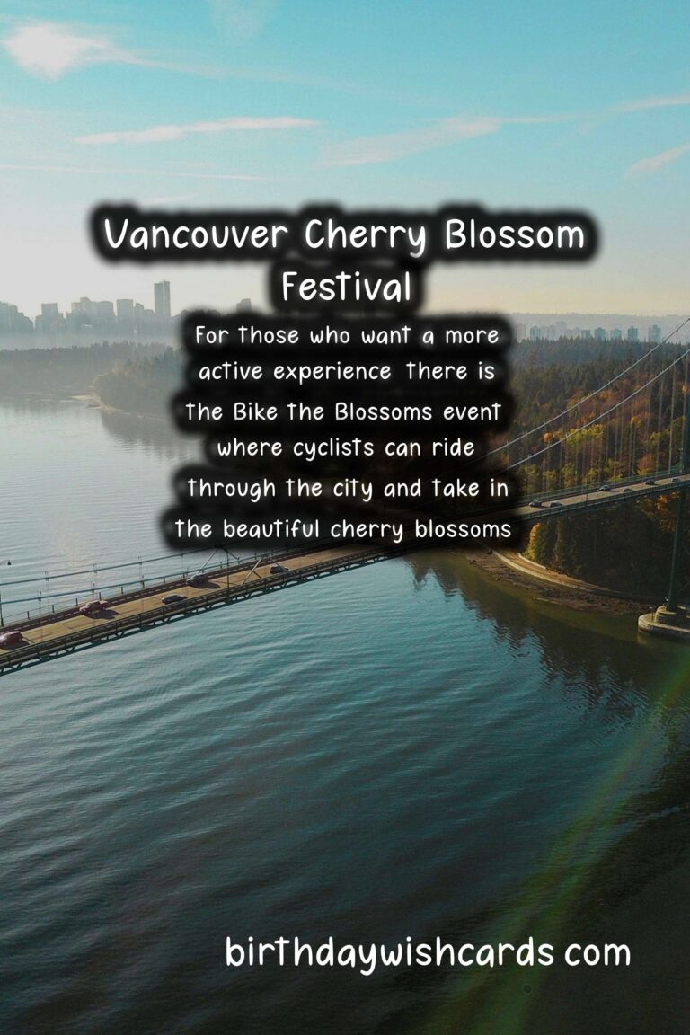 Featured ImageSpring is a beautiful season with blooming flowers, warm weather and chirping birds. One of the most spectacular events that marks the arrival of spring is the Vancouver Cherry Blossom Festival. This festival, held every April, celebrates the stunning cherry blossom trees that line the streets of Vancouver. From the vibrant pink hues to the sweet fragrance, the Cherry Blossom Festival showcases the beauty and magic of spring in full bloom. The Vancouver Cherry Blossom Festival was founded in 2006 and has since become a much-anticipated event in the city. The festival aims to bring people together to celebrate nature, culture and community. It also raises awareness about the importance of environmental sustainability and the preservation of these precious cherry blossom trees.Visitors from all around the world come to Vancouver to experience the Cherry Blossom Festival. The festival offers a wide range of activities that showcase the beauty and diversity of cherry blossom trees. From guided tree walks to outdoor concerts, the festival is filled with events that are perfect for families, couples and solo travelers alike. One of the main highlights of the Cherry Blossom Festival is the Cherry Jam Downtown. This free event offers live music, cultural performances and food trucks. It is a great opportunity to catch stunning views of the cherry trees in full bloom. Another popular event is the Sakura Night Gala, an elegant evening with Japanese-inspired food and sake tastings. For those who want a more active experience, there is the Bike the Blossoms event, where cyclists can ride through the city and take in the beautiful cherry blossoms. The festival also includes a haiku contest, where participants can submit their poems about the cherry blossoms. The winning haikus are then printed on banners and displayed throughout the city. One of the best ways to experience the cherry blossom trees is by taking a self-guided tree walk. There are over 25 suggested routes to choose from, each showcasing different areas of the city and its cherry blossom trees. The festival also offers a free mobile app that helps visitors navigate through all the events and activities. In addition to the organized events, visitors can simply stroll through the neighbourhoods of Vancouver and take in the beauty of the cherry blossom trees. The trees can be found in various places, from parks and gardens to streets and neighborhoods. The most popular spot is the aptly-named “Blossom Lane”, a street lined with beautiful cherry blossom trees. The Vancouver Cherry Blossom Festival is not just about the trees, it is also about celebrating the diverse communities of Vancouver. The festival offers a space for people to come together and appreciate the beauty of nature and each other. It also promotes cultural diversity and inclusivity, making it a truly special event in the city. The hashtag can be seen all over social media during the festival, as visitors and locals alike share their experiences and photos. The Cherry Blossom Festival is not only a celebration of spring, but it is also a celebration of the city and its people. Vancouver Cherry Blossom Festival: A Celebration of SpringVancouver Cherry Blossom Festival: A Celebration of SpringVancouver Cherry Blossom Festival: A Celebration of SpringVancouver Cherry Blossom Festival: A Celebration of SpringVancouver Cherry Blossom Festival: A Celebration of SpringVancouver Cherry Blossom Festival: A Celebration of SpringVancouver Cherry Blossom Festival: A Celebration of SpringVancouver Cherry Blossom Festival: A Celebration of SpringVancouver Cherry Blossom Festival: A Celebration of SpringVancouver Cherry Blossom Festival: A Celebration of Spring