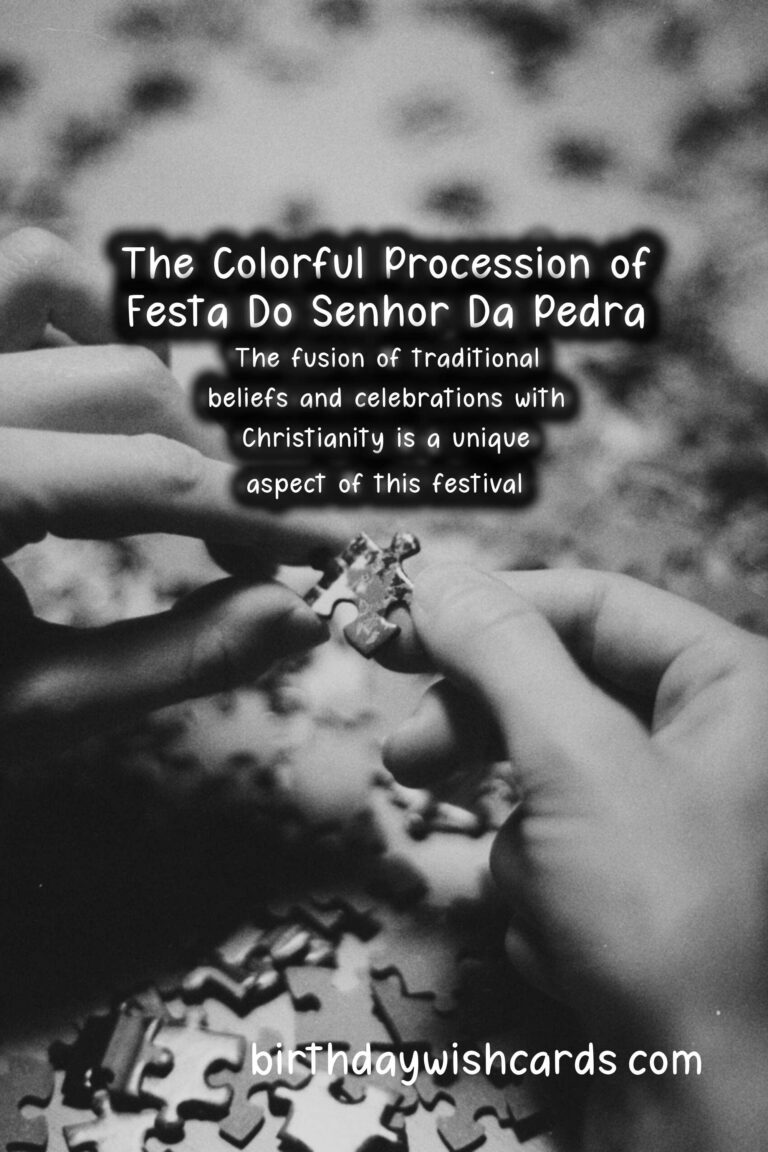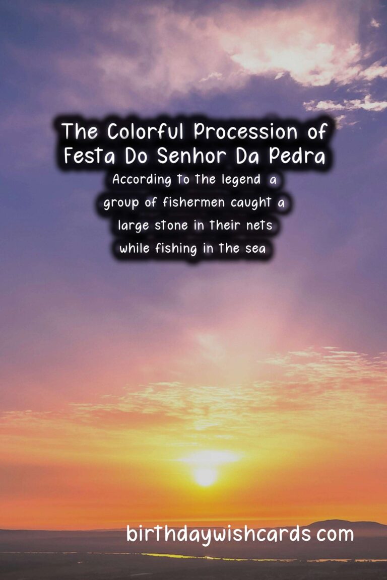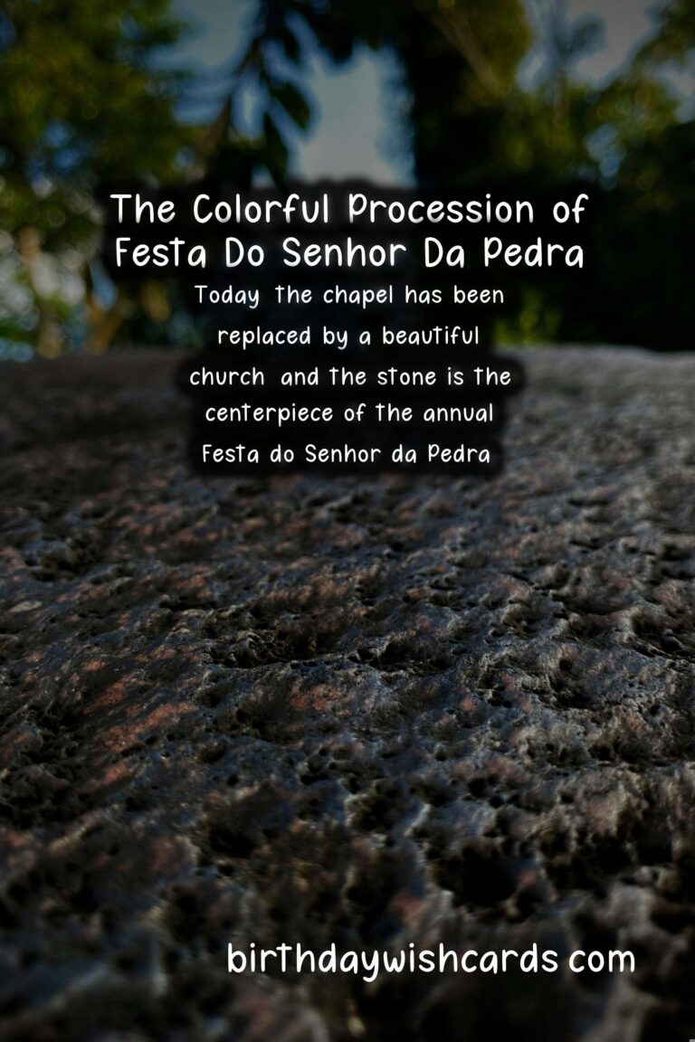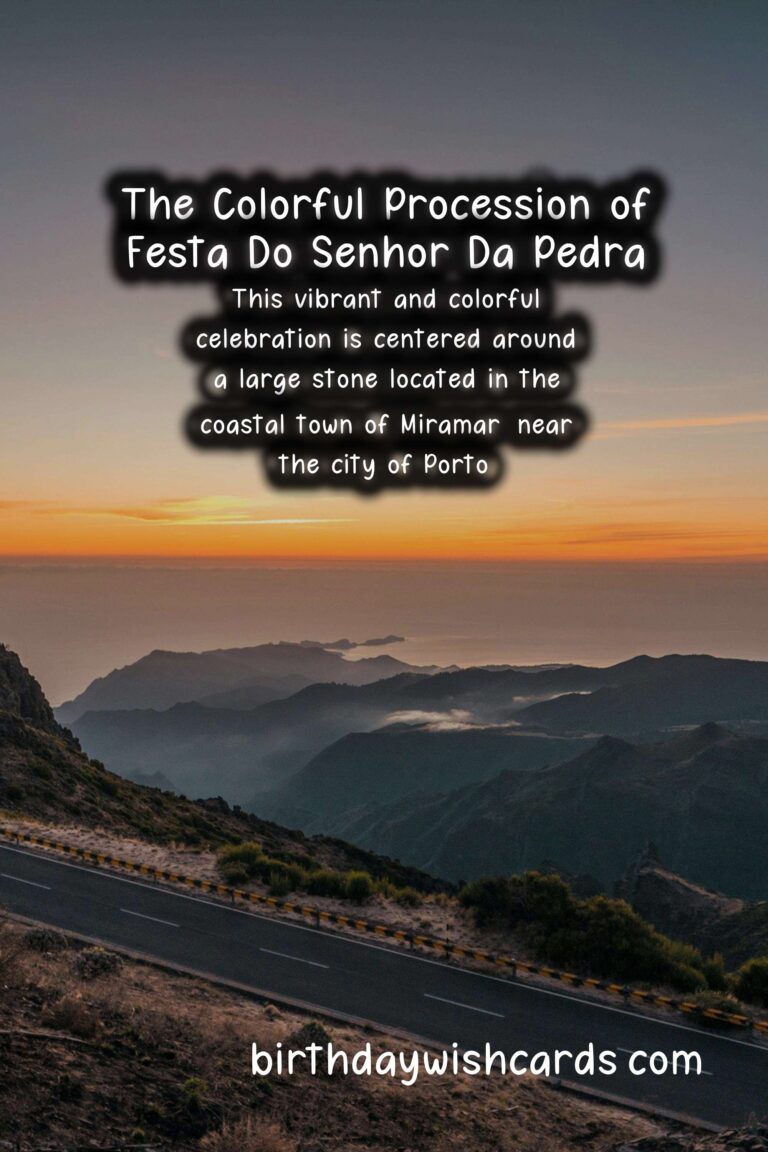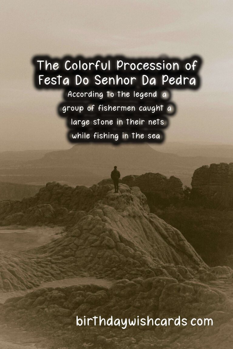 Festa do Senhor da Pedra, also known as the Feast of the Lord of the Stone, is a popular religious festival celebrated in various parts of Portugal. This vibrant and colorful celebration is centered around a large stone located in the coastal town of Miramar, near the city of Porto. The exact date of this festival varies each year, as it is always celebrated on the fifth Sunday after Easter. Thousands of people flock to the town to take part in the festivities and pay their respects to the stone, which has an interesting legend attached to it.