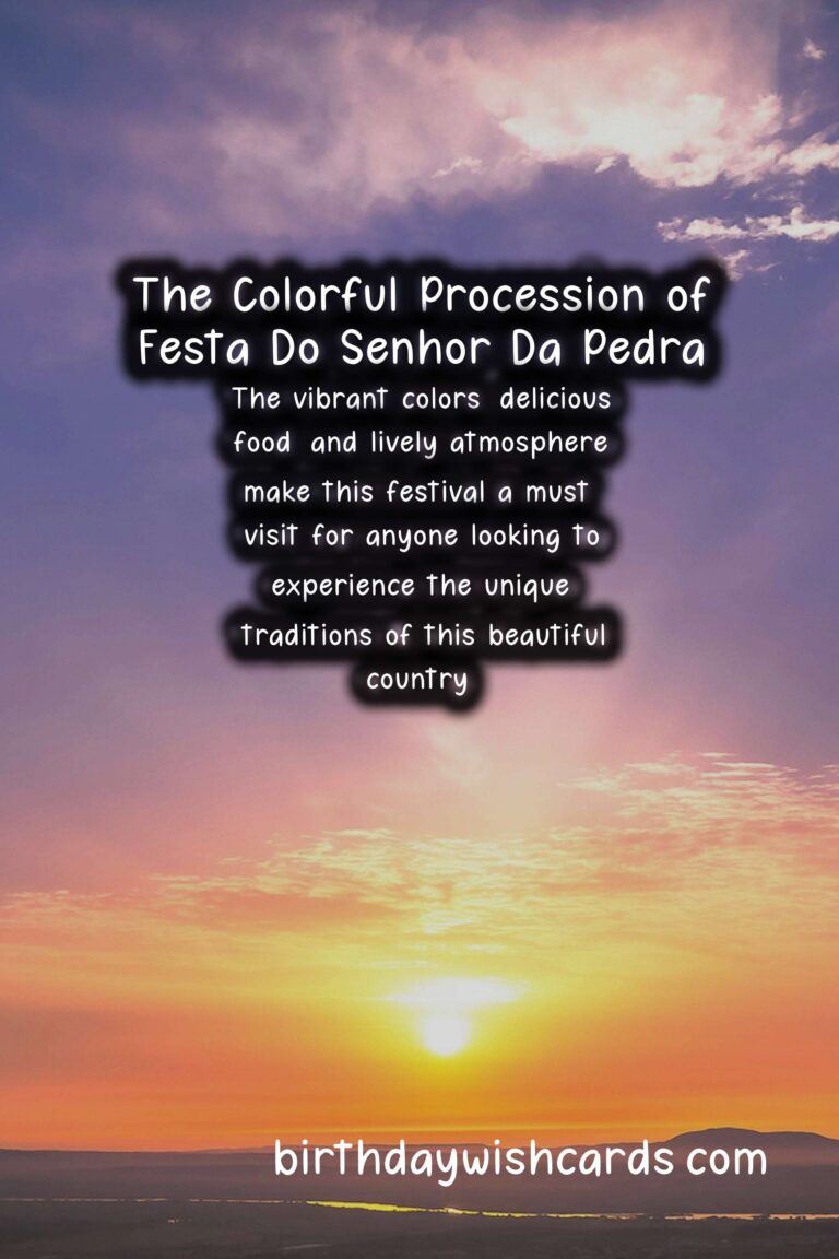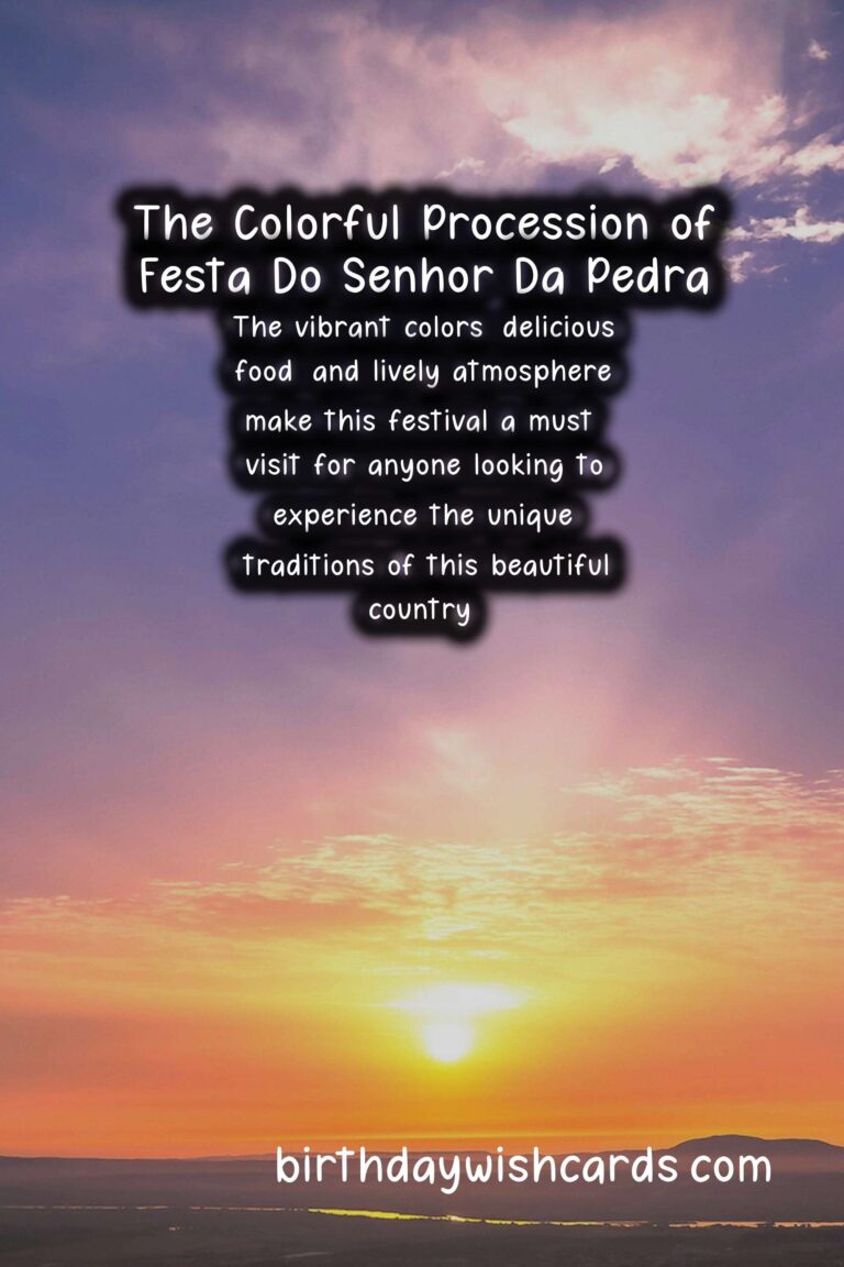 Festa do Senhor da Pedra is a wonderful festival that celebrates both the rich culture and the religious beliefs of Portugal. It is a time for people to come together, share in the festivities, and honor the legend of the stone. The vibrant colors, delicious food, and lively atmosphere make this festival a must-visit for anyone looking to experience the unique traditions of this beautiful country. Festa do Senhor da Pedra, also known as the Feast of the Lord of the Stone, is a popular religious festival celebrated in various parts of Portugal. This vibrant and colorful celebration is centered around a large stone located in the coastal town of Miramar, near the city of Porto. The exact date of this festival varies each year, as it is always celebrated on the fifth Sunday after Easter. According to the legend, a group of fishermen caught a large stone in their nets while fishing in the sea. They believed it to be an image of Christ and decided to take it to the nearby church. Today, the chapel has been replaced by a beautiful church, and the stone is the centerpiece of the annual Festa do Senhor da Pedra. Festa do Senhor da Pedra is a grand celebration that lasts for several days, with various events and activities taking place throughout. The festivities kick off on the Thursday before the feast day with a traditional procession where the stone is carried from the church to the sea. The highlight of the festival is the colorful procession that takes place on Sunday. People from the town, as well as surrounding areas, dressed in traditional costumes, flock to the church to take part in the procession. The stone is carried back to the church, accompanied by a brass band and a sea of people. While Festa do Senhor da Pedra is primarily a religious festival, it also holds a lot of cultural significance. The fusion of traditional beliefs and celebrations with Christianity is a unique aspect of this festival. Festa do Senhor da Pedra is a wonderful festival that celebrates both the rich culture and the religious beliefs of Portugal. The vibrant colors, delicious food, and lively atmosphere make this festival a must-visit for anyone looking to experience the unique traditions of this beautiful country.