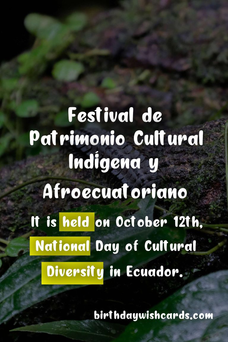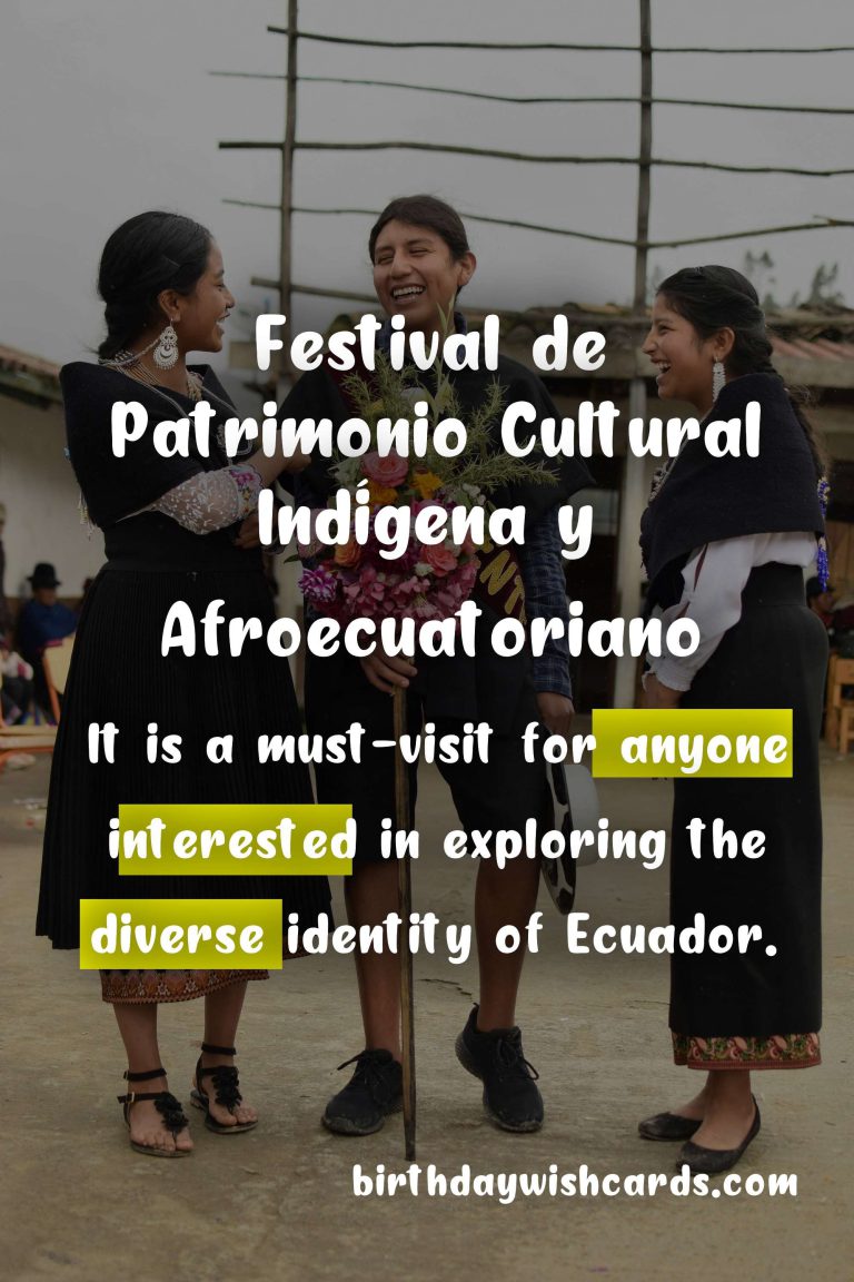 The Festival de Patrimonio Cultural Indígena y Afroecuatoriano, also known as the Indigenous and Afro-Ecuadorian Cultural Heritage Festival, is a celebration of the rich and diverse cultural heritage of Ecuador. This annual festival is held on October 12th, which is recognized as National Day of Cultural Diversity in Ecuador. It is a day to honor the contributions and traditions of the indigenous and Afro-Ecuadorian communities and promote cultural unity and understanding.The festival takes place in various cities and towns throughout Ecuador, including Quito, Guayaquil, and Otavalo. It features a variety of performances, exhibitions, and workshops that showcase the music, dance, food, art, and rituals of these communities. Visitors can also participate in traditional ceremonies and activities such as weaving, pottery, and farming.One of the highlights of the festival is the parade, where participants dressed in colorful traditional attire march through the streets, accompanied by music and dance. The parade is a vibrant and lively celebration of the diversity and beauty of Ecuadorian culture.This festival not only celebrates the cultural heritage of Ecuador but also serves as a platform for promoting the rights and recognition of indigenous and Afro-Ecuadorian communities. It raises awareness about the challenges and discrimination faced by these communities and encourages cultural exchange and dialogue.The Festival de Patrimonio Cultural Indígena y Afroecuatoriano is an important and meaningful event that showcases the richness and vitality of Ecuadorian culture. It is a must-visit for anyone interested in exploring the country’s diverse identity and supporting the preservation of indigenous and Afro-Ecuadorian traditions. The Festival de Patrimonio Cultural Indígena y Afroecuatoriano celebrates the cultural heritage of Ecuador’s indigenous and Afro-Ecuadorian communities. It is held on October 12th, National Day of Cultural Diversity in Ecuador. The festival takes place in various cities and towns, featuring performances, exhibitions, and workshops. Visitors can also participate in traditional ceremonies and activities. The parade is a highlight of the festival, showcasing the vibrant colors and traditions of Ecuador. Besides celebrating culture, the festival also promotes the rights and recognition of indigenous and Afro-Ecuadorian communities. It is a must-visit for anyone interested in exploring the diverse identity of Ecuador.