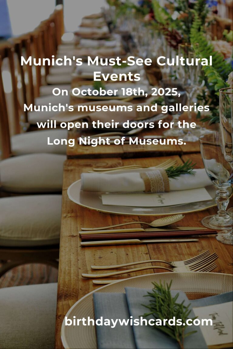 On October 18th, 2025, Munich’s museums and galleries will open their doors for the Long Night of Museums. This annual event allows art lovers to explore a diverse range of exhibitions and collections from dusk till dawn. Participating venues include the Alte Pinakothek, Deutsches Museum, and the Bavarian National Museum. With shuttle buses connecting the venues, attendees can enjoy a seamless cultural journey throughout the city.