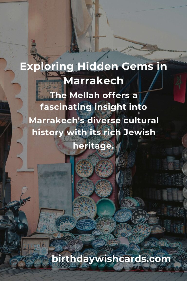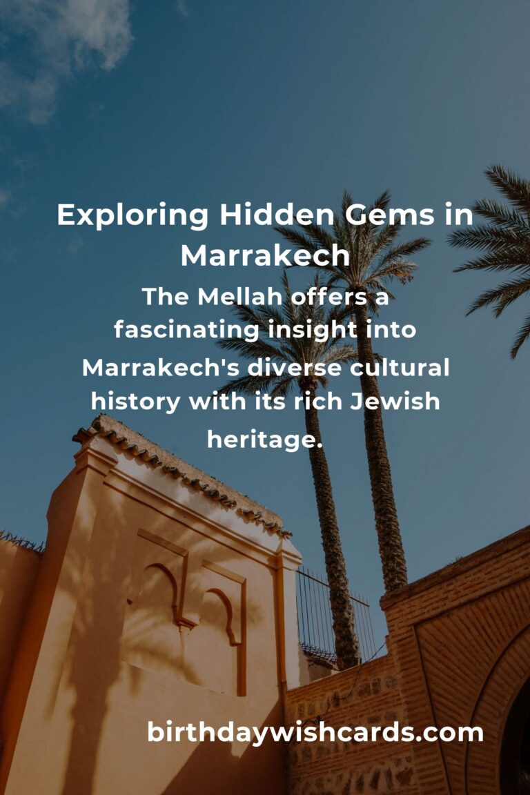 The Mellah, Marrakech’s old Jewish quarter, offers a fascinating insight into the city’s diverse cultural history. Wander through its narrow streets and discover the rich Jewish heritage evident in the synagogues and vibrant marketplaces.