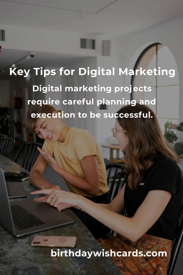 Digital marketing projects require careful planning and execution to be successful. Setting clear and measurable goals is crucial for direction and resource management. Understanding your target audience is fundamental for effective messaging. A well-crafted content strategy enhances project success through engaging material. Monitoring and analyzing results allows for strategy refinement and optimization.