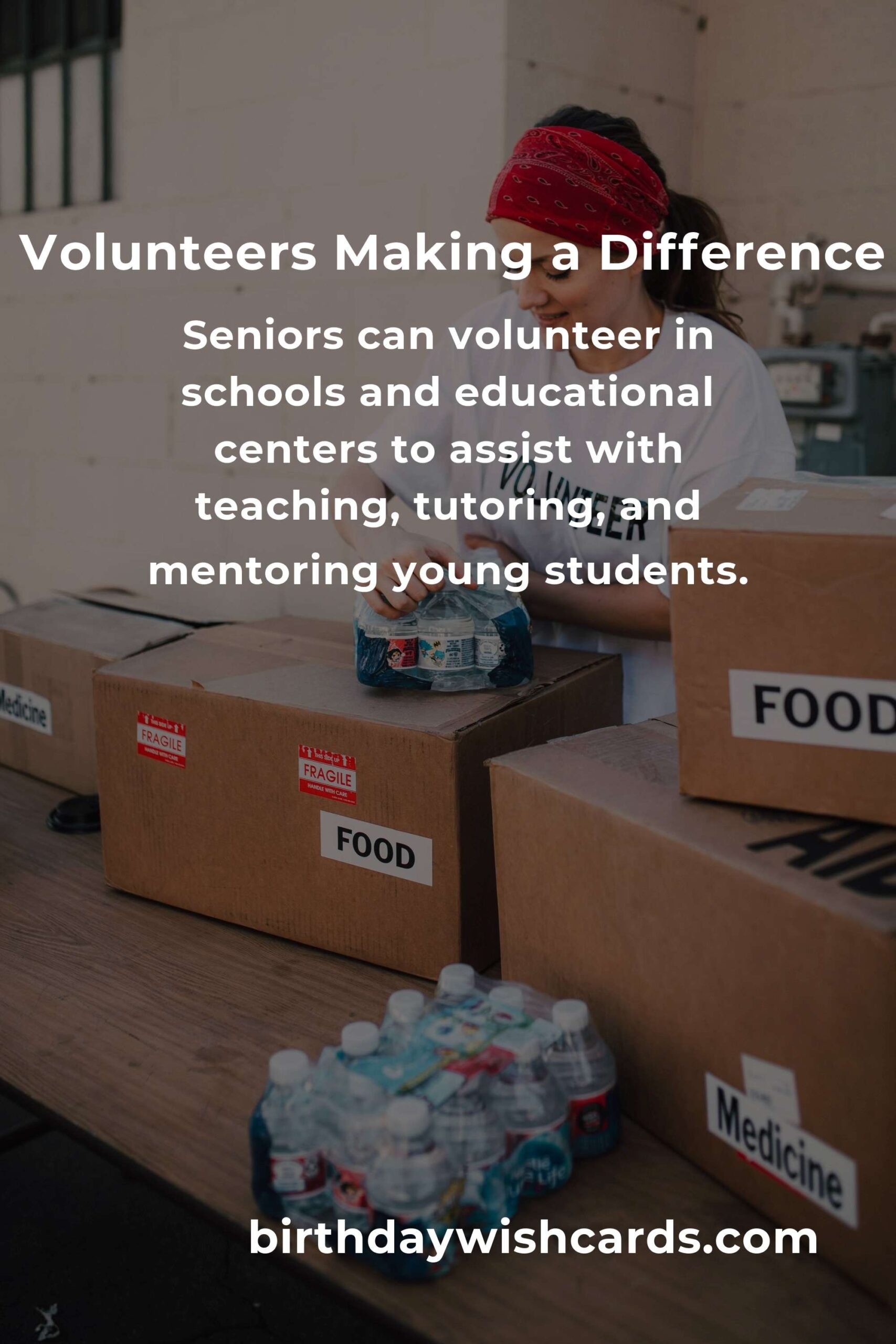 Seniors can volunteer in schools and educational centers to assist with teaching, tutoring, and mentoring young students.