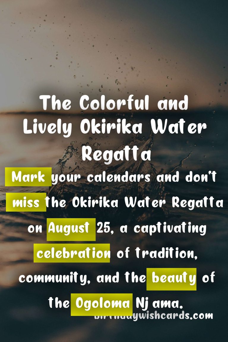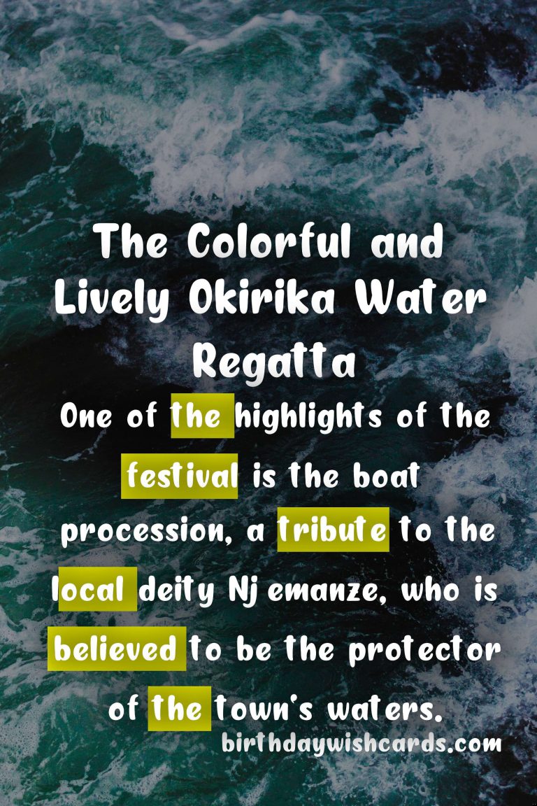 The Okirika Water Regatta is a traditional festival that has been celebrated for centuries. It is a celebration of the town’s rich history and culture, as well as a way to honor the river that plays a vital role in the lives of its people.