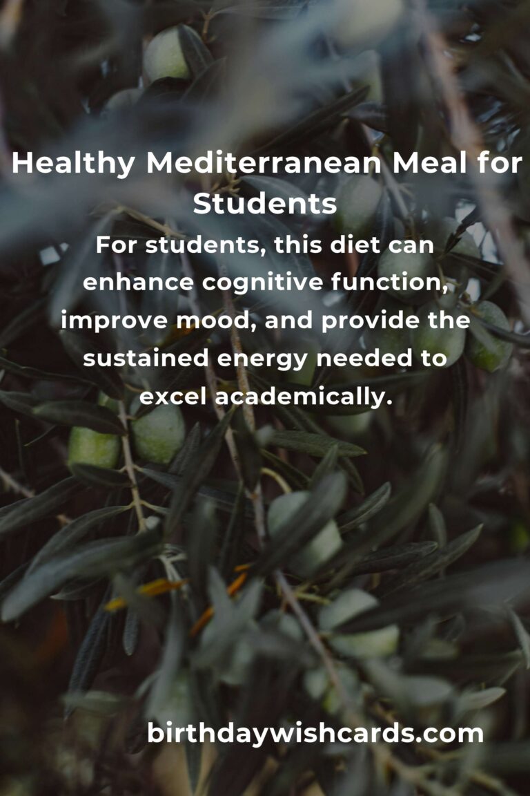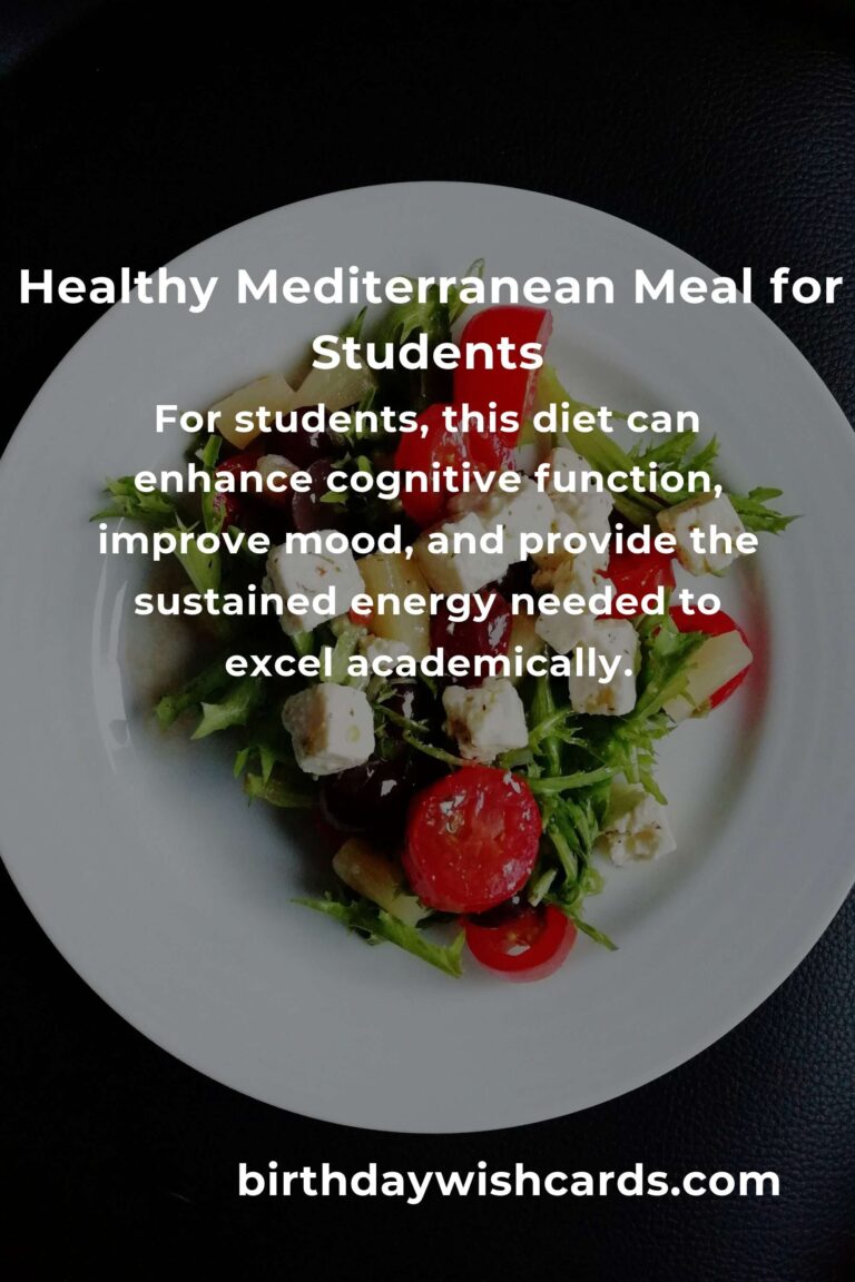The benefits of the Mediterranean diet are widely documented. For students specifically, this diet can enhance cognitive function, improve mood, and provide the sustained energy needed to excel academically.