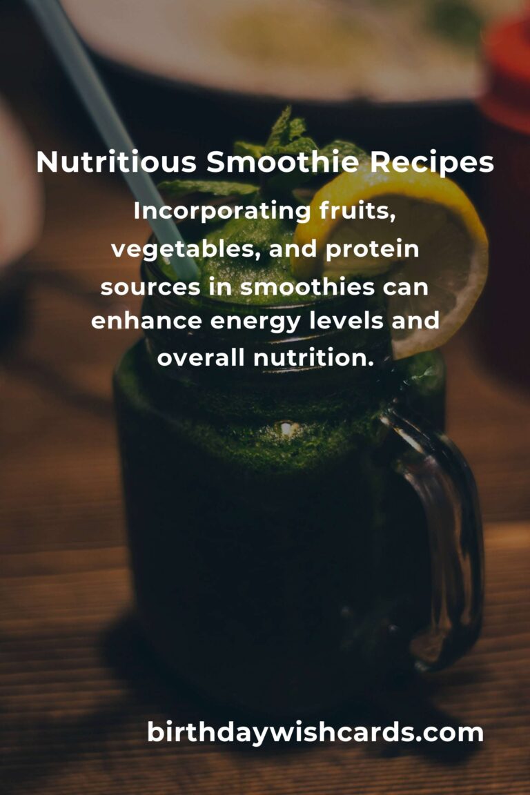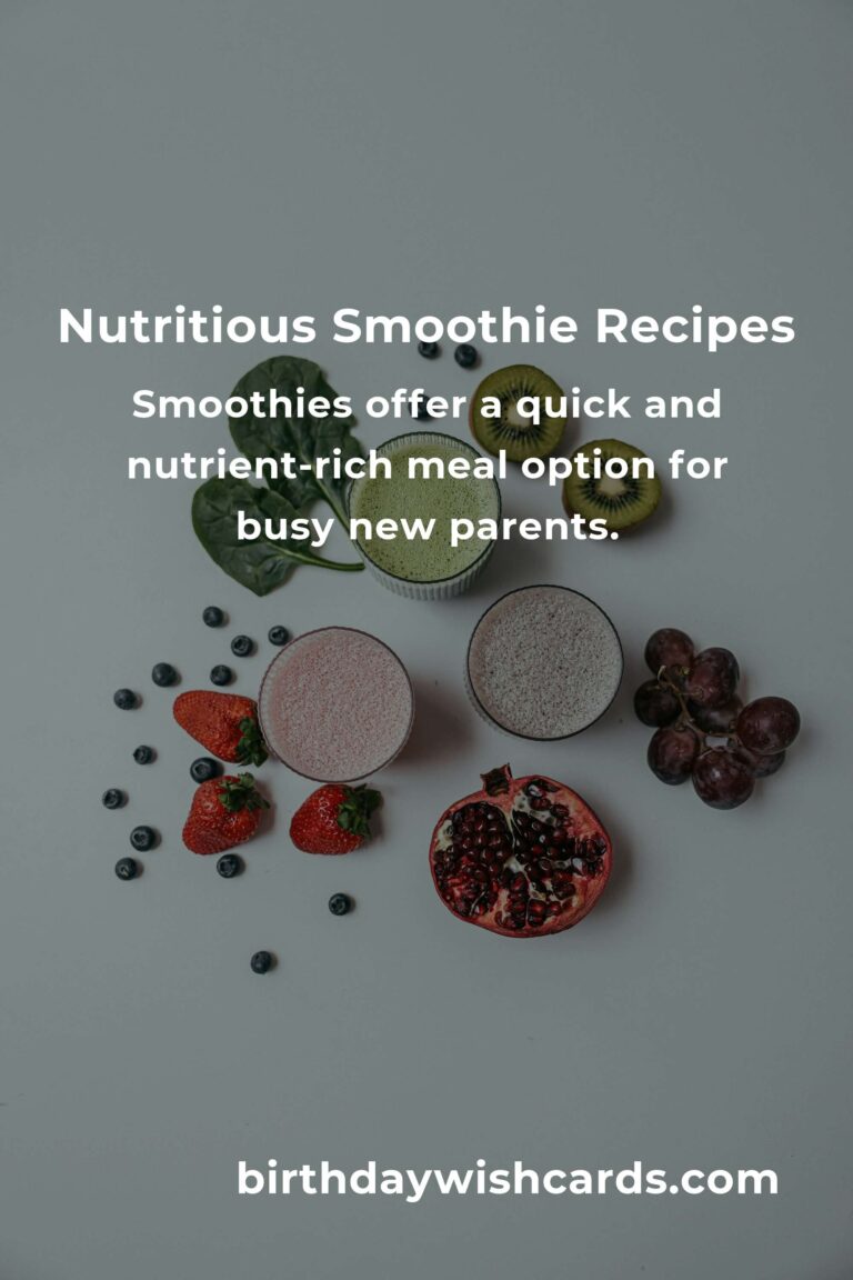 Smoothies are a fantastic option for new parents looking to maintain their energy and nutrition amidst a busy schedule. By incorporating these delicious recipes into your daily routine, you can ensure that you’re fueling your body with the essential nutrients it needs to thrive. Enjoy experimenting with different ingredients and create your own signature smoothie that suits your taste and nutritional needs.