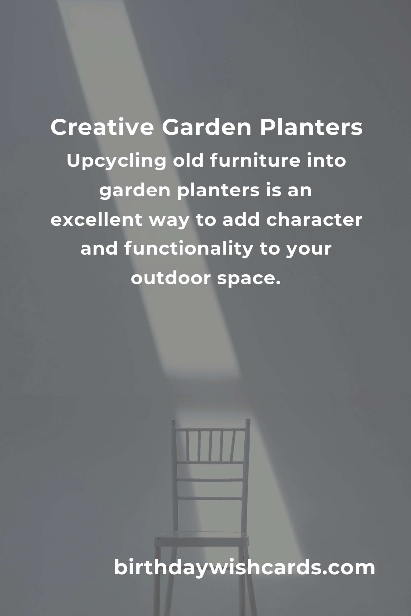 • Chair Planters: Remove the seat from a wooden chair and replace it with a planter box or a large pot. Paint the chair in vibrant colors to add a pop of color to your garden.