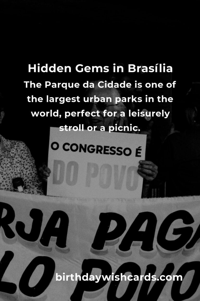 For those looking to connect with nature, Brasília offers several beautiful parks and gardens. The Parque da Cidade is one of the largest urban parks in the world, perfect for a leisurely stroll or a picnic. Additionally, the Jardim Botânico de Brasília provides a serene escape with its diverse flora and fauna. Both locations are budget-friendly and ideal for a day of relaxation.