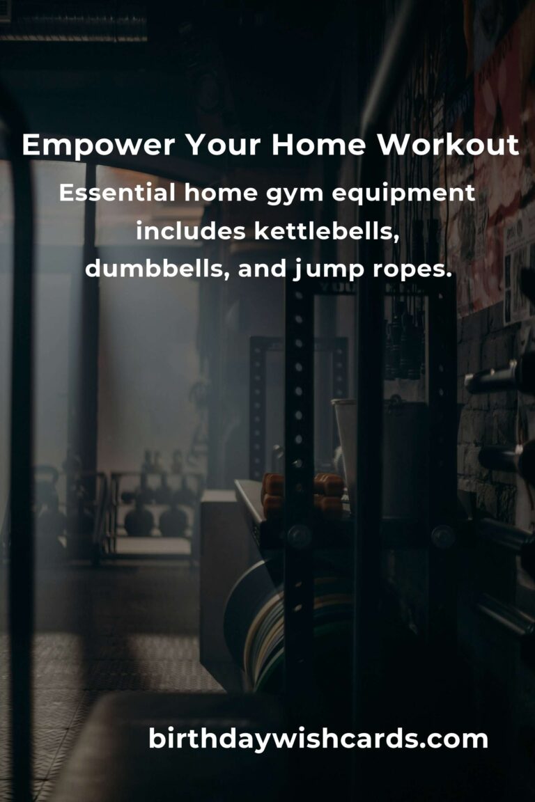 Essential home gym equipment includes kettlebells, dumbbells, and jump ropes.