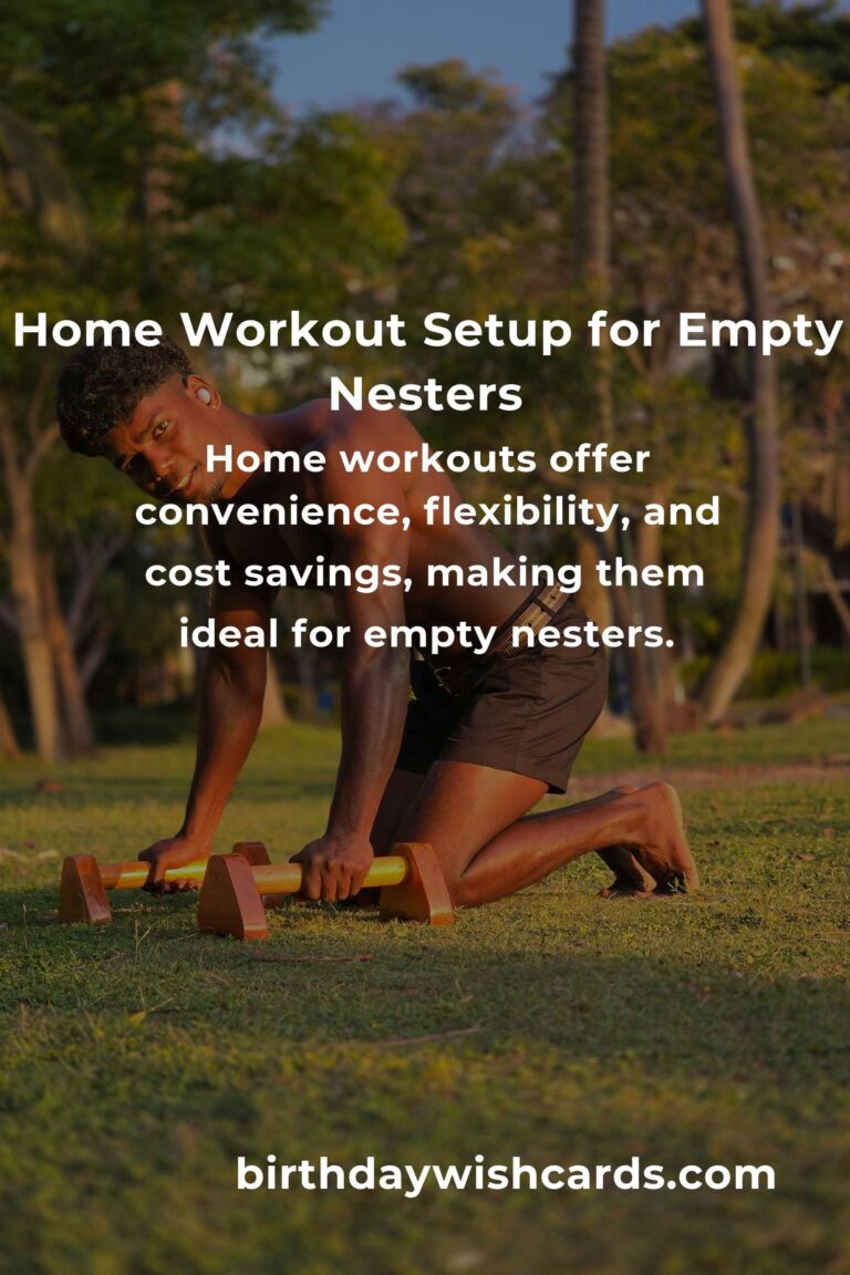Adopting a home workout routine can be a rewarding experience for empty nesters. By setting up a simple home gym and following a structured routine, you can enjoy the physical and mental benefits of regular exercise. Remember to listen to your body, stay consistent, and most importantly, have fun as you embark on this fitness journey.