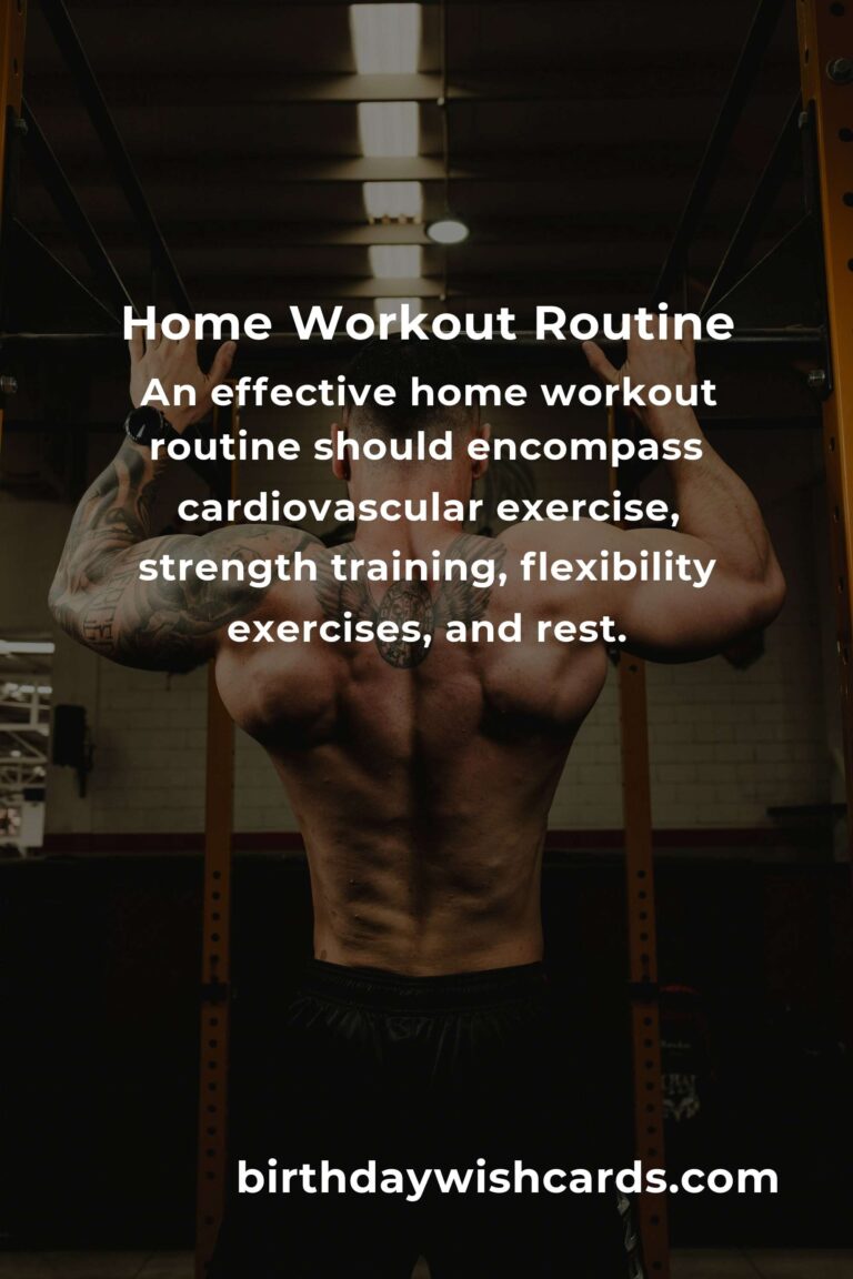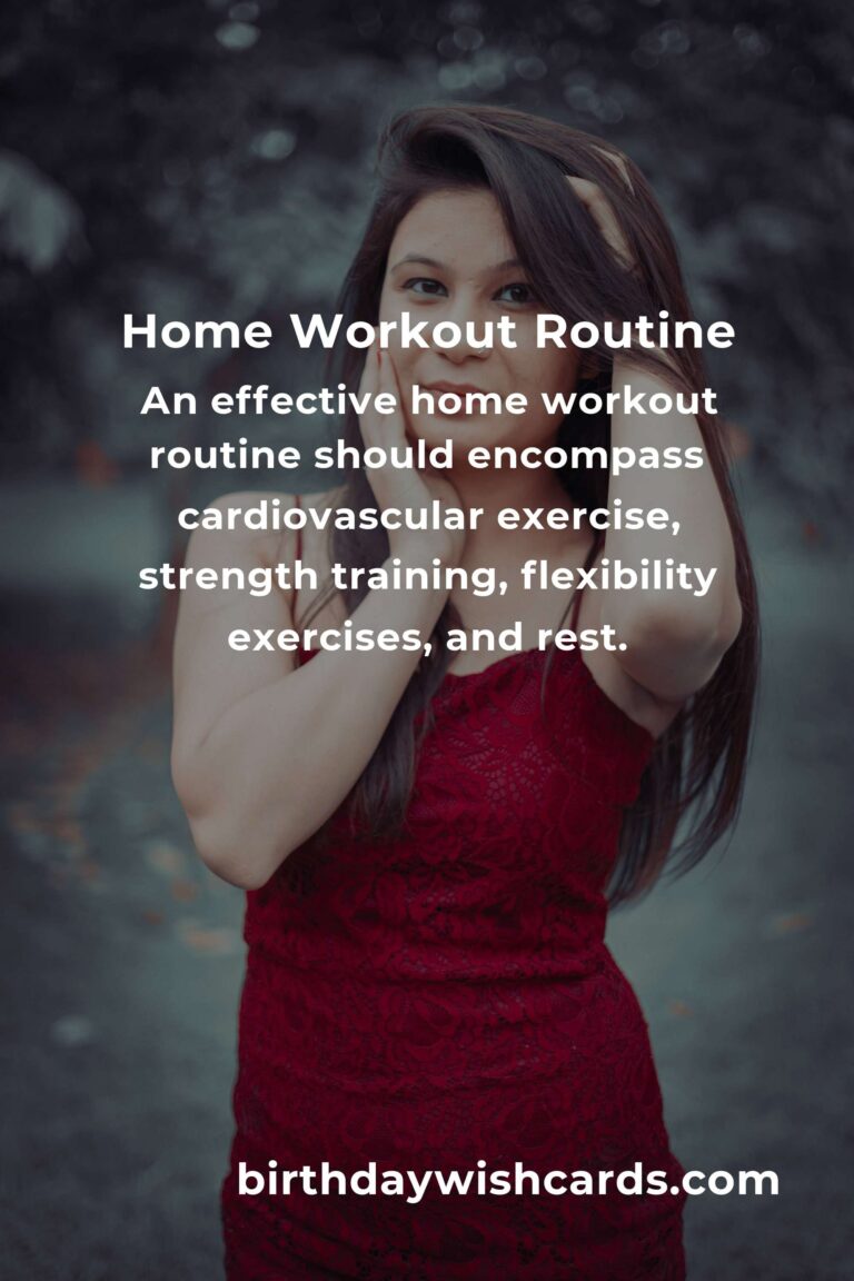 An effective home workout routine should encompass several key elements: cardiovascular exercise, strength training, flexibility exercises, and rest. Cardiovascular exercises like jumping jacks, high knees, or skipping rope can be done in a small space and are excellent for getting the heart rate up. Strength training doesn’t require heavy weights; bodyweight exercises such as push-ups, squats, and planks can help build muscle. Flexibility exercises like yoga or stretching improve overall flexibility and prevent injury. Lastly, rest days are crucial for the body to recover and build strength.