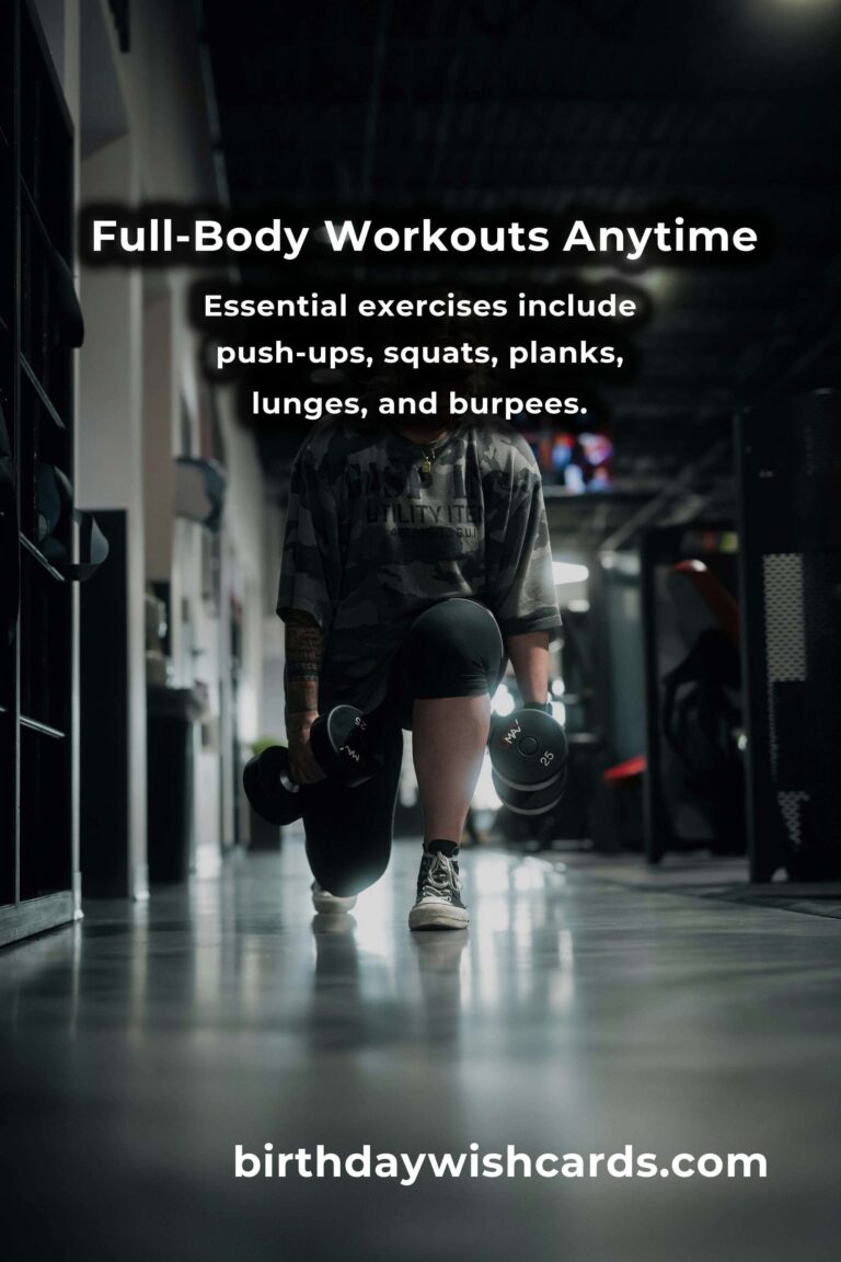 Full-body workouts provide a comprehensive fitness routine that maximizes results in less time. These workouts improve cardiovascular health, increase strength, and enhance flexibility. You can perform full-body exercises anywhere with minimal equipment. Essential exercises include push-ups, squats, planks, lunges, and burpees. Consistency and adaptability are key to success with full-body workouts.
