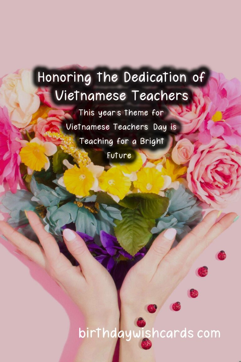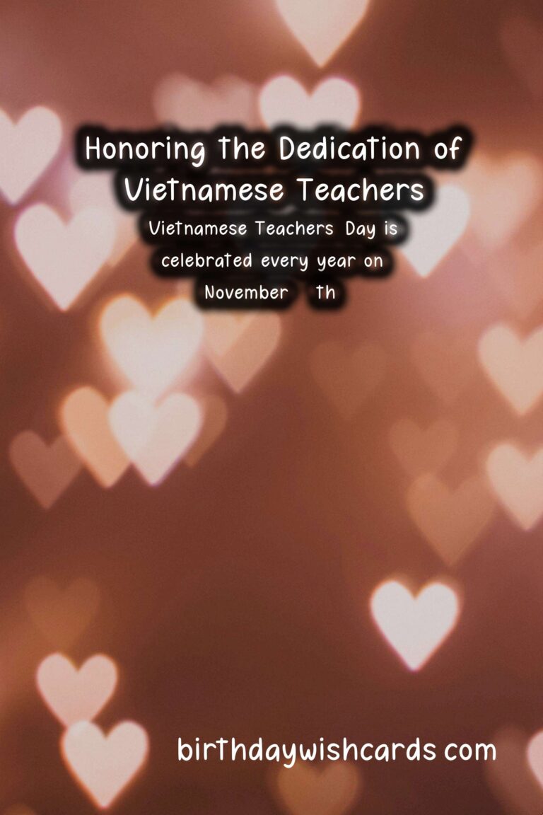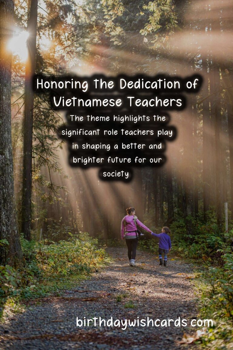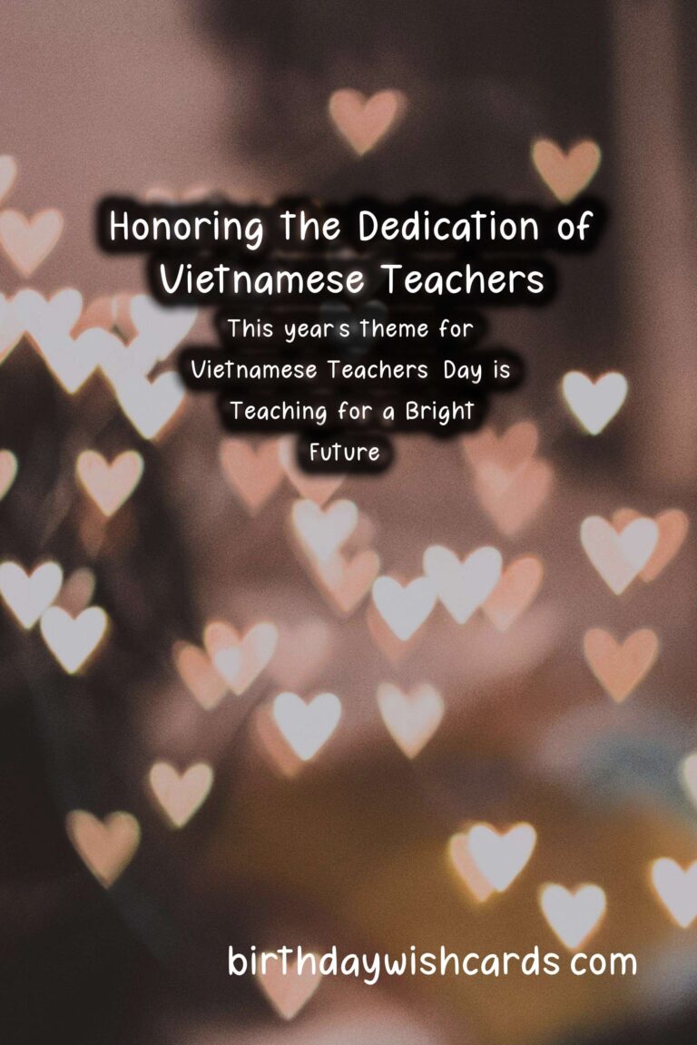 Vietnamese Teachers’ Day is a special occasion in Vietnam, celebrated on November 20th every year. On this day, the country takes a moment to honor and recognize the important role teachers play in shaping young minds and molding future generations. This day pays homage to the dedication, hard work, and sacrifices of Vietnamese teachers, who have a crucial impact on the education system. Teachers’ Day has been declared a public holiday in Vietnam since 1982, and it is celebrated with great enthusiasm and reverence. On this day, schools, universities, and educational institutions organize various activities and events to acknowledge and appreciate the efforts of teachers. The festivities include concerts, award ceremonies, student performances, and speeches, among other events. Students also present their teachers with gifts as a token of thanks and gratitude for their guidance and mentorship. One of the most significant aspects of Vietnamese Teachers’ Day is the opportunity to reminisce and reflect on the impact teachers have had on our lives. We look back on the memories of our school days and the lessons learned from our teachers. Many of us credit our successes and achievements to the patience and support of our teachers. This day is a reminder to express our heartfelt appreciation to the teachers who have played an instrumental role in shaping who we are today. Vietnamese culture places a high value on education and holds teachers in high regard. Teachers are seen as not just instructors, but also as mentors, role models, and guides. They are responsible for imparting knowledge, shaping values and attitudes, and contributing to the holistic development of students. The profession of teaching is often considered one of the noblest and most fulfilling, and Teachers’ Day serves as an opportunity to recognize and celebrate the contributions of teachers. The theme for this year’s Vietnamese Teachers’ Day is ‘Teaching for a Bright Future’. It highlights the significant role teachers play in shaping a better and brighter future for our society. The theme also emphasizes the importance of quality education and the need for continuous support and training for teachers to enhance their skills and competencies. As we celebrate Teachers’ Day, it is also essential to remember and acknowledge the challenges and difficulties faced by teachers. The teaching profession demands immense dedication, hard work, and patience. Teachers often work long hours, often underpaid and undervalued. Despite these challenges, the commitment and passion of teachers towards their students and their profession remain unwavering. On social media platforms, netizens use the hashtag or to share their messages and tributes to teachers. This serves as a platform to spread awareness about the significance of this day and to express gratitude to teachers. Vietnamese Teachers’ Day is not just a celebration; it is a reminder of the crucial role teachers play in the development and progress of our society. It is an opportunity to pay respect and honor the hardworking and dedicated teachers who have a significant impact on our lives. So on this November 20th, let us take a moment to thank our teachers and appreciate their contributions in shaping a better future for us all. Vietnamese Teachers’ Day is celebrated every year on November 20th. It is a special occasion to honor and recognize the important role teachers play in shaping young minds. The day is a public holiday in Vietnam since 1982. Students show their appreciation by presenting gifts to their teachers on this day. Teachers are seen as not just instructors, but also as mentors, role models, and guides. This year’s theme for Vietnamese Teachers’ Day is ‘Teaching for a Bright Future’. The theme highlights the significant role teachers play in shaping a better and brighter future for our society. As we celebrate Teachers’ Day, it is also essential to remember the challenges and difficulties faced by teachers. On social media, the hashtags or are used to spread awareness and express gratitude to teachers. Vietnamese Teachers’ Day serves as a reminder of the crucial role teachers play in the development and progress of our society.