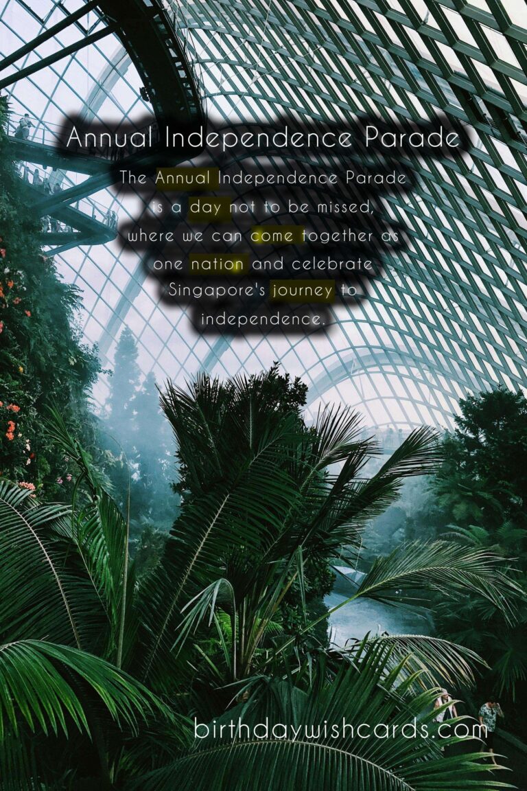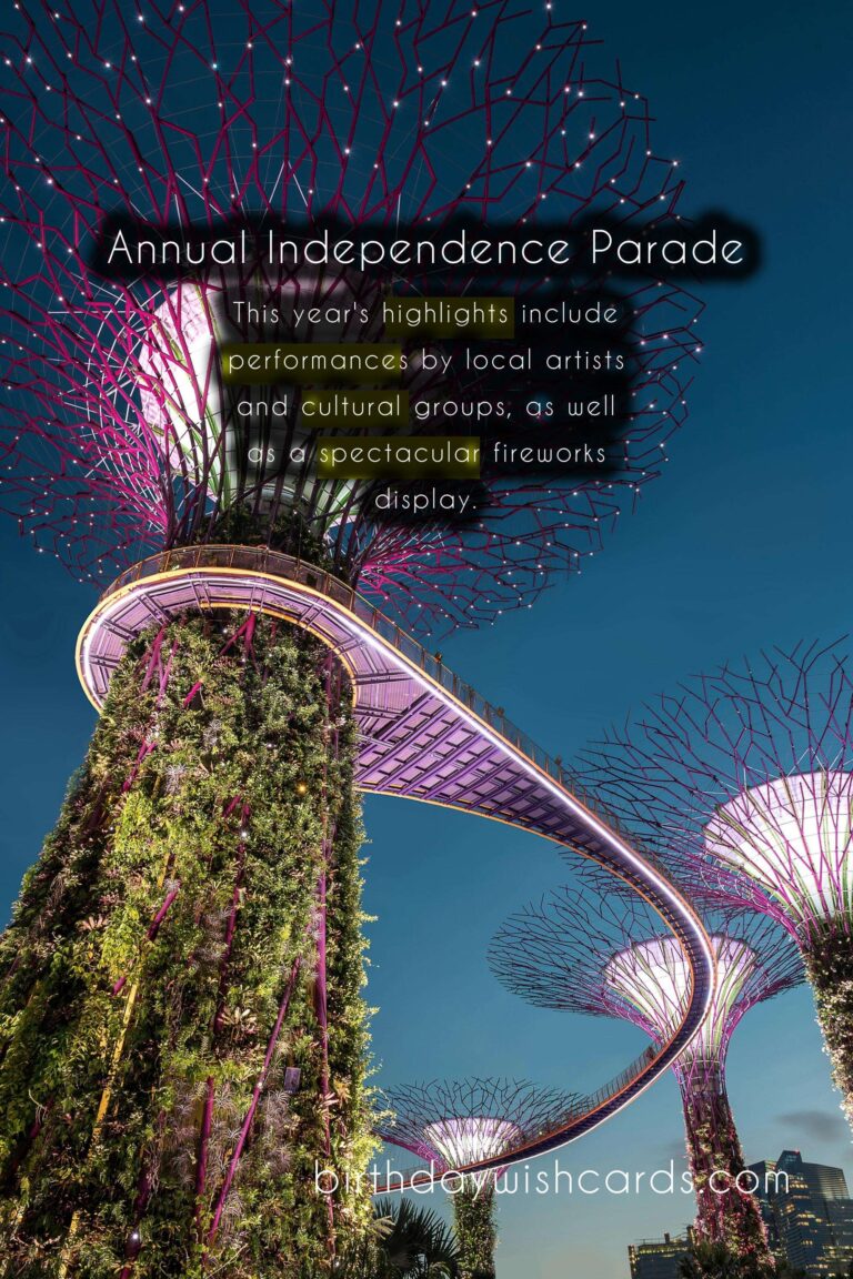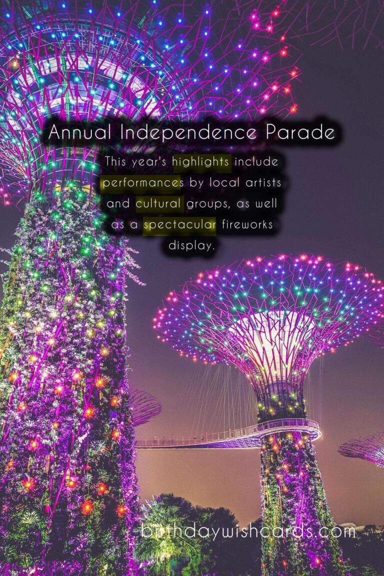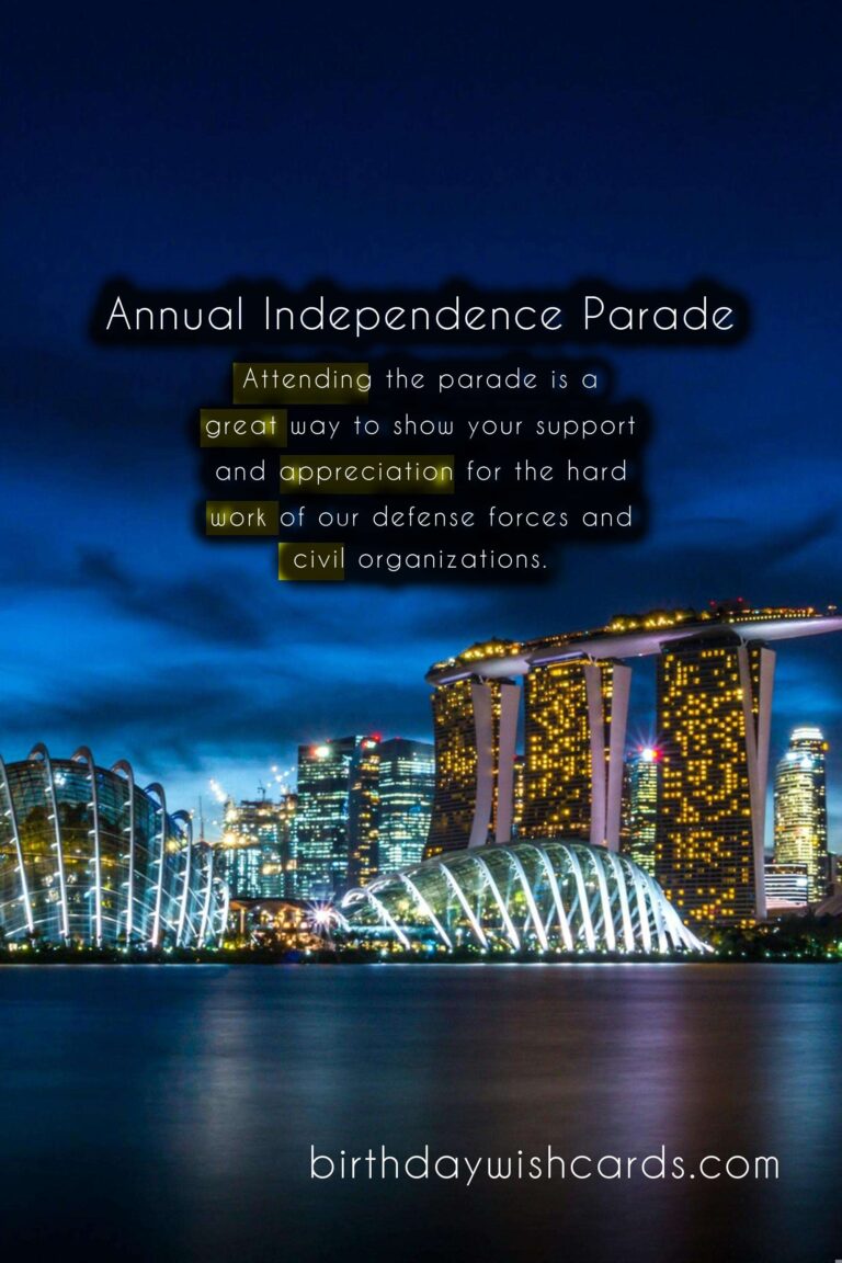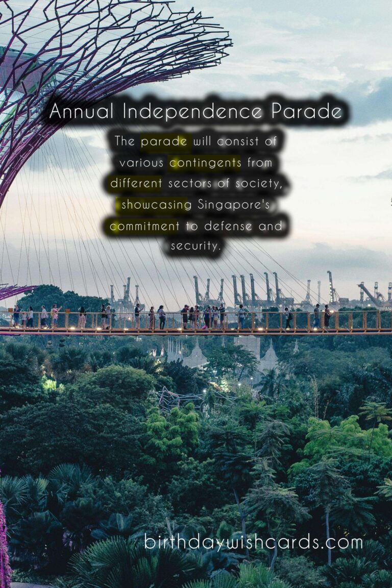 Mark your calendars and join us on November 30th for the Annual Independence Parade. It is a day not to be missed, where we can come together as one nation and celebrate Singapore’s journey to independence. Let us all show our pride and love for our country on this special day. Singapore’s annual Independence Parade is a long-standing tradition that has been celebrated since their independence on August 9, 1965. This year, the parade will take place on November 30th, with a host of exciting events and activities planned for the day. The theme for this year’s Independence Parade is ‘Our Singapore’, celebrating the country’s diverse and vibrant culture. The parade will consist of various contingents from different sectors of society, showcasing Singapore’s commitment to defense and security. This year’s highlights include performances by local artists and cultural groups, as well as a spectacular fireworks display. The flypast, showcasing Singapore’s air defense capabilities, is one of the most awaited highlights of the parade. Attending the parade is a great way to show your support and appreciation for the hard work of our defense forces and civil organizations. The Annual Independence Parade is a day not to be missed, where we can come together as one nation and celebrate Singapore’s journey to independence.