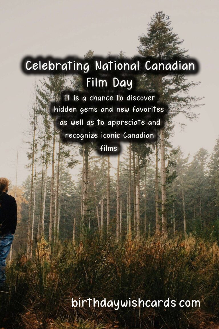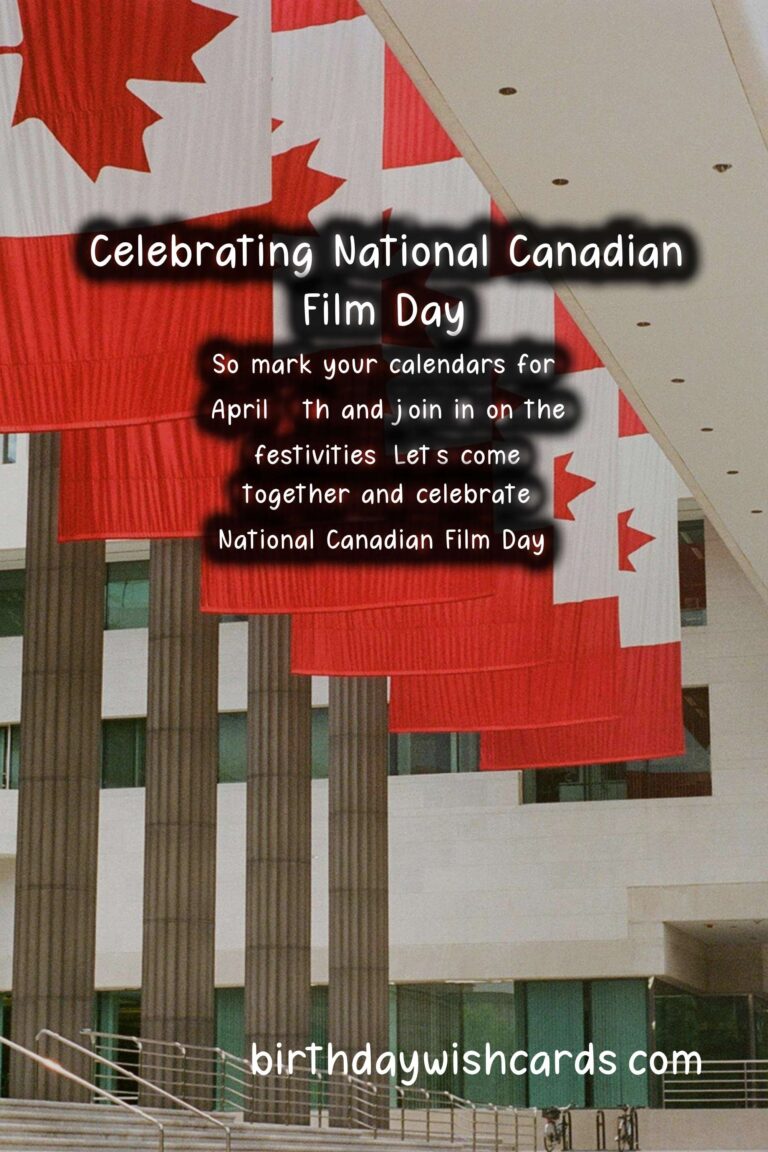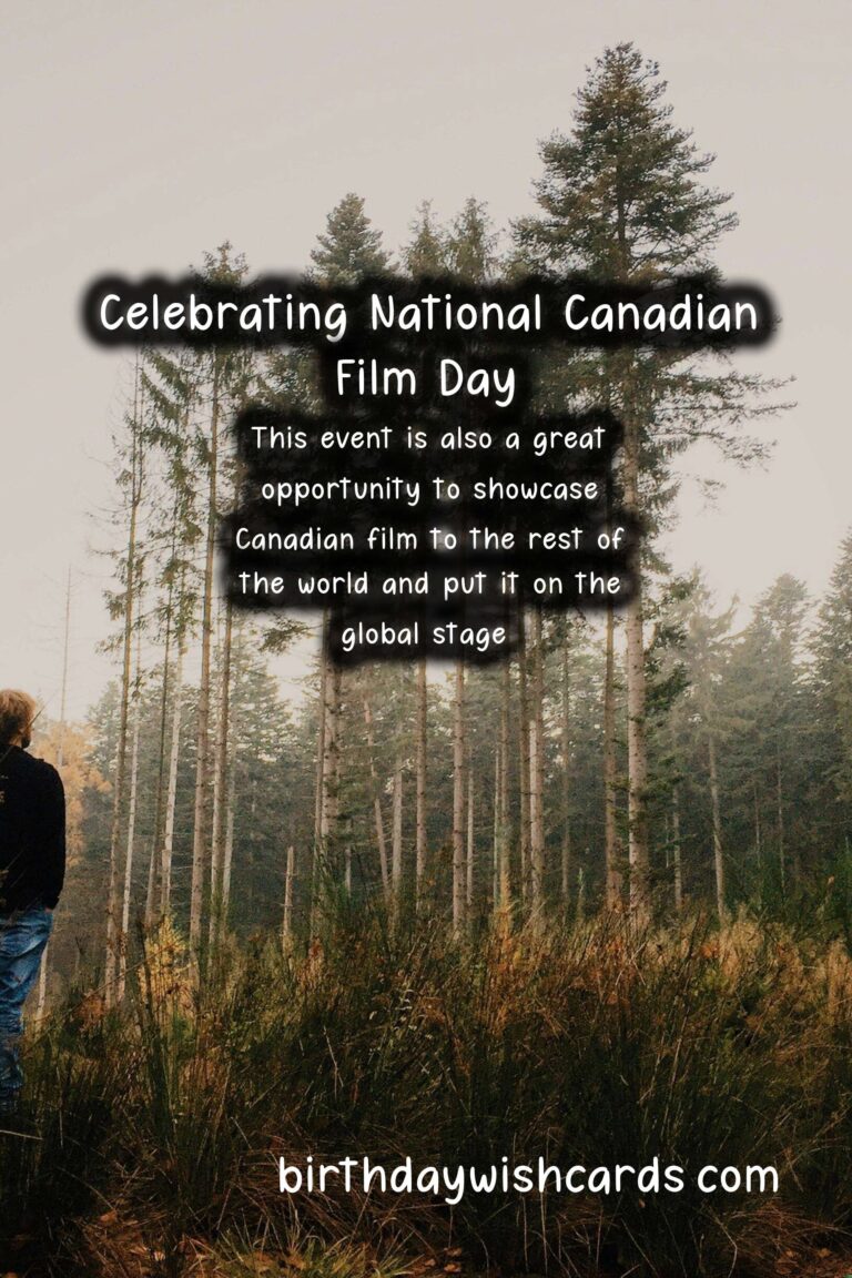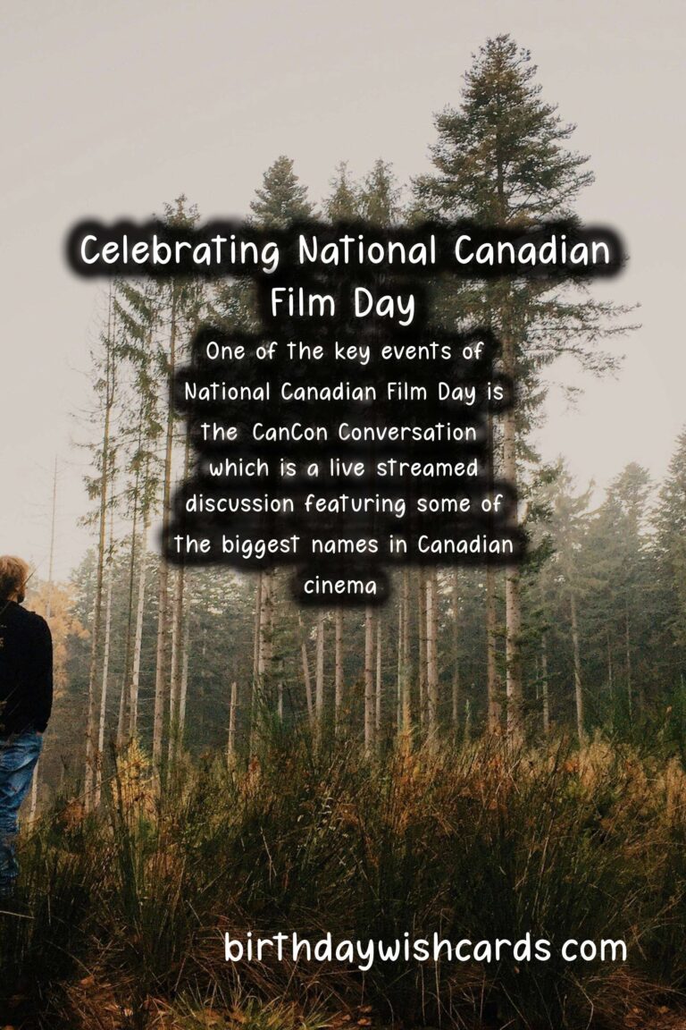 National Canadian Film Day is celebrated on April 15th every year. It is an annual event that was first introduced in 2014 by Reel Canada, a non-profit organization dedicated to promoting Canadian film and talent. This day is meant to celebrate and showcase the amazing works of Canadian filmmakers, actors, and crew members who contribute to the country’s film industry. One of the main goals of National Canadian Film Day is to raise awareness about the Canadian film industry and encourage people to explore and discover the unique stories and perspectives that Canadian films have to offer. Since its inception, National Canadian Film Day has grown significantly, with thousands of screenings and events taking place across the country every year. This year, due to the COVID-19 pandemic, the event will be celebrated virtually, making it accessible to even more people. The theme for this year’s National Canadian Film Day is ‘Canuck at Home: Celebrating Canadian Cinema from Coast to Coast’. This theme highlights the diversity of Canadian cinema, from the East to the West coast, and everything in between. Throughout the day, there will be community events, film screenings, and online discussions showcasing Canadian talent and films. National Canadian Film Day is an opportunity to not only celebrate Canadian cinema but also to support and promote the industry, especially during these challenging times for the arts. There will be a wide range of films featured during this event, including documentaries, drama, comedy, and more. It is a chance to discover hidden gems and new favorites, as well as to appreciate and recognize iconic Canadian films. Another exciting aspect of National Canadian Film Day is the opportunity to interact with filmmakers and industry professionals through Q&A sessions and online discussions. It is a chance to gain insight into the creative process behind Canadian films and learn more about the industry. One of the key events of National Canadian Film Day is the ‘CanCon Conversation’, which is a live-streamed discussion featuring some of the biggest names in Canadian cinema. In addition to celebrating Canadian film, this event also aims to foster a sense of community and pride in Canadian culture. By participating in National Canadian Film Day, you are not only supporting the local film industry but also celebrating the rich cultural heritage of Canada. This event is also a great opportunity to showcase Canadian film to the rest of the world and put it on the global stage. In the past, National Canadian Film Day has received international recognition and has even been featured at major events such as the Cannes Film Festival. This year, the organizers of National Canadian Film Day are encouraging people to show their support by using the hashtags and on social media, as well as by sharing their favorite Canadian films with friends and family. National Canadian Film Day is a celebration of Canadian talent and creativity, and it is a day to be proud of the amazing work that our filmmakers do. So mark your calendars for April 15th and join in on the festivities. Let’s come together and celebrate National Canadian Film Day! Happy National Canadian Film Day, everyone!