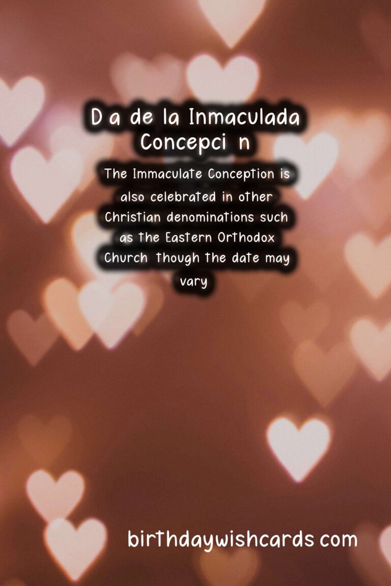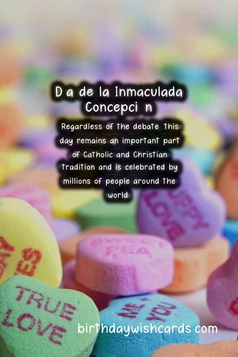 December 8 is a special day for many Christians around the world as it is celebrated as Día de la Inmaculada Concepción or Immaculate Conception Day. This day commemorates the belief that Mary, the mother of Jesus, was conceived without original sin, making her pure and without blemish from the moment of her conception. It is considered a public holiday in countries such as Spain, Italy, and several Latin American countries. The concept of the Immaculate Conception has been a part of Catholic tradition for centuries, but it was officially declared as a dogma (a belief that is essential to the faith) by Pope Pius IX in 1854. This day is not to be confused with the feast of the Annunciation, which celebrates the moment when the angel Gabriel visited Mary to inform her about her future role as the mother of Jesus. In some countries, December 8 is also celebrated as Mother’s Day, in honor of Mary and her important role as the mother of Jesus. The day is usually marked with religious processions, masses, and special prayers dedicated to Mary. Legend has it that in 1485, Mary appeared to a young girl in the Spanish town of Alcossebre, which led to the town being named after her in honor of this event. In Spain, this day is celebrated with a national holiday and many parades, marches, and street festivals are held in honor of the Immaculate Conception. In many Latin American countries, this day is celebrated with special dishes such as tamales, which are traditionally eaten on religious holidays. The Immaculate Conception is also celebrated in other Christian denominations such as the Eastern Orthodox Church, though the date may vary. In recent years, there has been some controversy surrounding this holiday as some people question the interpretation of the dogma and its historical accuracy. Regardless of the debate, this day remains an important part of Catholic and Christian tradition and is celebrated by millions of people around the world.