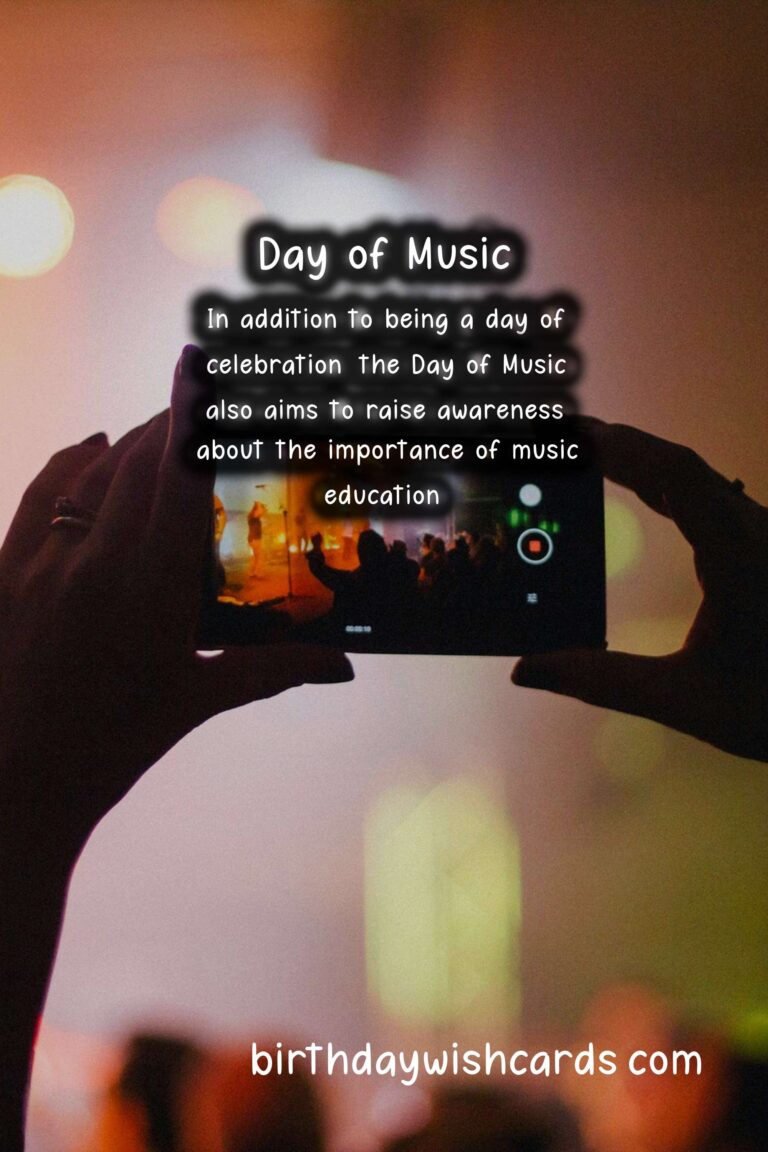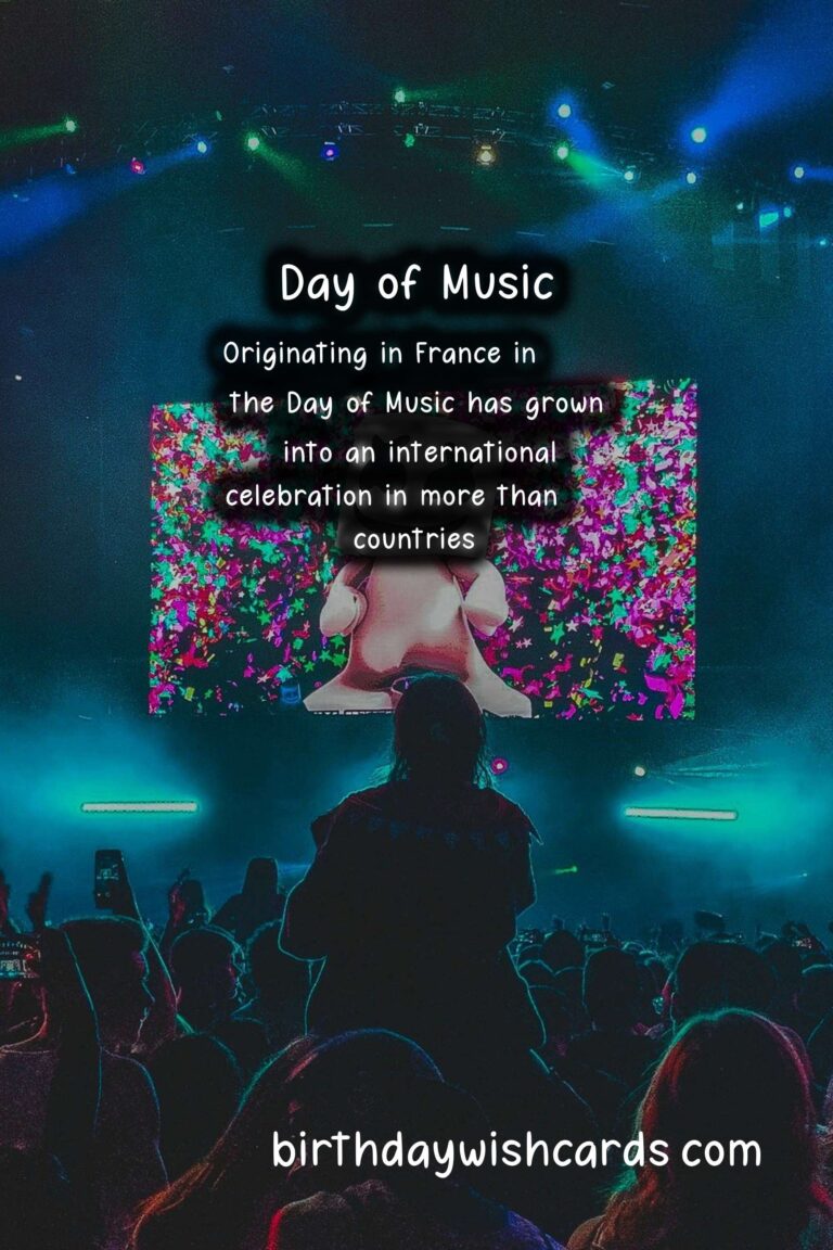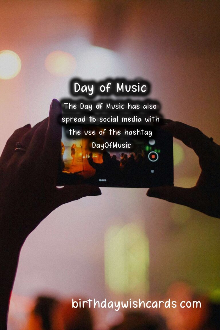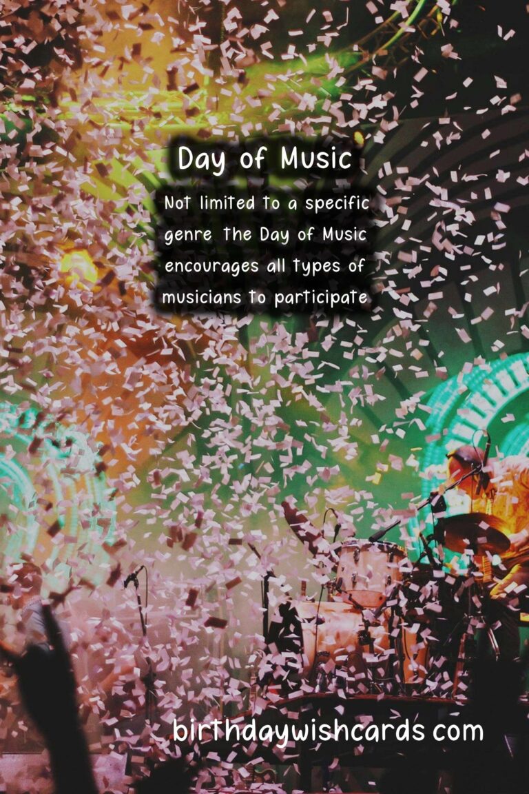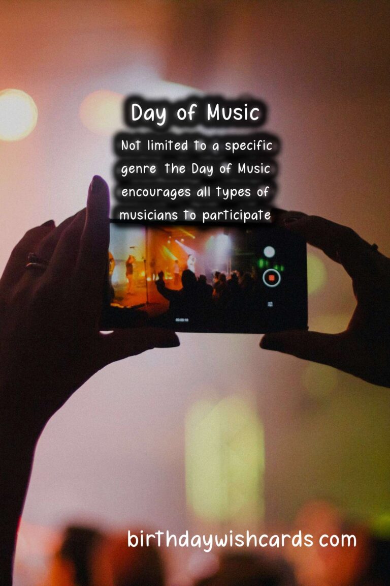 Featured ImageDía de la Música, also known as the Day of Music, is a national holiday in many countries throughout the world that celebrates the power and beauty of music. It is observed on August 22 every year and is a day filled with concerts, music festivals, and other musical events. This day is a reminder of the importance of music in our lives and its ability to bring people together. Originating in France in 1982 as the Fête de la Musique, the Day of Music has grown into an international celebration in more than 120 countries. It was created by Jack Lang, the French Minister of Culture at the time, to promote music and encourage people to play and listen to music regardless of their backgrounds. The date of August 22 was chosen because it coincides with the summer solstice in the Northern Hemisphere, the longest day of the year, giving people more daylight hours to enjoy music. The Day of Music is not limited to a specific genre of music and encourages all types of musicians to participate. Whether it’s classical, rock, pop, hip-hop, or any other style, the goal is to celebrate the universal language of music and showcase the diversity of musical cultures. Cities around the world host free outdoor concerts, street performances, and jam sessions for people of all ages and backgrounds to enjoy. In some countries, government buildings and public spaces are transformed into stages for musicians to perform on. Not only does the Day of Music celebrate music in general, but it also honors specific musicians or groups on this day. In Germany, August 22 is known as the Day of German Folk Music, with performances by traditional folk bands and singers across the country. In Argentina, August 22 is dedicated to tango music, with concerts and dancing in the streets of Buenos Aires. Similarly, in Cameroon, August 22 is the Day of African Traditional Music, celebrating the diverse sounds of the continent. The Day of Music encourages people of all ages to participate, whether they are professional musicians or simply enjoy listening to music. In many cities, amateur musicians and street performers are welcomed to play, allowing everyone to be a part of the celebration. This inclusive atmosphere reinforces the message that music is for everyone and has the power to unite us all. In addition to being a day of celebration, the Day of Music also aims to raise awareness about the importance of music education and the impact it can have on our society. Many organizations and schools use this day to hold workshops and seminars, shedding light on the educational and social benefits of music. The Day of Music is not only observed in traditional concert venues and public spaces, but it has also spread to social media with the use of the hashtag . People from all around the world share their love for music on this day and post about their musical experiences. This online community allows for global participation and further promotes the understanding and appreciation of music’s universal language. So on August 22, let’s celebrate the Day of Music by attending a local concert, playing our favorite instrument, or simply listening to our favorite songs. Let’s thank the musicians and artists who have dedicated their lives to creating beautiful music and remind ourselves of the power of music to bring us all together. Happy Day of Music to all! The Day of Music is celebrated on August 22 every year as a reminder of the importance of music in our lives. Originating in France in 1982, the Day of Music has grown into an international celebration in more than 120 countries. The goal of the Day of Music is to celebrate the universal language of music and showcase the diversity of musical cultures. Not limited to a specific genre, the Day of Music encourages all types of musicians to participate. In addition to being a day of celebration, the Day of Music also aims to raise awareness about the importance of music education. The Day of Music has also spread to social media with the use of the hashtag . On August 22, let’s celebrate the Day of Music by attending a local concert or simply listening to our favorite songs. Día de la Música (Day of Music) - August 22Día de la Música (Day of Music) - August 22Día de la Música (Day of Music) - August 22Día de la Música (Day of Music) - August 22Día de la Música (Day of Music) - August 22Día de la Música (Day of Music) - August 22Día de la Música (Day of Music) - August 22Día de la Música (Day of Music) - August 22Día de la Música (Day of Music) - August 22