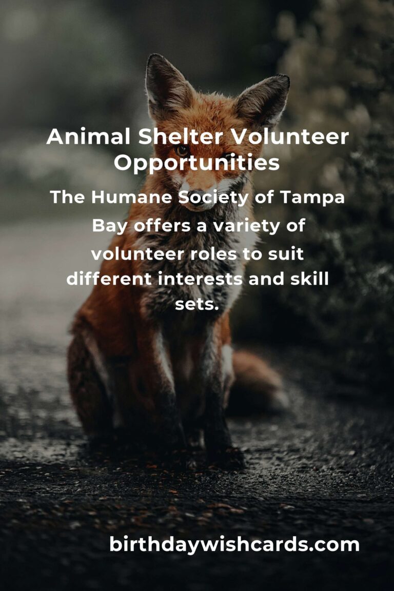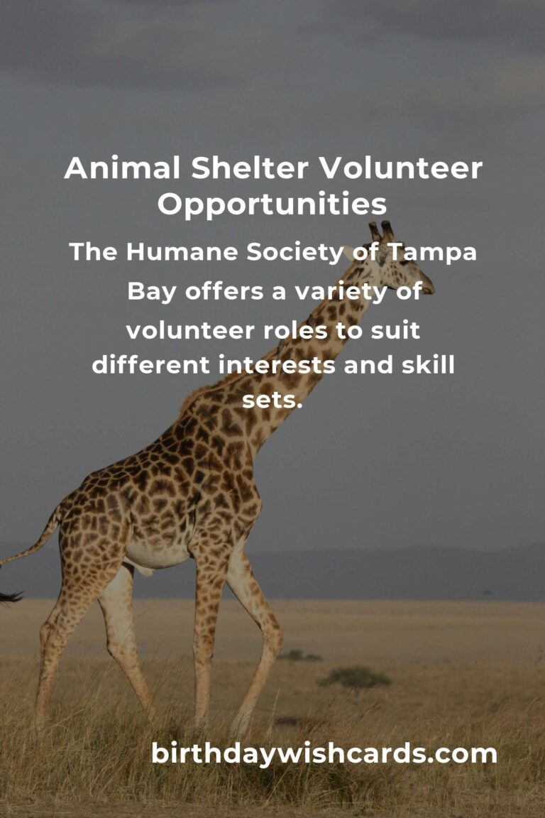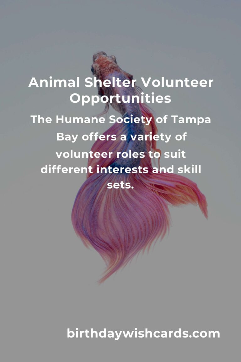 The Humane Society of Tampa Bay is one of the most prominent animal shelters in the area. Their mission is to end animal homelessness and provide care for those in need. Volunteers are a crucial part of their operations, helping with everything from animal care and adoption events to administrative support and community outreach. The shelter offers a variety of volunteer roles to suit different interests and skill sets.
