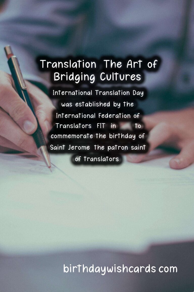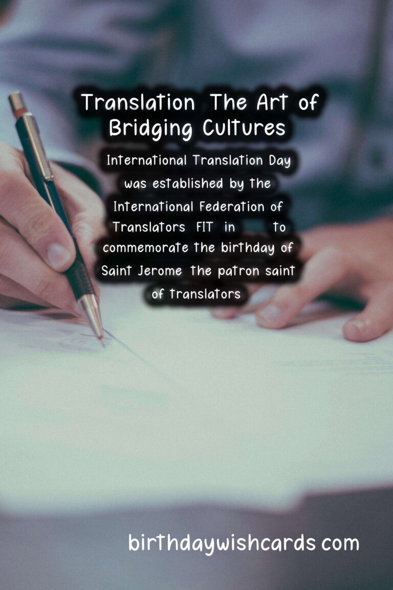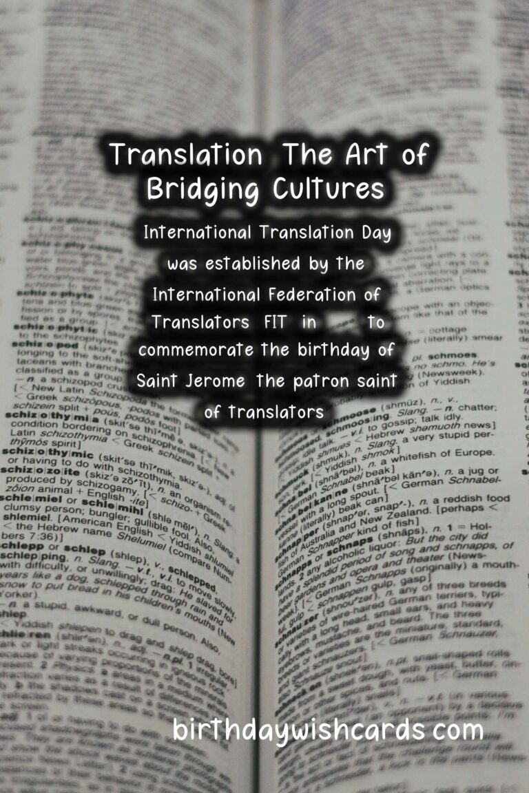 International Translation Day was established by the International Federation of Translators (FIT) in 1953 to commemorate the birthday of Saint Jerome, the patron saint of translators. Saint Jerome was a priest and scholar who is recognized as one of the greatest translators in history. He dedicated his life to translating the Bible into Latin, making it accessible to a wider audience.