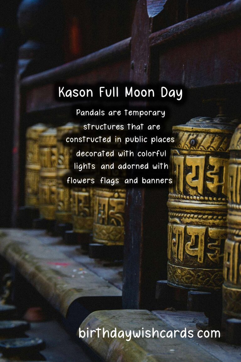 The name ‘Kason’ is derived from the Pali word ‘Vesakha’, which is the name of the traditional lunar month in the Buddhist calendar. This month is considered to be the most sacred month for Buddhists as it commemorates the most significant events in the life of Gautama Buddha.