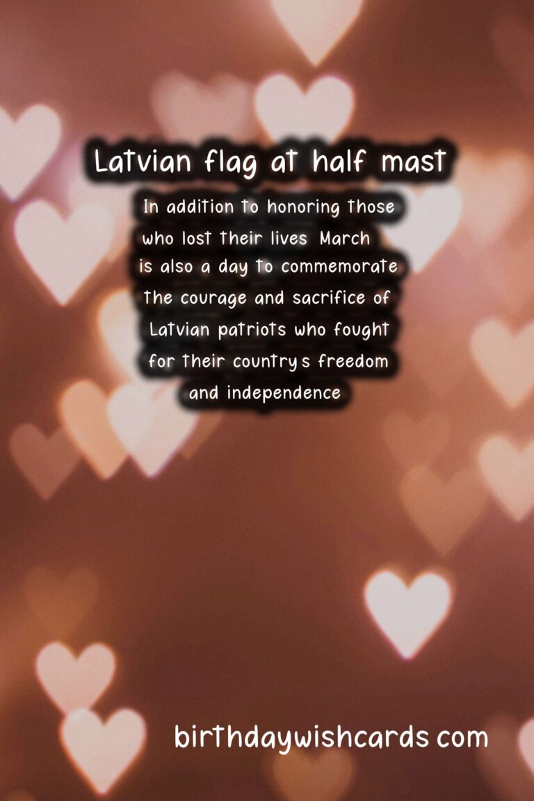 Latvia is a small, yet mighty country nestled in the heart of the Baltics. With a rich history and strong national identity, Latvians have a deep respect for their heritage and traditions. One of the most important days on the Latvian calendar is March 16, also known as the National Day of Mourning and Commemoration. This day holds a significant meaning to the people of Latvia and serves as a reminder of their tumultuous past. Each year on March 16, Latvians come together to honor the lives lost during the Soviet occupation and World War II. This day is a somber and reflective time for the nation, as they pay tribute to those who sacrificed everything for their country. The National Day of Mourning and Commemoration is a time for Latvians to reflect on their history and to stand in solidarity with one another. As a symbol of respect, the Latvian flag is flown at half-mast throughout the country on this day. The events of March 16, 1944, are etched into the memory of every Latvian. On this day, the Soviet army began mass deportations of Latvian citizens to Siberia, marking the beginning of a dark period in Latvian history. The deportation of innocent citizens, including women and children, is a sad reminder of the inhumanity and brutality of war. The suffering and loss faced by the Latvian people during this time are difficult to comprehend, and this day serves as a time to reflect on the atrocities of the past. Despite the pain and hardship faced by the Latvian people, they remain resilient and united. The National Day of Mourning and Commemoration is also a time to honor the enduring spirit and strength of the Latvian people. In addition to honoring those who lost their lives, March 16 is also a day to commemorate the courage and sacrifice of Latvian patriots who fought for their country’s freedom and independence. Through their brave actions, they helped pave the way for a better future for Latvia. Today, Latvian National Day of Mourning and Commemoration is not only a time of remembrance but also a celebration of the Latvian spirit and the country’s journey towards independence and sovereignty. It is a day to pay homage to the past, but also to look forward to a brighter and more hopeful future. Through commemorating this day, the Latvian people honor their heritage and show their commitment to preserving their culture and traditions for future generations.