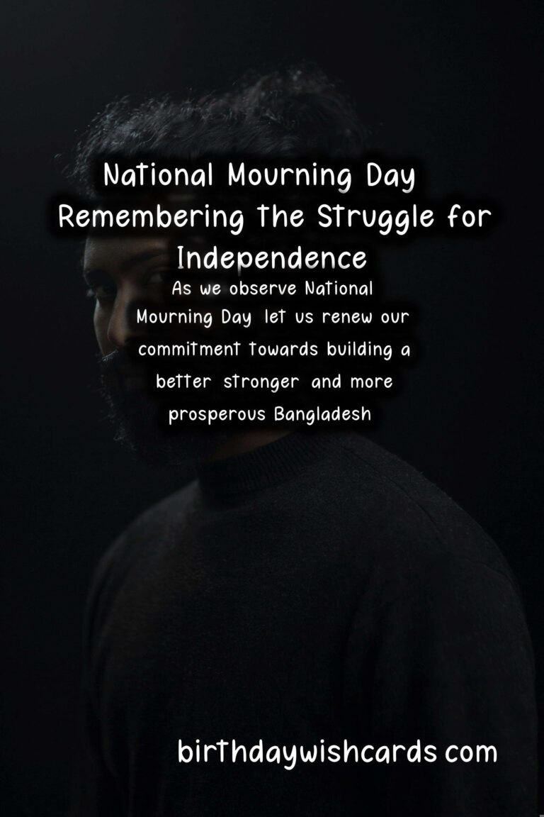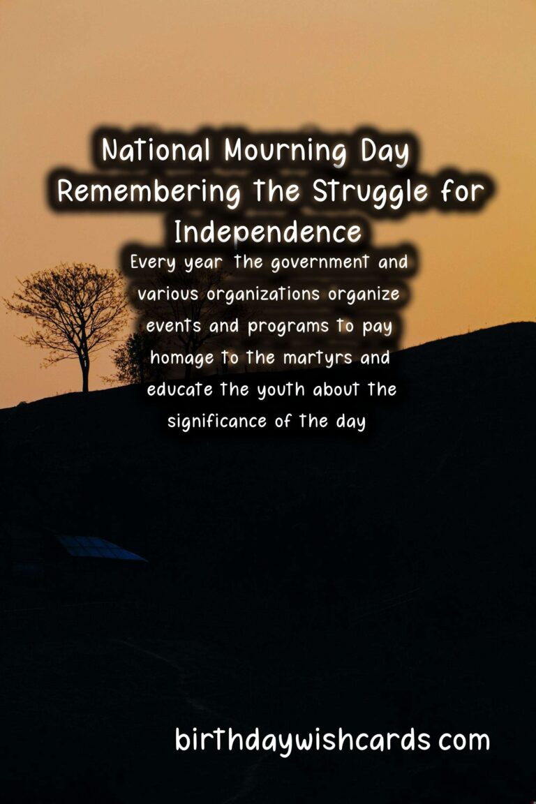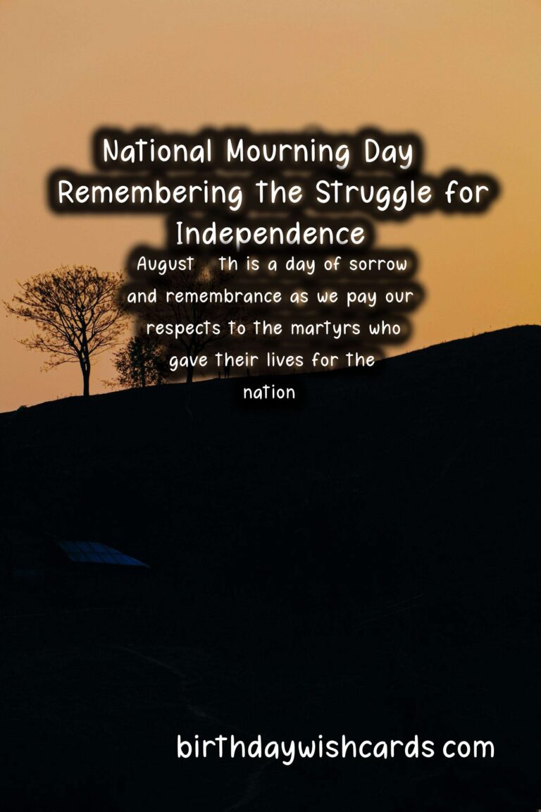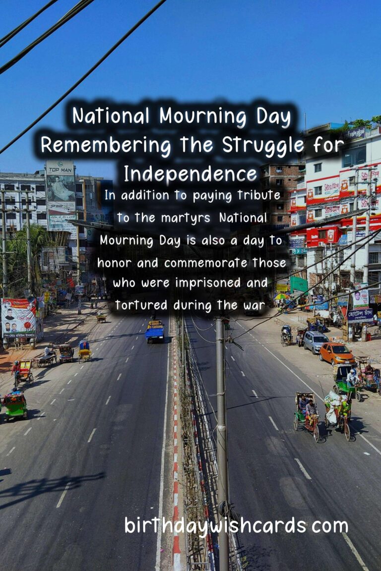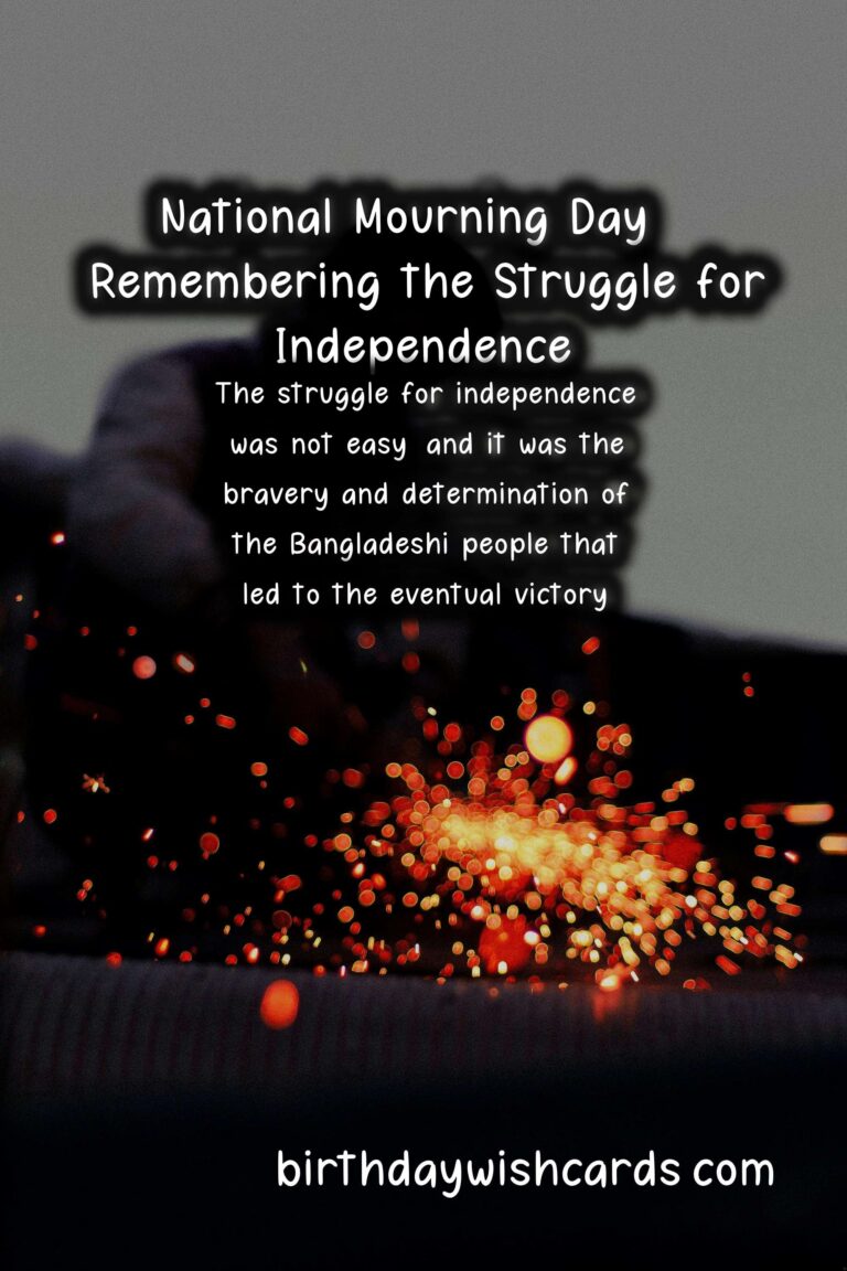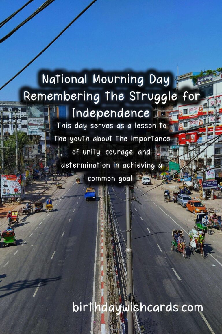 National Mourning Day is observed on the 15th of August every year to commemorate the sacrifices made by the martyrs during the Bangladesh Liberation War in 1971. On this day, the nation mourns the loss of those who fought for the country’s independence and pays tribute to their bravery and courage. The day holds immense significance for the people of Bangladesh as it marks the country’s journey towards freedom and democracy. August 15th is a day of sorrow and remembrance as we pay our respects to the martyrs who gave their lives for the nation. The struggle for independence was not easy, and it was the bravery and determination of the Bangladeshi people that led to the eventual victory. National Mourning Day is not just a day to mourn, but also a day to reflect on our history and the sacrifices made by our forefathers. On this day, the entire nation comes together to remember the heroes who fought for our present, and for the generations to come. The Bangladesh Liberation War was a pivotal point in the country’s history, and it is essential to keep the memories alive and pass down the stories to future generations. Every year, the government and various organizations organize events and programs to pay homage to the martyrs and educate the youth about the significance of the day. National Mourning Day is not only observed in Bangladesh but also in other parts of the world where the Bangladeshi diaspora resides. Many documentaries, films, and books have been made and written about the Liberation War, and they serve as a testament to the bravery and sacrifices of the people. Even though the war ended almost 50 years ago, the memories and emotions surrounding it are still fresh in the minds of those who experienced it. On this day, the National Flag is lowered to half-mast as a sign of mourning, and people wear black badges as a symbol of grief and respect. In addition to paying tribute to the martyrs, National Mourning Day is also a day to honor and commemorate those who were imprisoned and tortured during the war. The day serves as a reminder of the struggles and sacrifices made by the people of Bangladesh for the country’s freedom and democracy. It is crucial to remember and honor the past as it shapes our present and future. Our independence came at a great cost, and it is our responsibility to protect and preserve it at all costs. The spirit of National Mourning Day goes beyond mourning; it also celebrates the strength, resilience, and patriotism of the Bangladeshi people. This day serves as a lesson to the youth about the importance of unity, courage, and determination in achieving a common goal. We must never forget the sacrifices made by the martyrs and use their bravery as an inspiration to fight against all forms of oppression and injustice. The struggle for independence may have been a dark chapter in our history, but it also brought the nation together and gave us our identity and sovereignty. As we observe National Mourning Day, let us renew our commitment towards building a better, stronger, and more prosperous Bangladesh.
