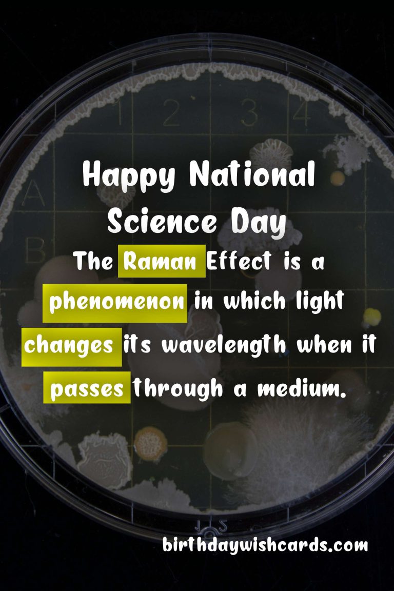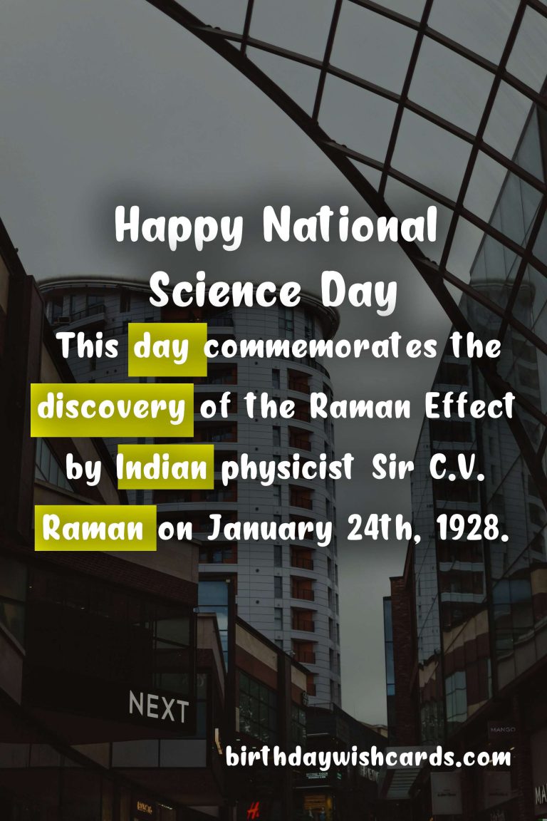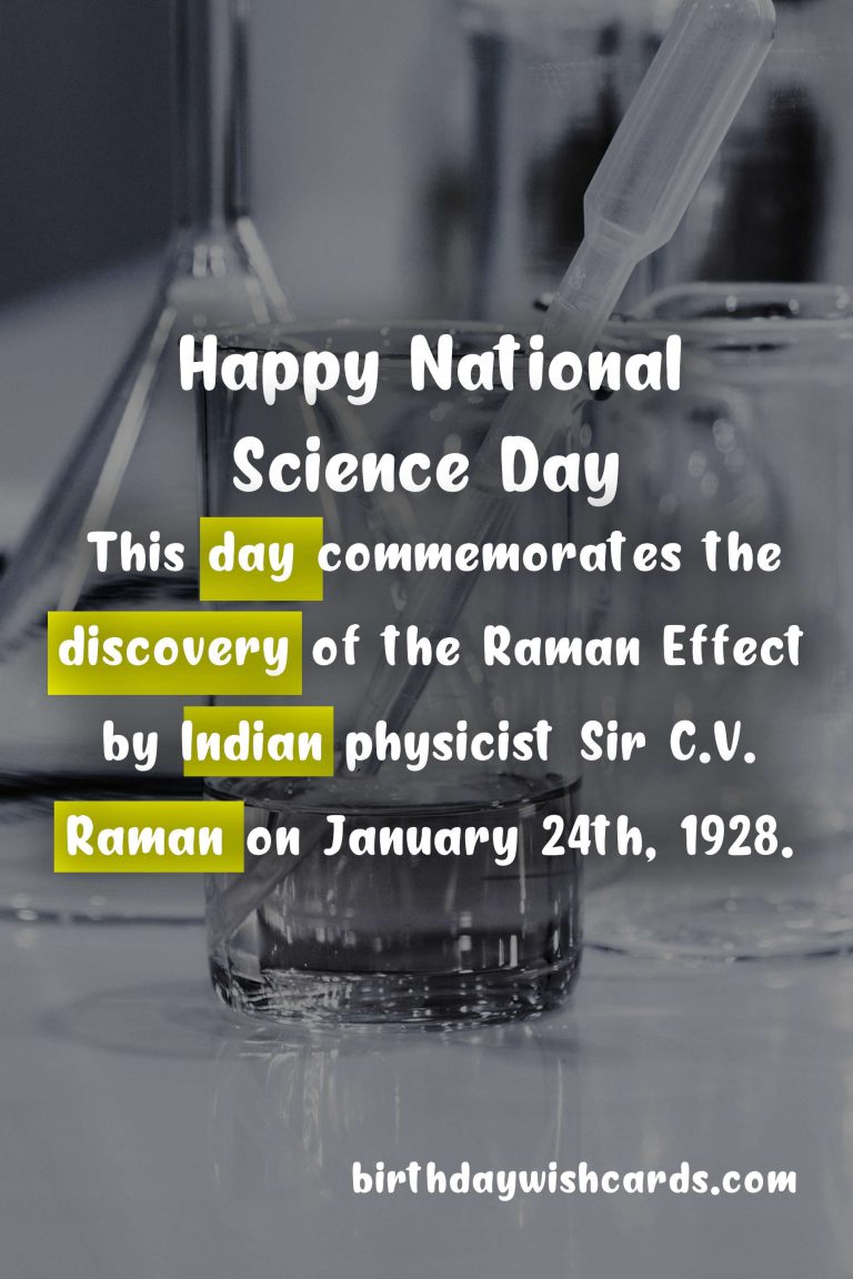 Science is a field that has fascinated humans for centuries. Its principles and techniques have helped us understand the world around us and make advancements that have improved our lives in countless ways. It is only fitting that we celebrate the amazing field of science with a special day, and that day is January 24th – National Science Day. National Science Day is celebrated every year on January 24th in India. This day commemorates the discovery of the Raman Effect by Indian physicist Sir C.V. Raman on January 24th, 1928. The Raman Effect is a phenomenon in which light changes its wavelength when it passes through a medium. This discovery brought great recognition to Sir C.V. Raman and India, as he became the first Asian to receive the Nobel Prize in Physics in 1930 for this groundbreaking work. In 1987, the Indian government declared January 24th as National Science Day to honor this discovery and promote scientific temper among the youth. Since then, every year a different theme is chosen to further promote science and its impact on society. National Science Day is not only celebrated in India, but also in many other countries around the world. It is a day dedicated to promoting scientific knowledge and encouraging young minds to explore the wonders of science. On this day, schools and colleges organize various science activities, exhibitions, quizzes, and lectures to encourage students to pursue science. Government organizations and research institutions also hold open houses and conduct panel discussions to showcase their scientific achievements. Many companies and organizations also participate by organizing science fairs and competitions, and awarding prizes to recognize outstanding innovations in the field of science. The goal of National Science Day is to ignite curiosity and promote scientific spirit among people of all ages and backgrounds. It also highlights the importance of science in our daily lives and its role in shaping the future. On this day, we celebrate the past achievements of science and also look forward to the future advancements that will continue to improve our lives. One can find numerous events and workshops related to science being celebrated on National Science Day, making it a crucial day for the scientific community and those passionate about science. This day not only promotes scientific knowledge and advancements, but also recognizes the hard work and dedication of all those who have contributed to the field of science. It is a reminder for all of us to appreciate the wonders and marvels of science that surround us every day, but often go unnoticed. National Science Day is celebrated with great enthusiasm and excitement by students, researchers, scientists, and the general public alike. It is a day to appreciate the vast potential of science and its impact on our world, and also to inspire the future generation to continue this never-ending journey of discovery and learning. So this January 24th, make sure to take a moment to celebrate National Science Day and be in awe of the fascinating world of science.