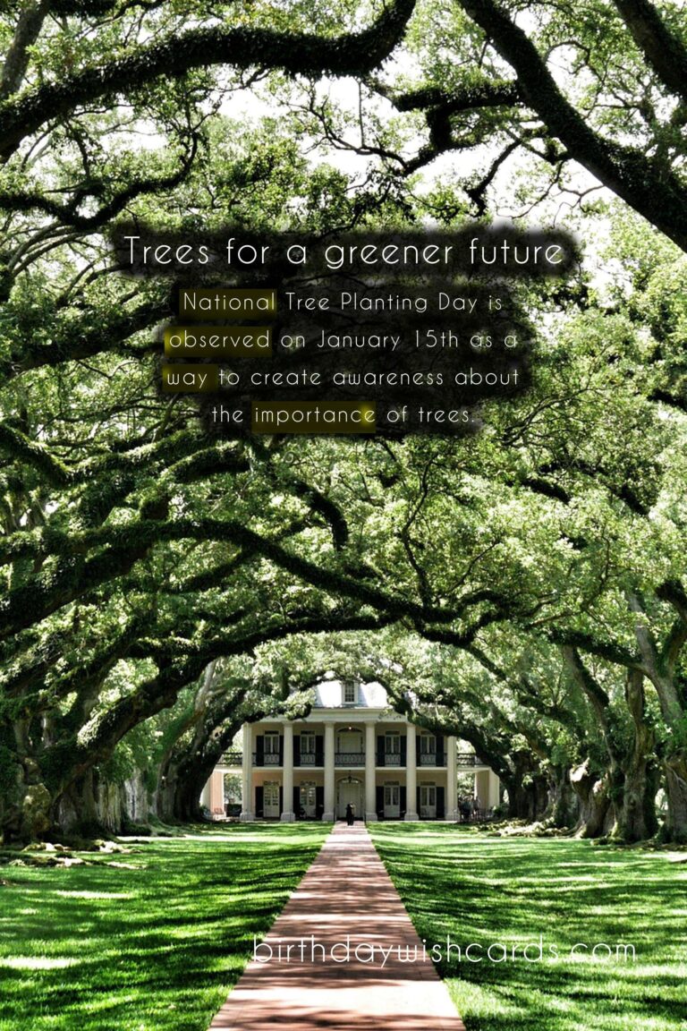 National Tree Planting Day is observed on January 15th as a way to create awareness about the importance of trees. Trees play a crucial role in our ecosystem by absorbing carbon dioxide and releasing oxygen. The tradition of planting trees on this day began in the United States in the 19th century. The theme for National Tree Planting Day is usually focused on the global issue of deforestation. Participating in National Tree Planting Day by planting trees in your own community is a great way to make a positive impact on the environment. Many schools also participate in this day by organizing tree plantings on their grounds and educating students about the importance of trees. Making a financial contribution to organizations that work towards tree conservation is another way to celebrate this day. National Tree Planting Day is also a time to appreciate the existing trees and honor those who have contributed towards preserving the environment. This day serves as a reminder for us to take action and do our part in making our planet a greener and healthier place.
