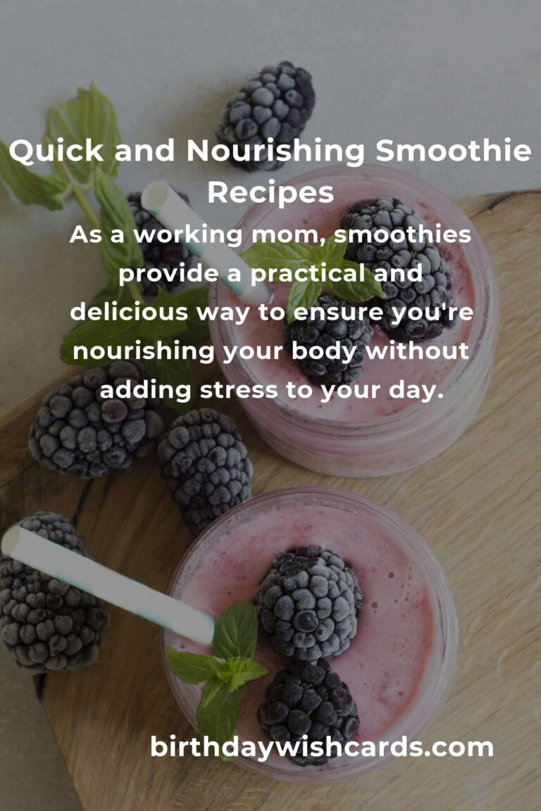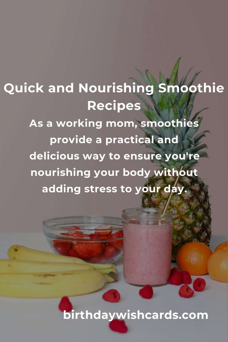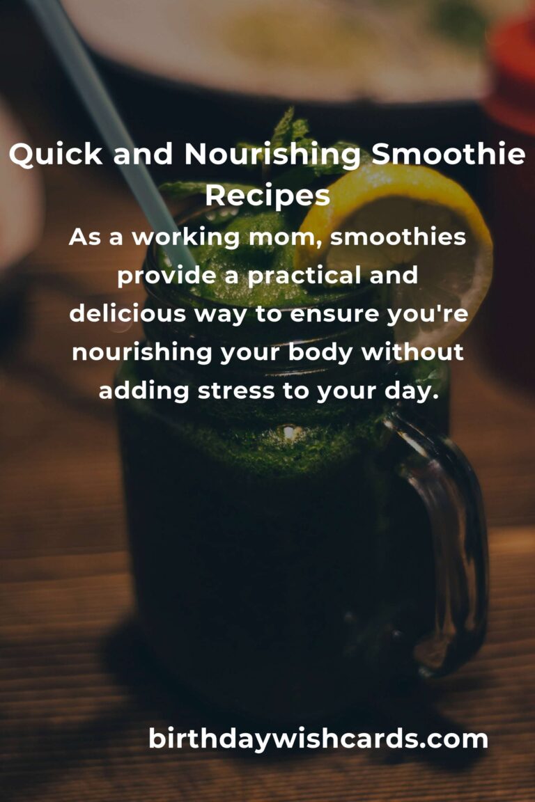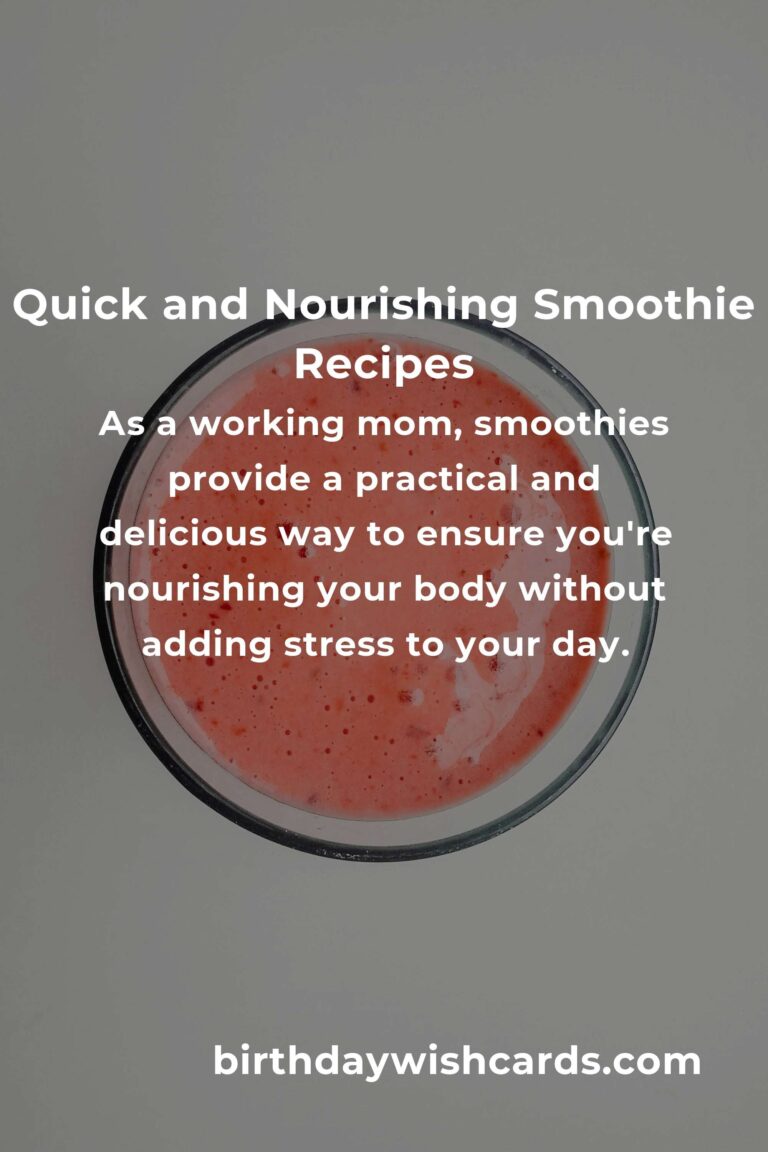 Smoothies are more than just a health trend; they are a lifeline for working moms juggling countless responsibilities. With the right ingredients and a little creativity, you can create delicious, nutritious smoothies that support your busy life. Remember, in taking the time to nourish yourself, you’re not only enhancing your own life but enriching the lives of those you love. So, grab your blender and start creating your own smoothie magic today!