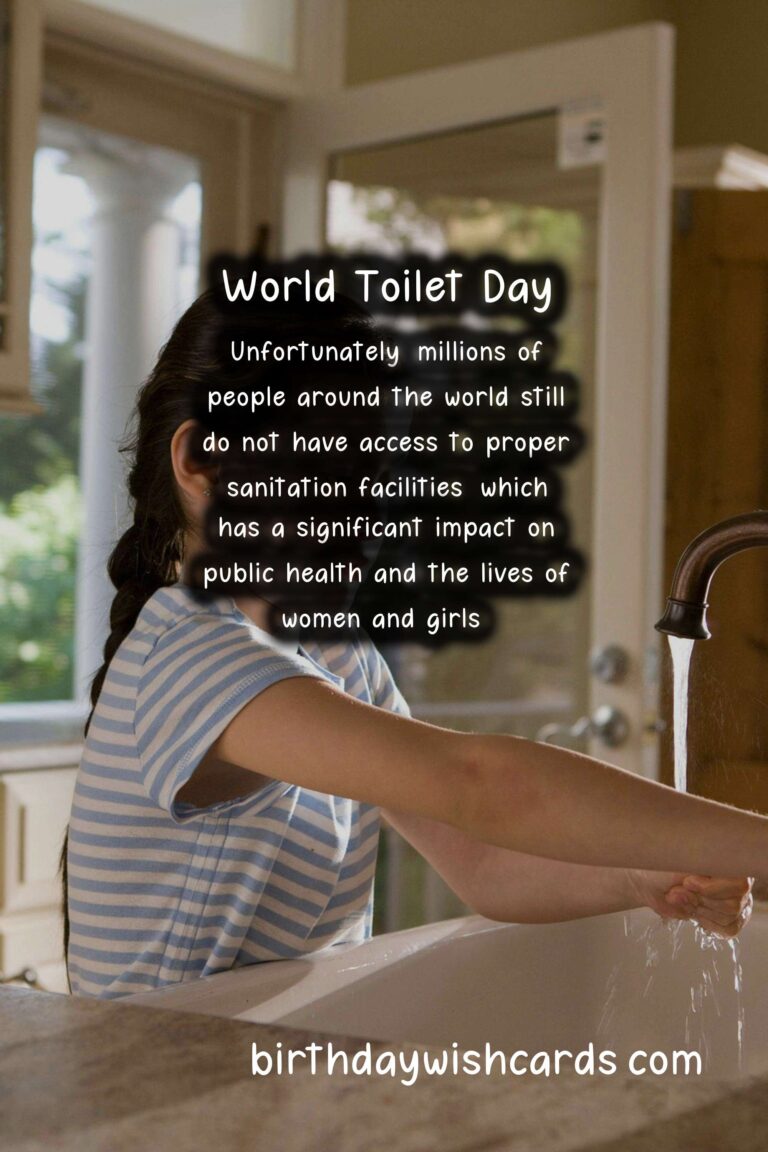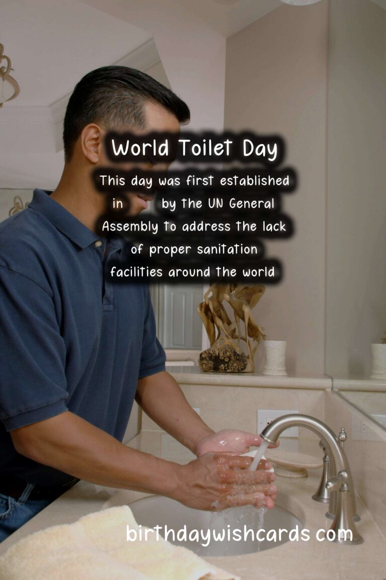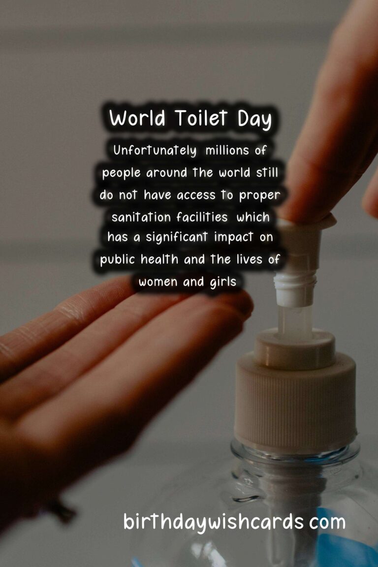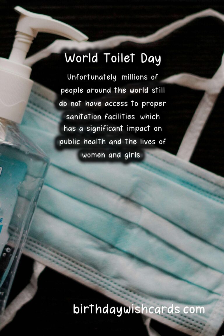 World Toilet Day is an important day to recognize the global sanitation crisis and take action to end it. We must work towards ensuring that everyone has access to clean and safe toilets to promote health, dignity, and sustainable development. Let us observe this day by spreading awareness and advocating for the rights of those who lack access to proper sanitation facilities. On November 19th, we celebrate World Toilet Day to raise awareness about the global sanitation crisis. This day was first established in 2013 by the UN General Assembly to address the lack of proper sanitation facilities around the world. Access to clean and safe toilets is a basic human right and plays a crucial role in promoting health and preventing the spread of diseases. Unfortunately, millions of people around the world still do not have access to proper sanitation facilities, which has a significant impact on public health and the lives of women and girls. We can observe World Toilet Day by taking part in events and campaigns, spreading awareness, and supporting organizations that work towards improving sanitation facilities.