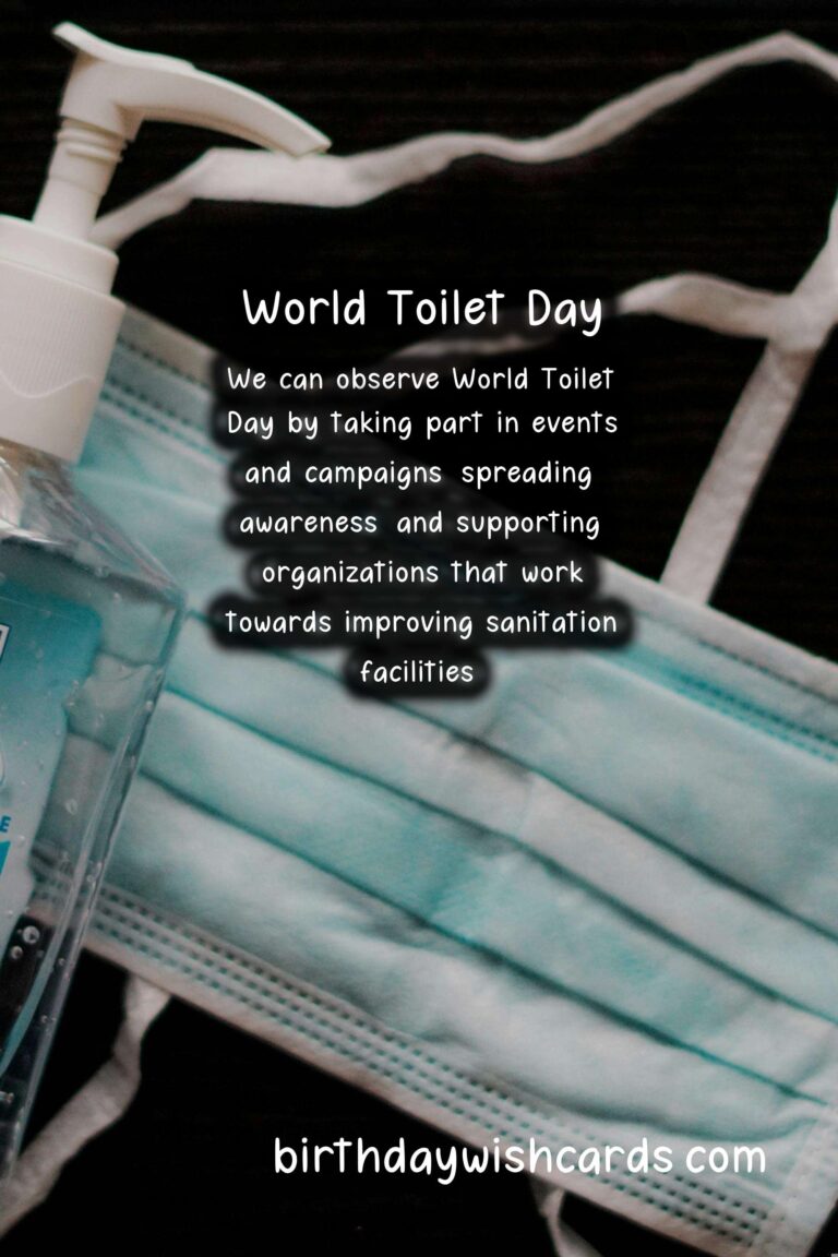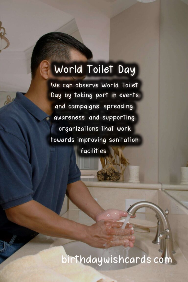 On this day, different organizations and communities come together to highlight the importance of toilets and draw attention to the global sanitation crisis. Various events and campaigns are organized to raise awareness and educate people about the importance of proper sanitation facilities. Some ways to observe World Toilet Day include: – Spreading awareness on social media by using the hashtag and sharing information about the global sanitation crisis. – Volunteering or donating to organizations that work towards improving sanitation facilities in developing countries. – Educating yourself and others on proper hygiene practices and the importance of sanitation for public health. – Organizing a community clean-up or public toilet maintenance day.