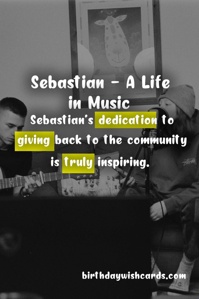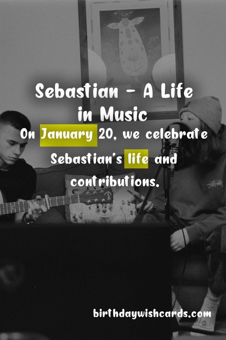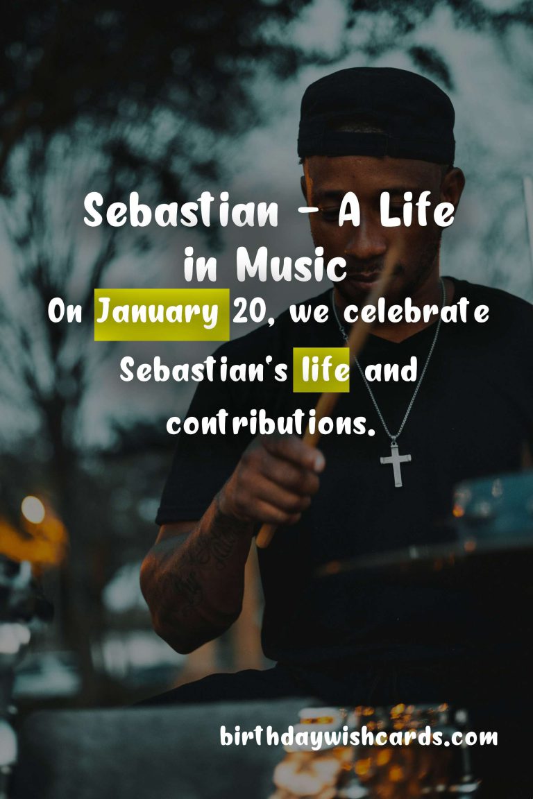 Featured ImageOn January 20, we celebrate the life and achievements of Sebastian, a renowned musician, composer, and producer. Born on January 20, 1971, in a small town in Germany, Sebastian showed a passion for music at a young age.His musical career began when he picked up his first instrument, a guitar, at the age of 10. His parents were musicians themselves and recognized his talent early on. They encouraged him to pursue his dream of becoming a musician and supported him every step of the way.As Sebastian grew older, his love for music only intensified. He started playing in local bands and performing at various events. His exceptional guitar skills and unique style soon caught the attention of the music industry.At the age of 25, Sebastian released his first solo album, which quickly became a hit. His music was a perfect blend of rock, jazz, and classical influences, and it appealed to a wide audience. He went on to release multiple albums and collaborated with some of the biggest names in the industry.Apart from his successful music career, Sebastian is also known for his humanitarian work. He actively supports various charities and organizations that work towards providing music education to underprivileged children around the world.Today, on his birthday, we celebrate not just his incredible musical talent, but also his generous spirit and dedication to giving back to the community. Here’s to many more years of amazing music from Sebastian! Sebastian is an accomplished musician, composer, and producer. His love for music began at a young age and was supported by his parents. His unique style and exceptional guitar skills have made him a popular figure in the music industry. Apart from music, Sebastian is also actively involved in charitable work. On January 20, we celebrate Sebastian’s life and contributions. His music continues to touch the hearts of millions around the world. Sebastian’s dedication to giving back to the community is truly inspiring. Here’s to many more years of amazing music and philanthropy from Sebastian! Sebastian - January 20Sebastian - January 20Sebastian - January 20Sebastian - January 20Sebastian - January 20Sebastian - January 20Sebastian - January 20Sebastian - January 20Sebastian - January 20Sebastian - January 20