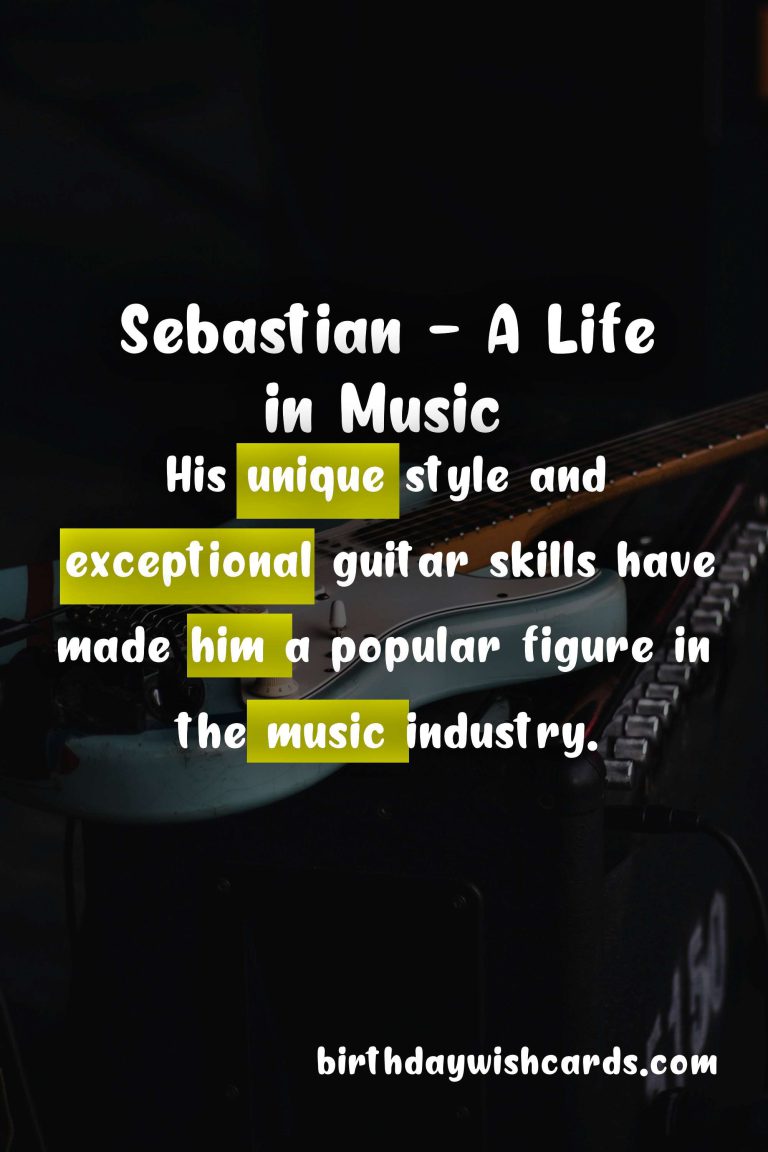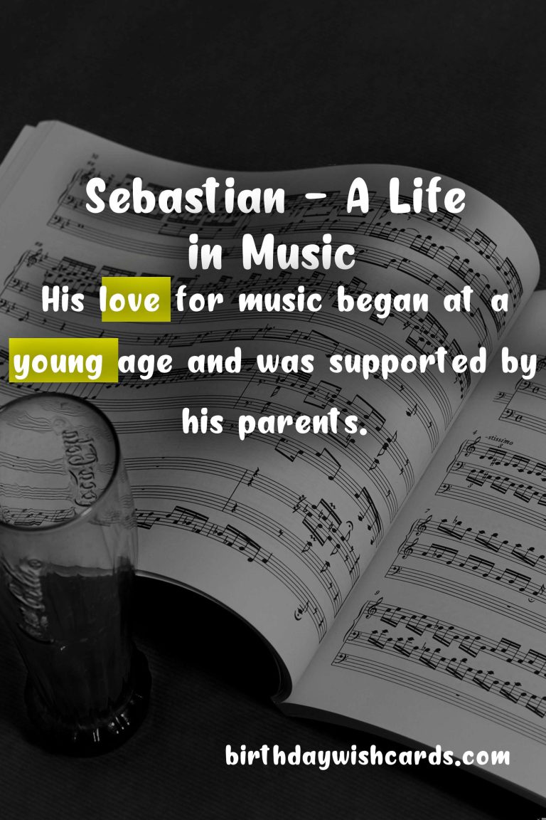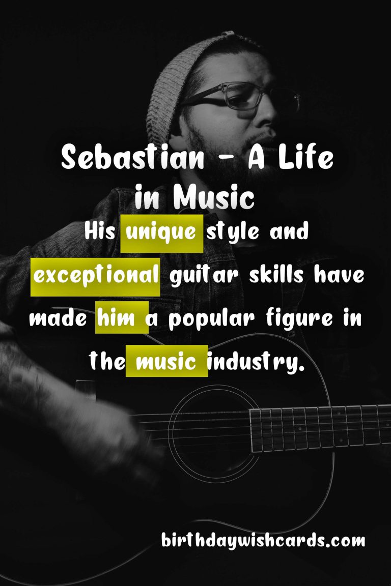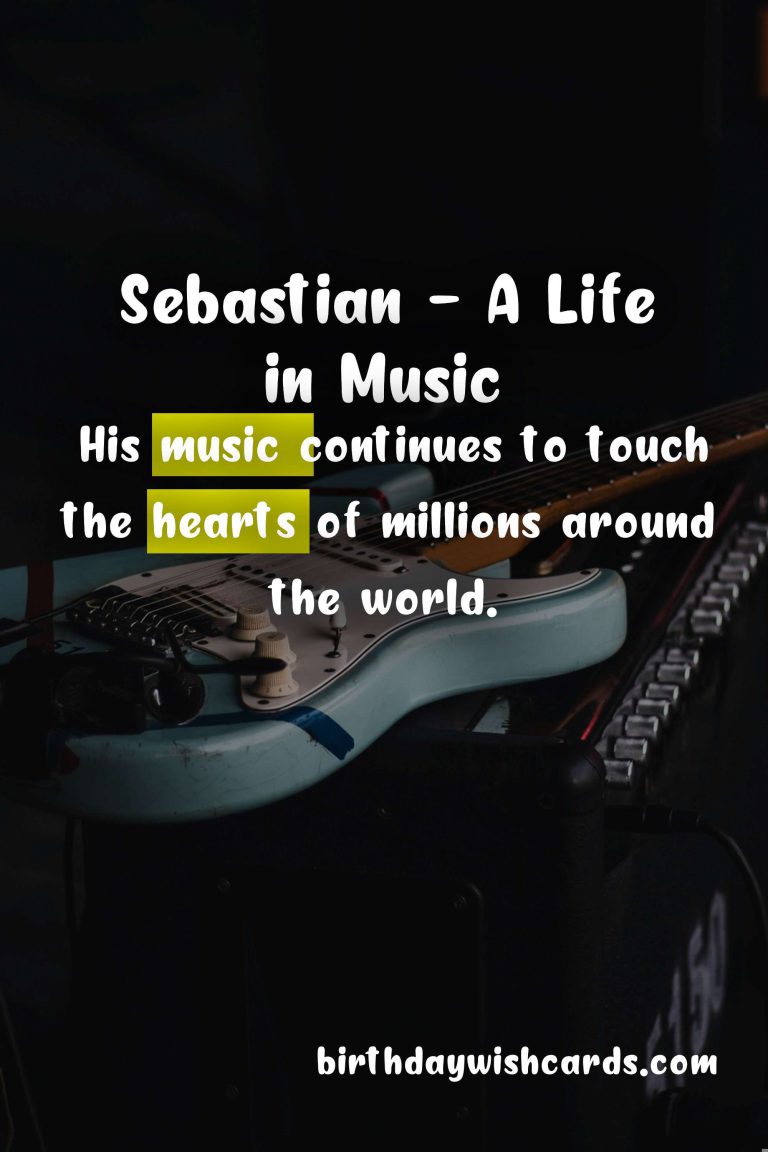 Featured ImageOn January 20, we celebrate the life and achievements of Sebastian, a renowned musician, composer, and producer. Born on January 20, 1971, in a small town in Germany, Sebastian showed a passion for music at a young age.His musical career began when he picked up his first instrument, a guitar, at the age of 10. His parents were musicians themselves and recognized his talent early on. They encouraged him to pursue his dream of becoming a musician and supported him every step of the way.As Sebastian grew older, his love for music only intensified. He started playing in local bands and performing at various events. His exceptional guitar skills and unique style soon caught the attention of the music industry.At the age of 25, Sebastian released his first solo album, which quickly became a hit. His music was a perfect blend of rock, jazz, and classical influences, and it appealed to a wide audience. He went on to release multiple albums and collaborated with some of the biggest names in the industry.Apart from his successful music career, Sebastian is also known for his humanitarian work. He actively supports various charities and organizations that work towards providing music education to underprivileged children around the world.Today, on his birthday, we celebrate not just his incredible musical talent, but also his generous spirit and dedication to giving back to the community. Here’s to many more years of amazing music from Sebastian! Sebastian is an accomplished musician, composer, and producer. His love for music began at a young age and was supported by his parents. His unique style and exceptional guitar skills have made him a popular figure in the music industry. Apart from music, Sebastian is also actively involved in charitable work. On January 20, we celebrate Sebastian’s life and contributions. His music continues to touch the hearts of millions around the world. Sebastian’s dedication to giving back to the community is truly inspiring. Here’s to many more years of amazing music and philanthropy from Sebastian! Sebastian - January 20Sebastian - January 20Sebastian - January 20Sebastian - January 20Sebastian - January 20Sebastian - January 20Sebastian - January 20Sebastian - January 20Sebastian - January 20Sebastian - January 20