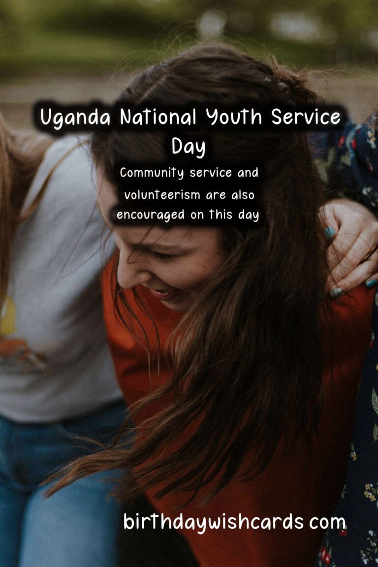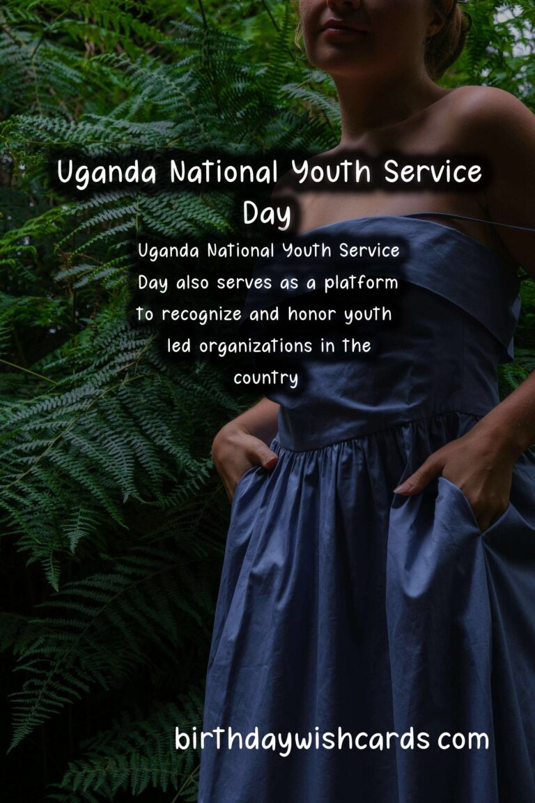 Featured ImageUganda National Youth Service Day is a national holiday celebrated on January 14th every year in Uganda. This day is dedicated to recognizing the contributions and achievements of young people in the country. It is a day to celebrate youth empowerment, development, and leadership. The theme for this year’s celebration is ‘Empowering Youth for a Better Uganda’. Uganda National Youth Service Day was officially established in 2001 by the government of Uganda. It is a day that highlights the importance and potential of the youth in shaping the future of the country. The day is celebrated with various activities and programs that aim to create awareness and mobilize resources for the development of young people in Uganda. The celebration of Uganda National Youth Service Day starts with a national address by the President, where he highlights the achievements of young people in various sectors, challenges facing them, and government plans and initiatives to support and empower the youth. This is followed by a series of events and activities organized across the country. These include youth conferences, sporting events, community service projects, and career fairs. One of the main objectives of Uganda National Youth Service Day is to create a platform for young people to share their ideas, opinions, and concerns with government leaders and decision-makers. This encourages youth participation in governance and decision-making processes, leading to a more inclusive and youth-friendly society. Another significant aspect of this day is the promotion of volunteerism and community service among young people. The youth are encouraged to engage in activities that contribute to the development of their communities. This not only benefits the community but also helps young people in developing leadership skills and a sense of responsibility and civic duty. Uganda National Youth Service Day also serves as an opportunity to recognize and honor the contributions of youth-led organizations and initiatives in the country. These organizations play a crucial role in addressing social challenges and promoting positive change in communities.This day is also a reminder for the government and other stakeholders to prioritize policies and programs that promote youth development and empowerment. The youth are an essential asset for Uganda’s progress and development, and it is crucial to invest in their education, health, and socio-economic well-being.As we celebrate Uganda National Youth Service Day, let us all join hands to empower young people and create a better future for the country. Happy Uganda National Youth Service Day! Uganda National Youth Service Day is a day to recognize the contributions and achievements of young people in Uganda. This year’s theme is ‘Empowering Youth for a Better Uganda’. It was officially established in 2001 by the government of Uganda. The day is celebrated with various events and activities across the country. One of the main objectives is to promote youth participation in governance and decision-making processes. Community service and volunteerism are also encouraged on this day. Uganda National Youth Service Day also serves as a platform to recognize and honor youth-led organizations in the country. It is a reminder for the government to prioritize policies and programs for youth development and empowerment. The youth are crucial to the progress and development of Uganda. Let us all join hands to empower young people and create a better future for the country. Uganda National Youth Service Day - January 14Uganda National Youth Service Day - January 14Uganda National Youth Service Day - January 14Uganda National Youth Service Day - January 14Uganda National Youth Service Day - January 14Uganda National Youth Service Day - January 14Uganda National Youth Service Day - January 14Uganda National Youth Service Day - January 14Uganda National Youth Service Day - January 14