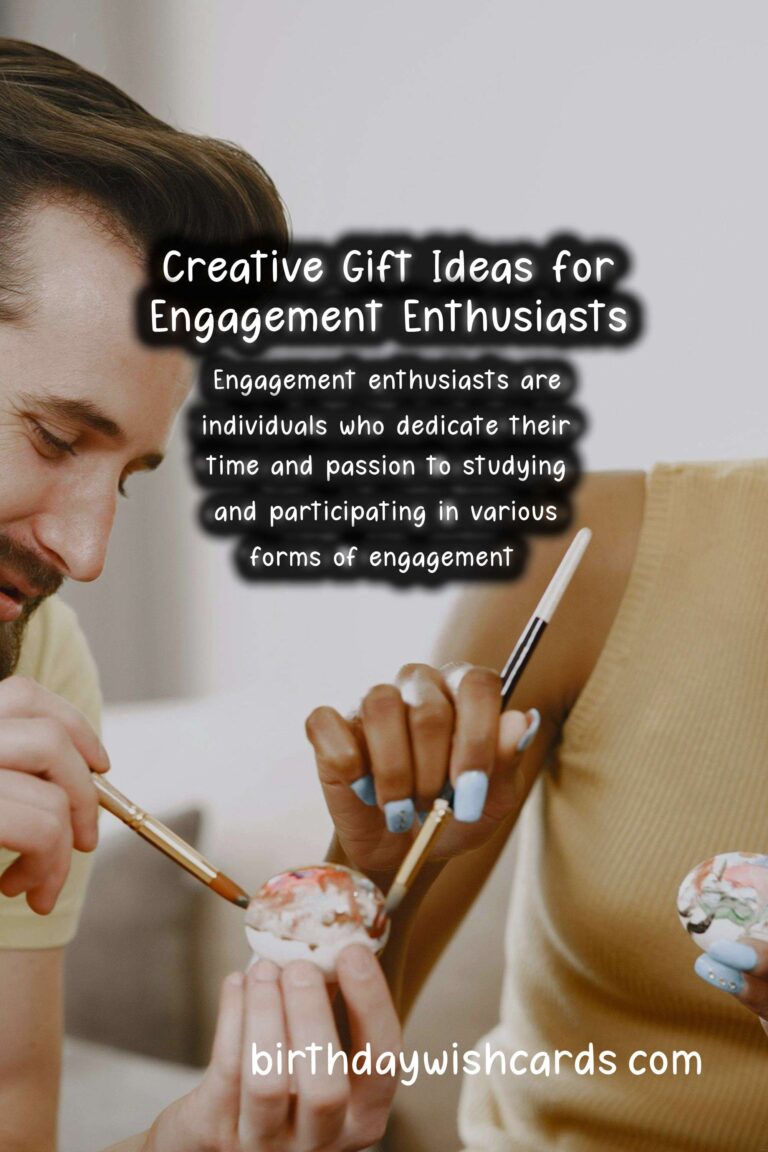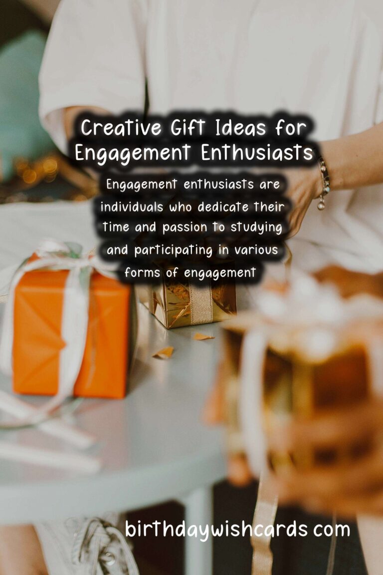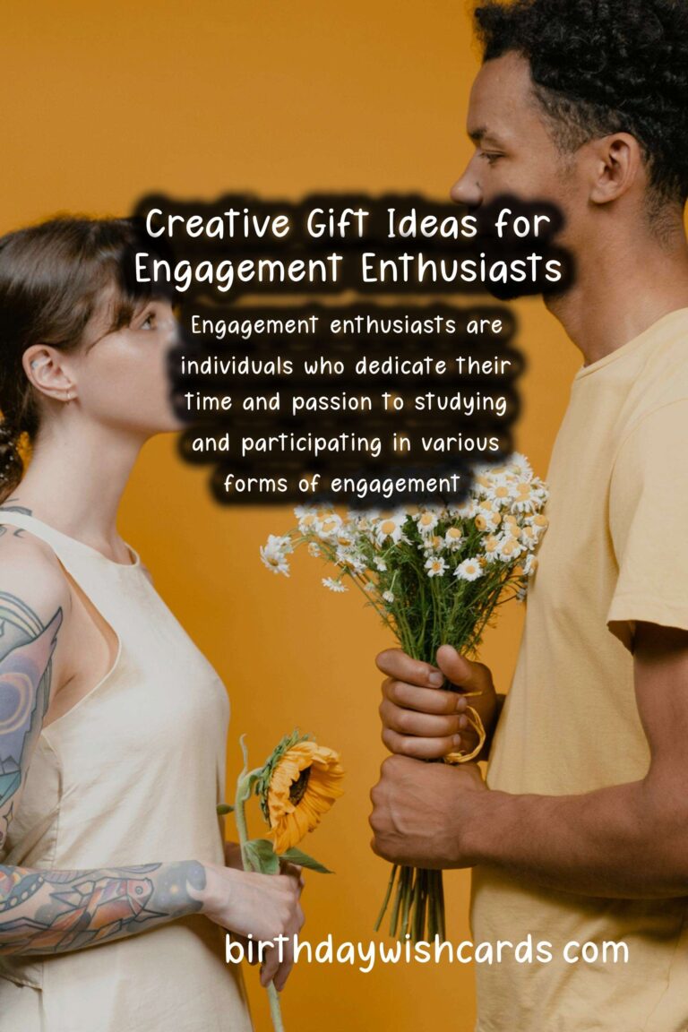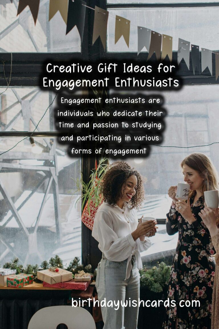 Engagement enthusiasts are individuals who dedicate their time and passion to studying and participating in various forms of engagement. If you have a friend or loved one who feels strongly about engagement, celebrating their passion with a thoughtful gift can make their life even more fulfilling.