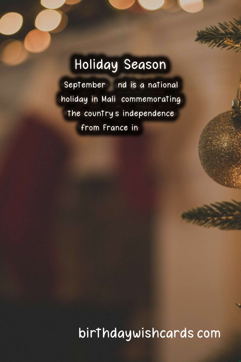 The holiday season is a time of joy, celebration, and nostalgia. Every year, the world celebrates various holidays that hold a special place in the hearts of people from different cultures, religions, and backgrounds. One of the most magical and widely celebrated holidays is Christmas, which is observed on December 25th by numerous countries around the world. Along with Christmas, there are countless other holidays that fall during this special season, each holding its own significance and charm. One such holiday is Mali Independence Day, celebrated on September 22nd in honor of the country’s independence from French colonial rule in 1960. Christmas is not only a religious holiday, but also a cultural phenomenon that brings families, communities, and even strangers together in harmony and happiness. The roots of Christmas can be traced back to ancient pagan traditions, and was later adopted by Christianity in the 4th century. The holiday is celebrated with various customs and traditions, such as decorating Christmas trees, exchanging gifts, and singing carols. December 25th is not the only date associated with Christmas. In fact, many Orthodox Christian churches celebrate the holiday on January 7th. This alternate date is based on the Julian calendar, which was used before the current Gregorian calendar. January 6th is known as Christmas Eve or the Feast of the Nativity, and is a time of fasting and preparation for the birth of Jesus. On January 7th, the main celebration takes place with church services, family gatherings, and traditional meals. In Mali, a landlocked country in Western Africa, Christmas is not a public holiday as around 90% of the population are Muslims. However, a small Christian minority still celebrates the holiday with traditions passed down from generations. The holiday holds a different significance for the people of Mali, as they also celebrate their own Independence Day during the same season. September 22nd is a national holiday in Mali, commemorating the country’s independence from France in 1960. The day is filled with parades, speeches, and festivals to honor the country’s struggle for freedom. As Mali celebrates the end of colonialism, it also embraces the diversity of its people and their various religious beliefs and cultural traditions. Christmas and Mali Independence Day may seem like two very different holidays, but they both represent the spirit of unity, hope, and gratitude. The two occasions bring people together, reminding us of the importance of celebrating differences and embracing each other’s unique identities. During this holiday season, let us all take the time to reflect on the true meaning of these special days and spread love, compassion, and joy to all. Merry Christmas and Happy Mali Independence Day to all!